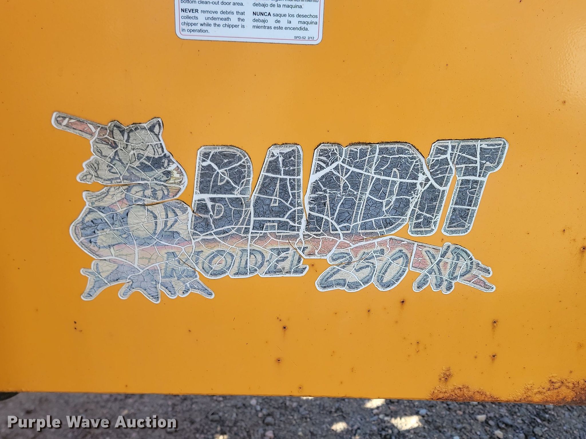 Bandit 250 wood chipper. Unit #: 51-46. Engine John deere, Displacement: 4.5L, Cylinders: 4, Fuel type: Diesel. Features Throat opening: 19" x 15". Tires Size: ST235/80R16. Notes Dead battery. Transfer of ownership documentation will be a bill of sale. City of Sioux Falls - Open Inspection April 25. 1000 East Chambers Street. Sioux Falls, SD 57104