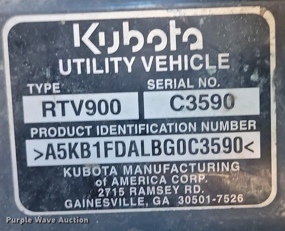 Purple Wave is selling a used Utility Vehicle in South Dakota. This item is a 2011 Kubota RTV900XT utility vehicle with the following: Hours: 3,037 on meter, VIN: A5KB1FDALBG0C3590, Unit #: 51-38