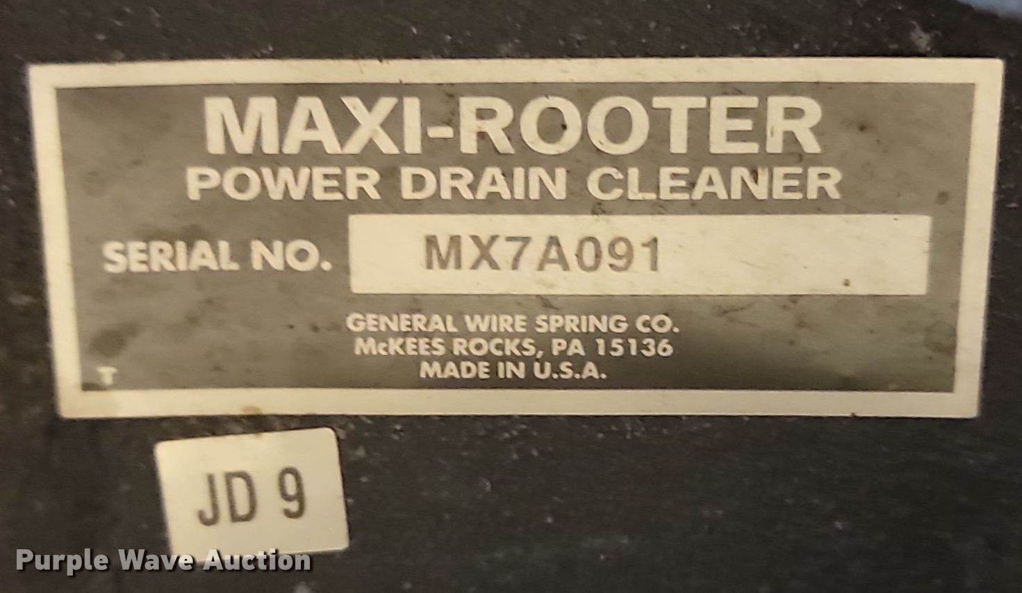 Purple Wave is selling a used Tools in South Dakota. This item is a General Maxi-Rooter drain snake with the following: Serial: MX7A091, HP: 3/4, Phase: Single, Volts: 115/230