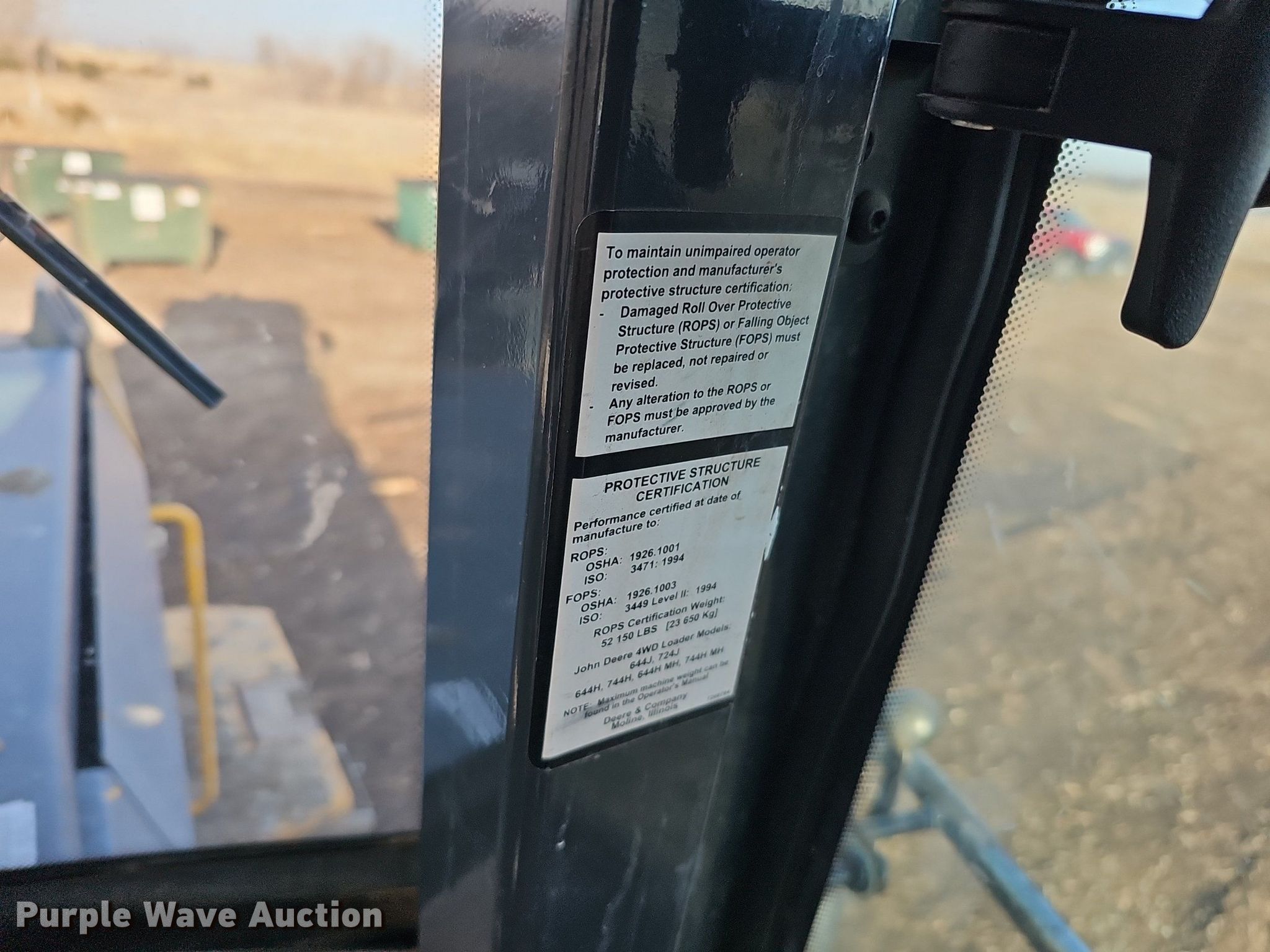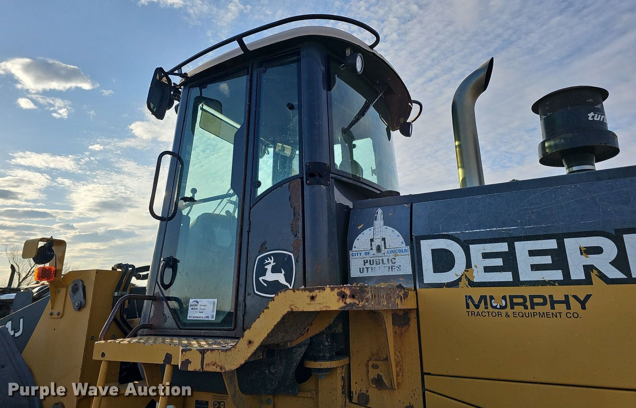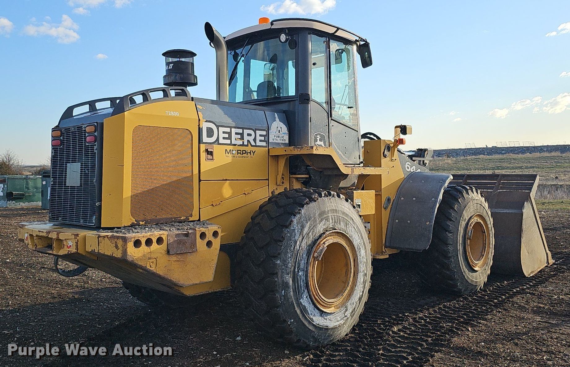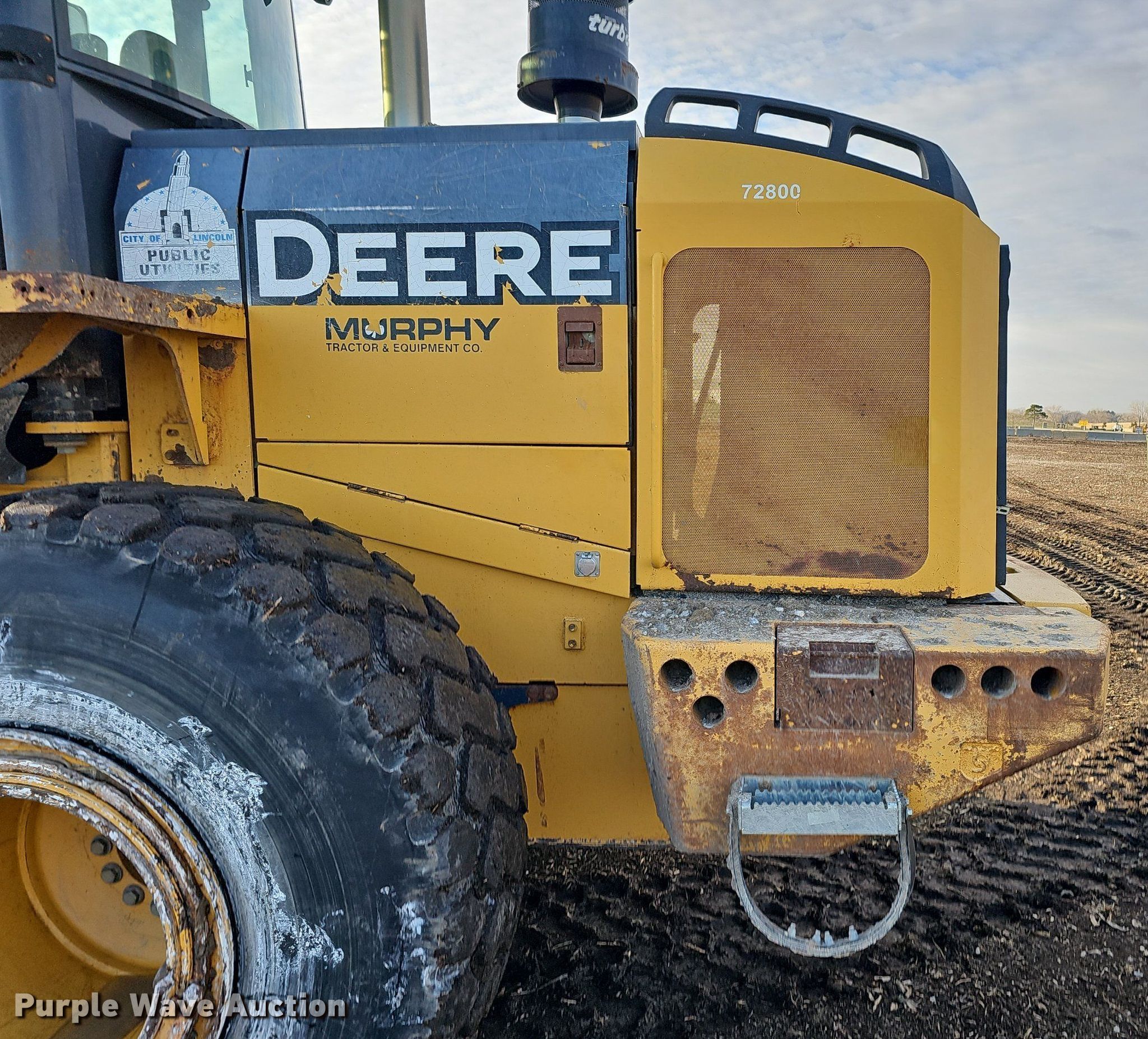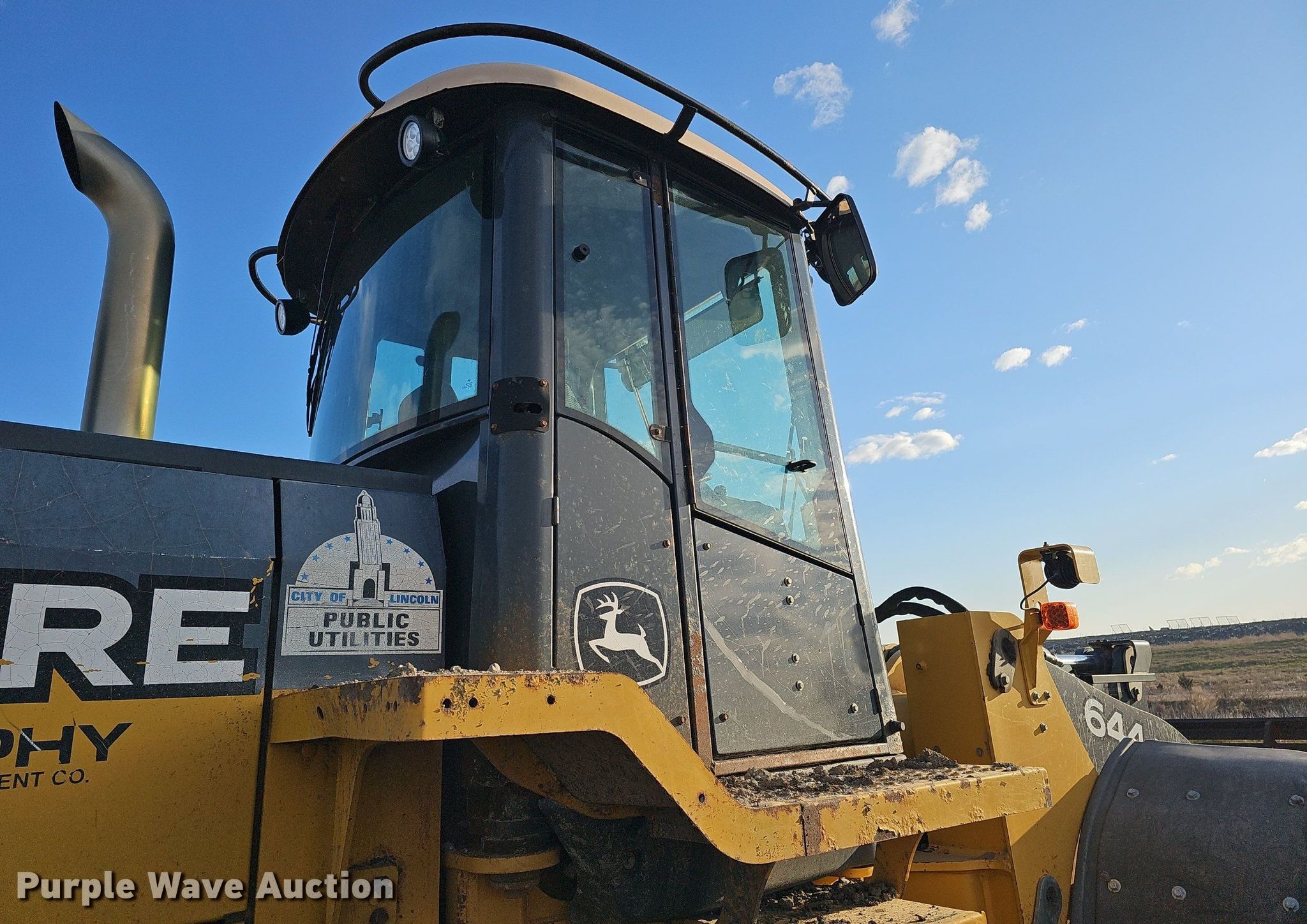 2007 John Deere 644J wheel loader. Hours: 16,377 on meter, Serial: DW644JX612708. Engine John Deere, Cylinders: 6, Fuel type: Diesel. Transmission Powershift, 4F - 4R. Chassis Differential lock: Full. Operators station Enclosed cab, AC, Heat, Bucket controls: Joystick, Ride control. Features Auxiliary hydraulics: Front, Quick coupler: Manual, Counter weights, Bucket VWS BKL5.25, Width: 118", Cutting edge: Bolt-on. Tires Size: 23.5R25. City of Lincoln Landfill. 5101 North 48th Street. Lincoln, NE 68504