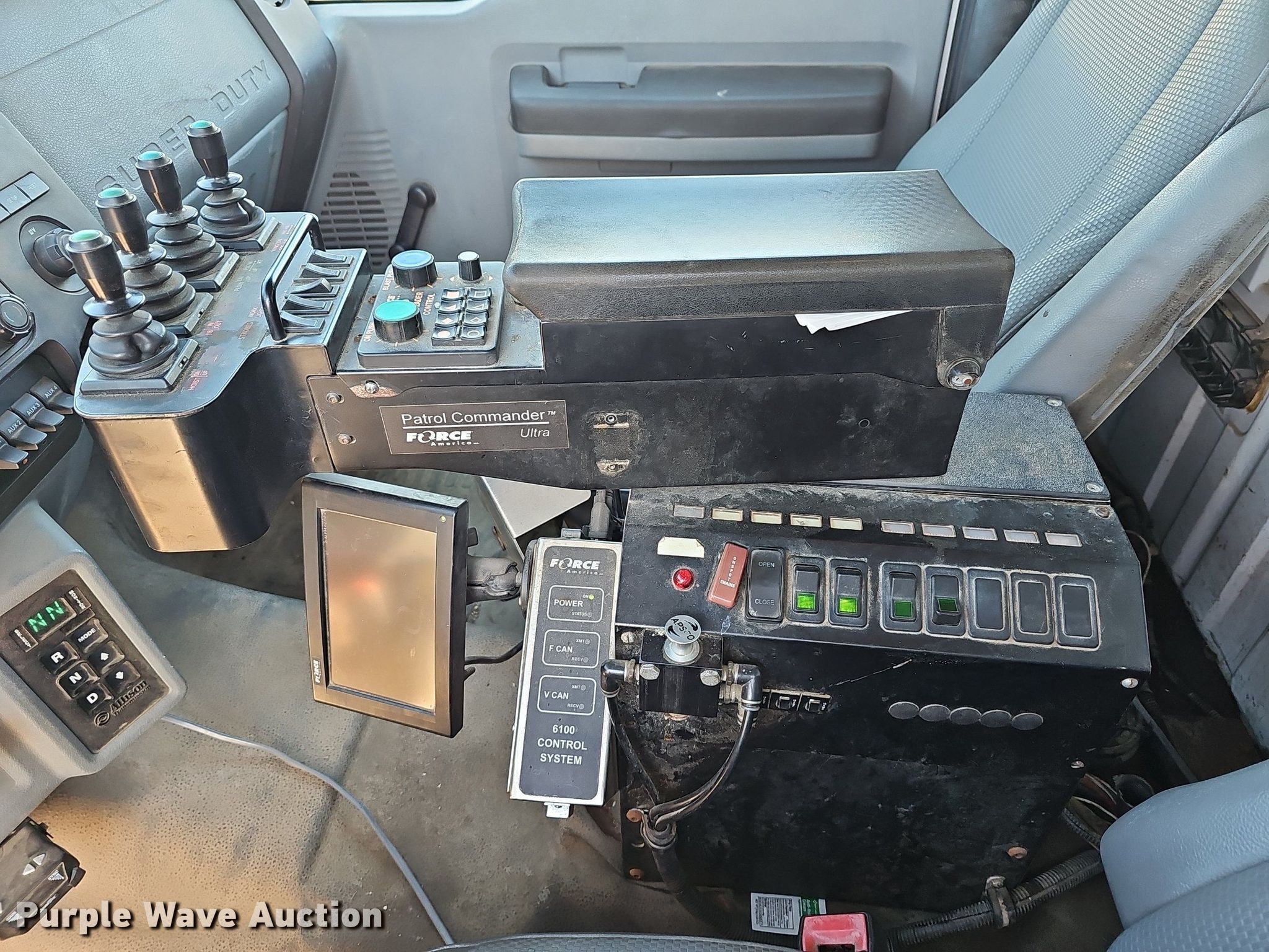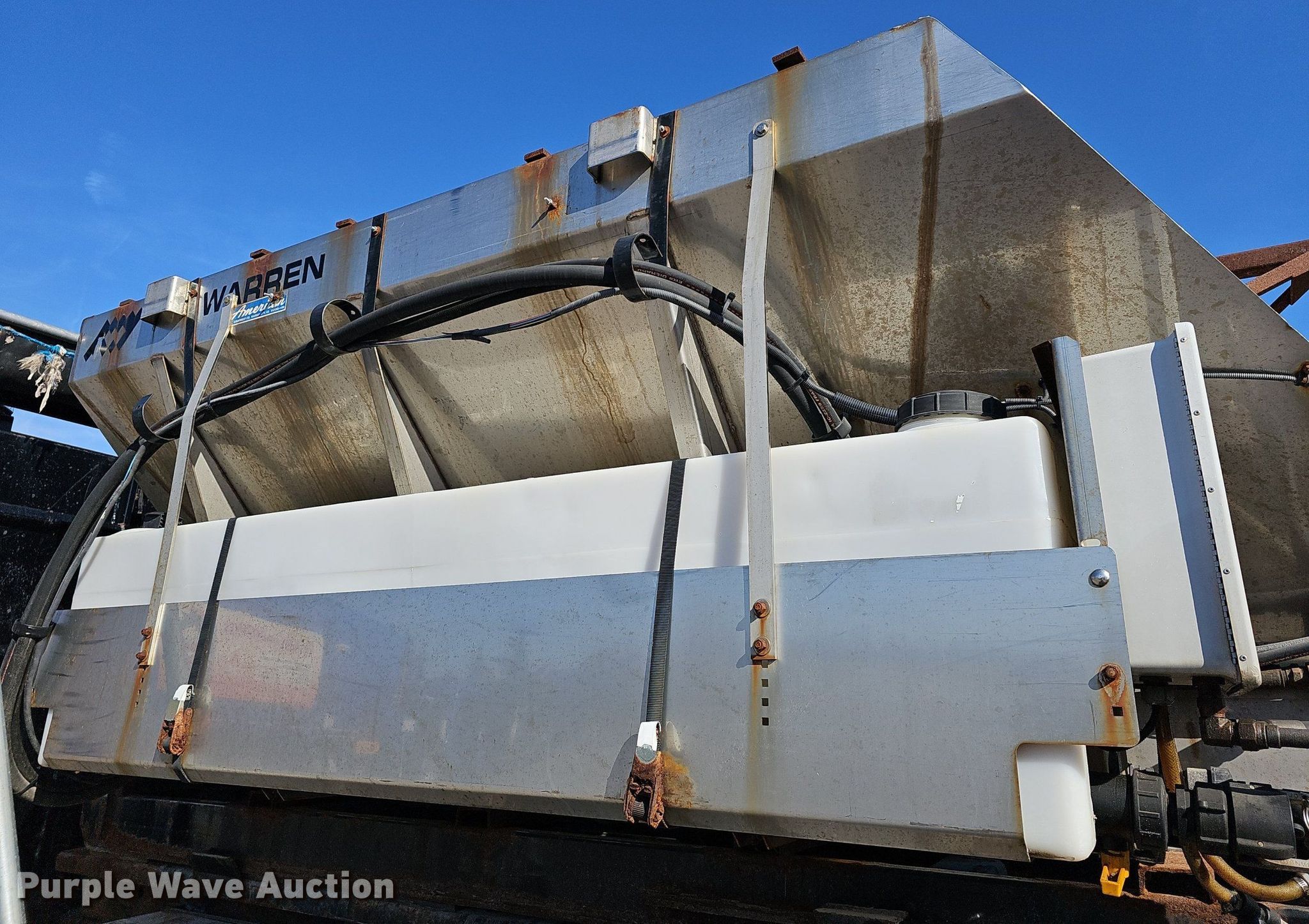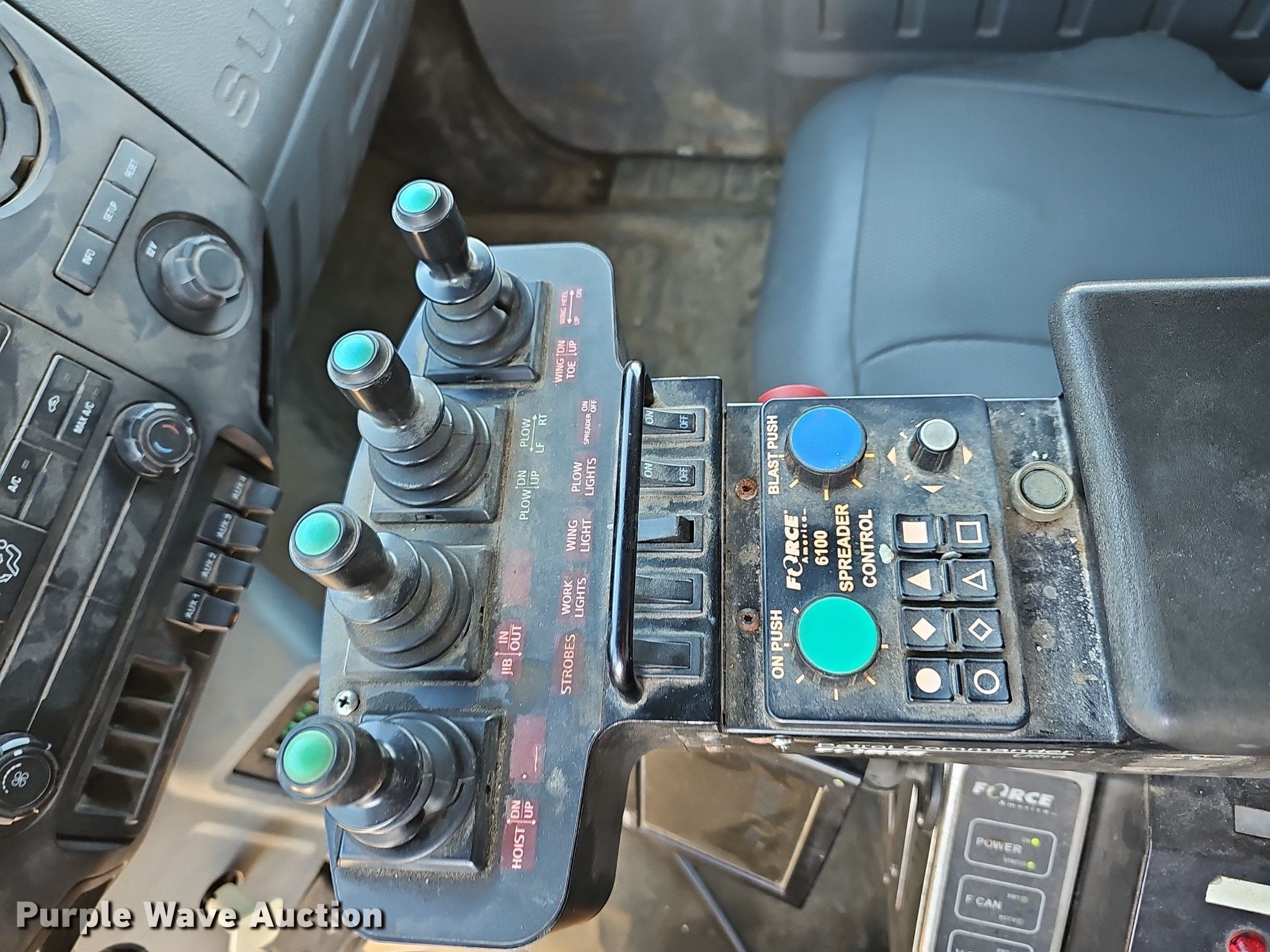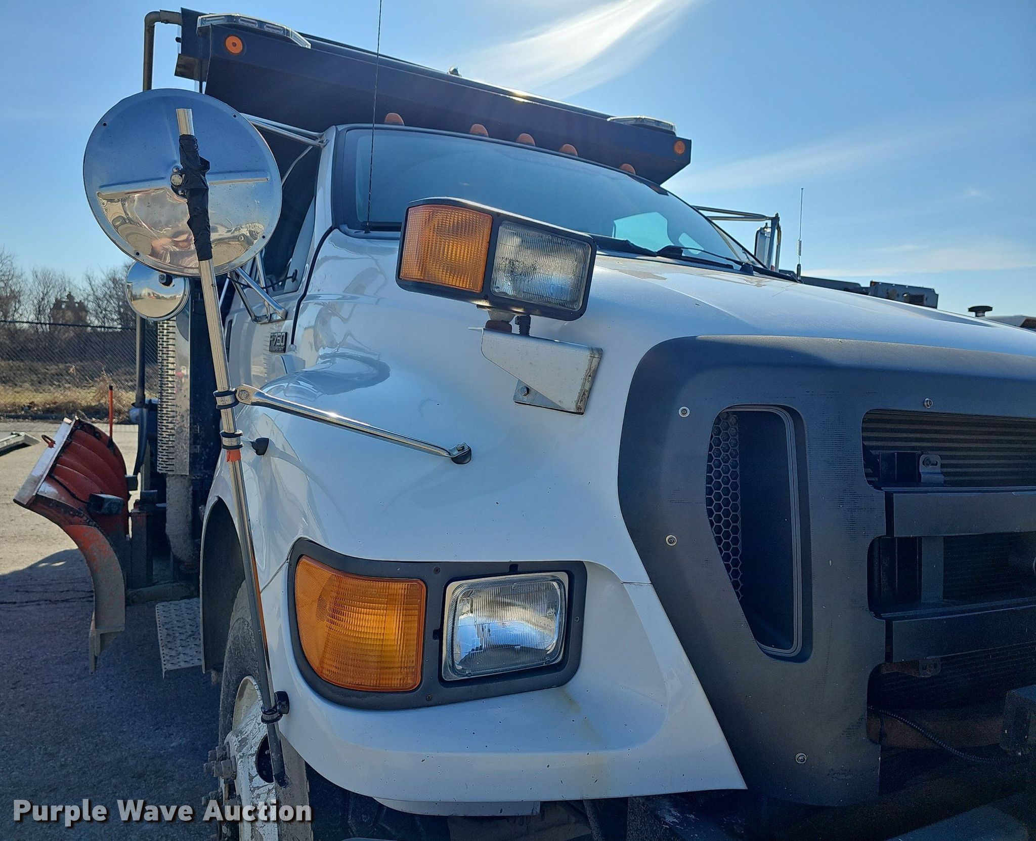 2013 Ford F750 Super Duty XL hook lift truck. Hours: 5,285 on meter, Miles: Unknown, VIN: 3FRXF7FJ8DV770792, Unit #: 6497. Engine Displacement: 6.7L, Cylinders: 6, Fuel type: Diesel. Transmission Allison, Automatic. Chassis Axles: Single, Suspension: Spring, Brakes: Air, GVWR: 33,000 lbs, Wheelbase: 176". Interior Heat, Cruise control. Features Hook lift bed Swaploader, Serial: SL2418HD, 13' L x 41.5" W, Roll tarp, Ram: Double, Warren S.S. V-box spreader Liquid salt tank, Henke wing snow plow Width: 8'. Tires Size: 11R22.5. Notes Non-operational dash clusters. Kansas title. City of Olathe. Olathe, KS 66061