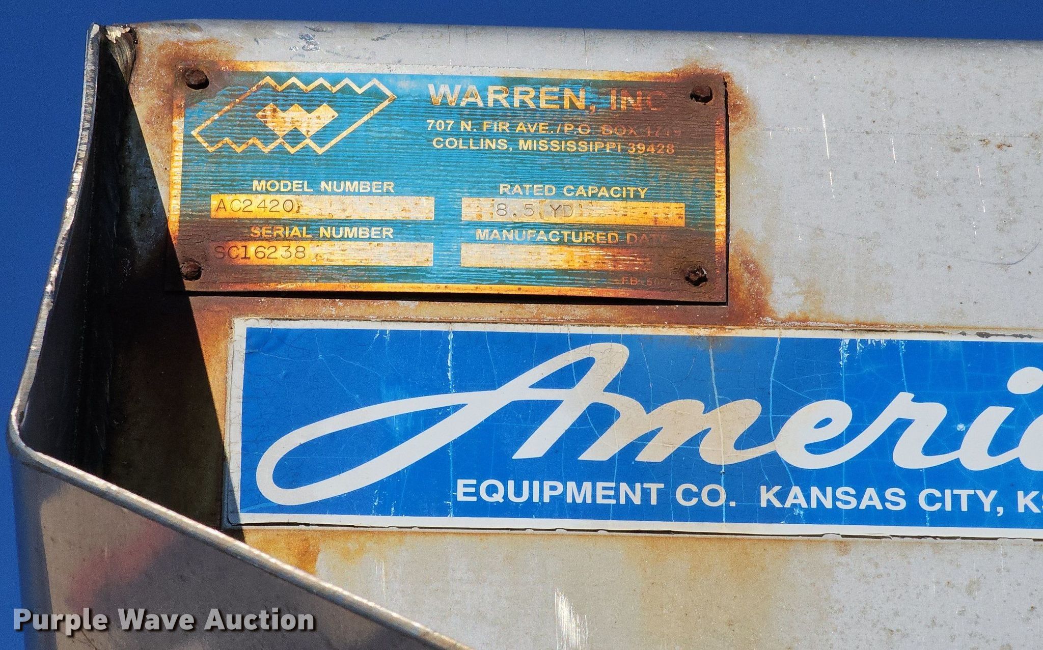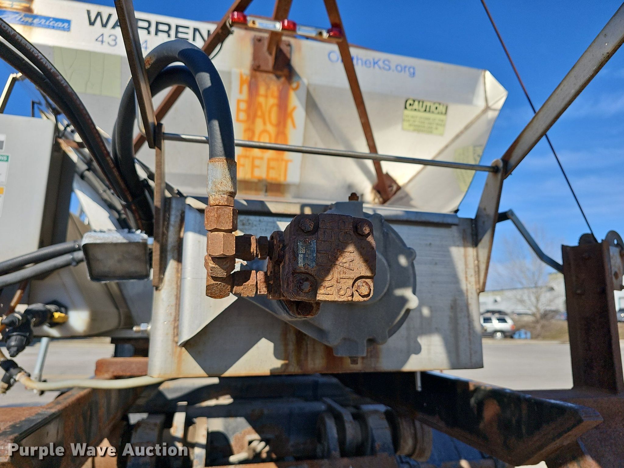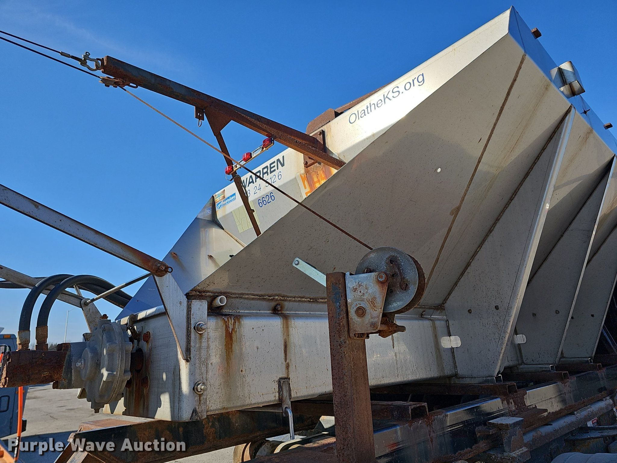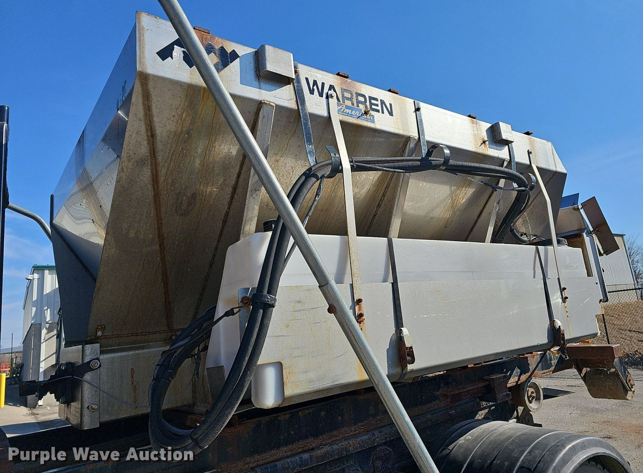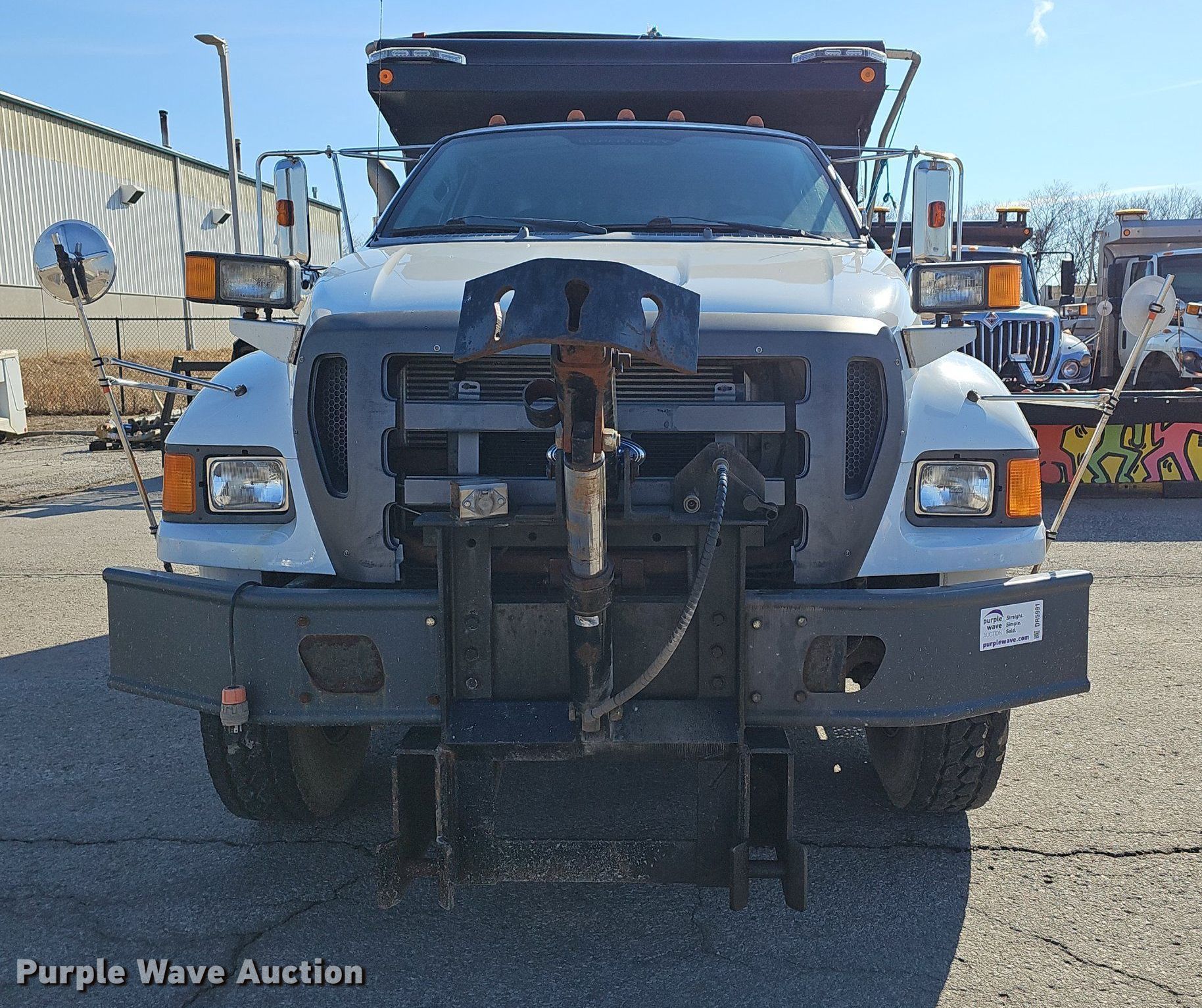 2013 Ford F750 Super Duty XL hook lift truck. Hours: 5,285 on meter, Miles: Unknown, VIN: 3FRXF7FJ8DV770792, Unit #: 6497. Engine Displacement: 6.7L, Cylinders: 6, Fuel type: Diesel. Transmission Allison, Automatic. Chassis Axles: Single, Suspension: Spring, Brakes: Air, GVWR: 33,000 lbs, Wheelbase: 176". Interior Heat, Cruise control. Features Hook lift bed Swaploader, Serial: SL2418HD, 13' L x 41.5" W, Roll tarp, Ram: Double, Warren S.S. V-box spreader Liquid salt tank, Henke wing snow plow Width: 8'. Tires Size: 11R22.5. Notes Non-operational dash clusters. Kansas title. City of Olathe. Olathe, KS 66061