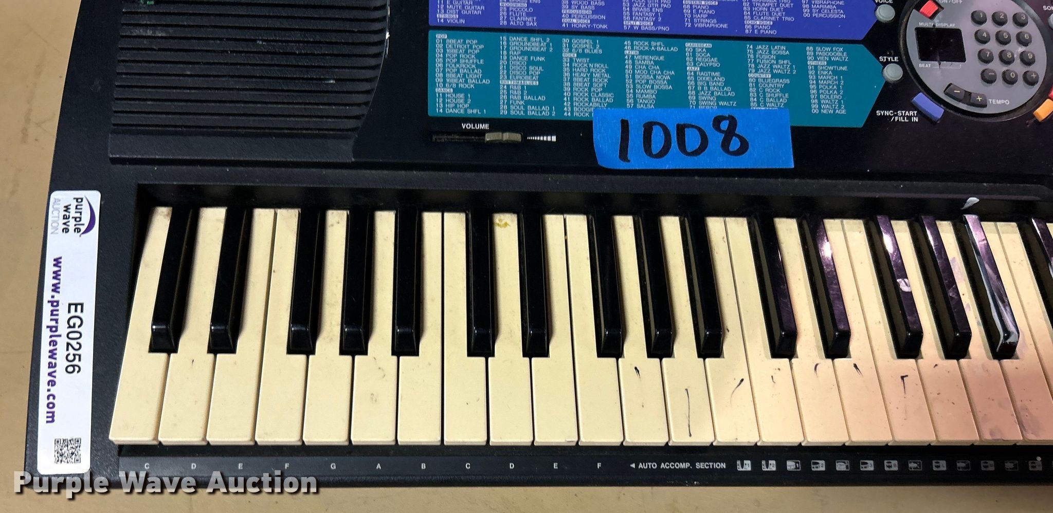 Purple Wave is selling a used Music Equip. in Oklahoma. This item is a Yamaha AWM keyboard with the following: Unit #: 1008, Power supply missing, Unknown operating condition