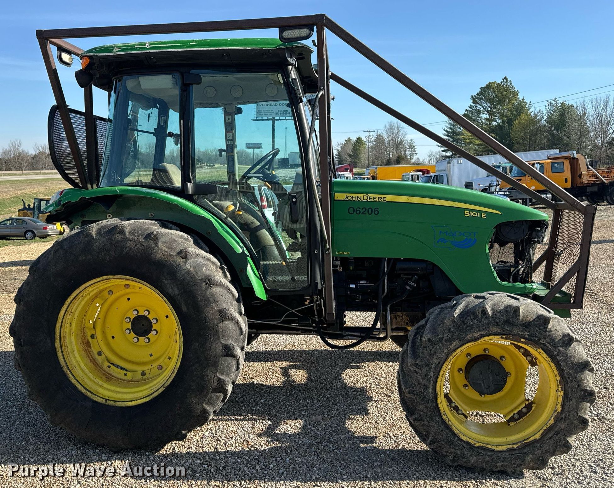 Purple Wave is selling a used Tractor in Missouri. This item is a 2009 John Deere 5101E MFWD tractor with the following: Hours: 4,564 on meter, Serial: LV5101E160774, Unit #: 06206