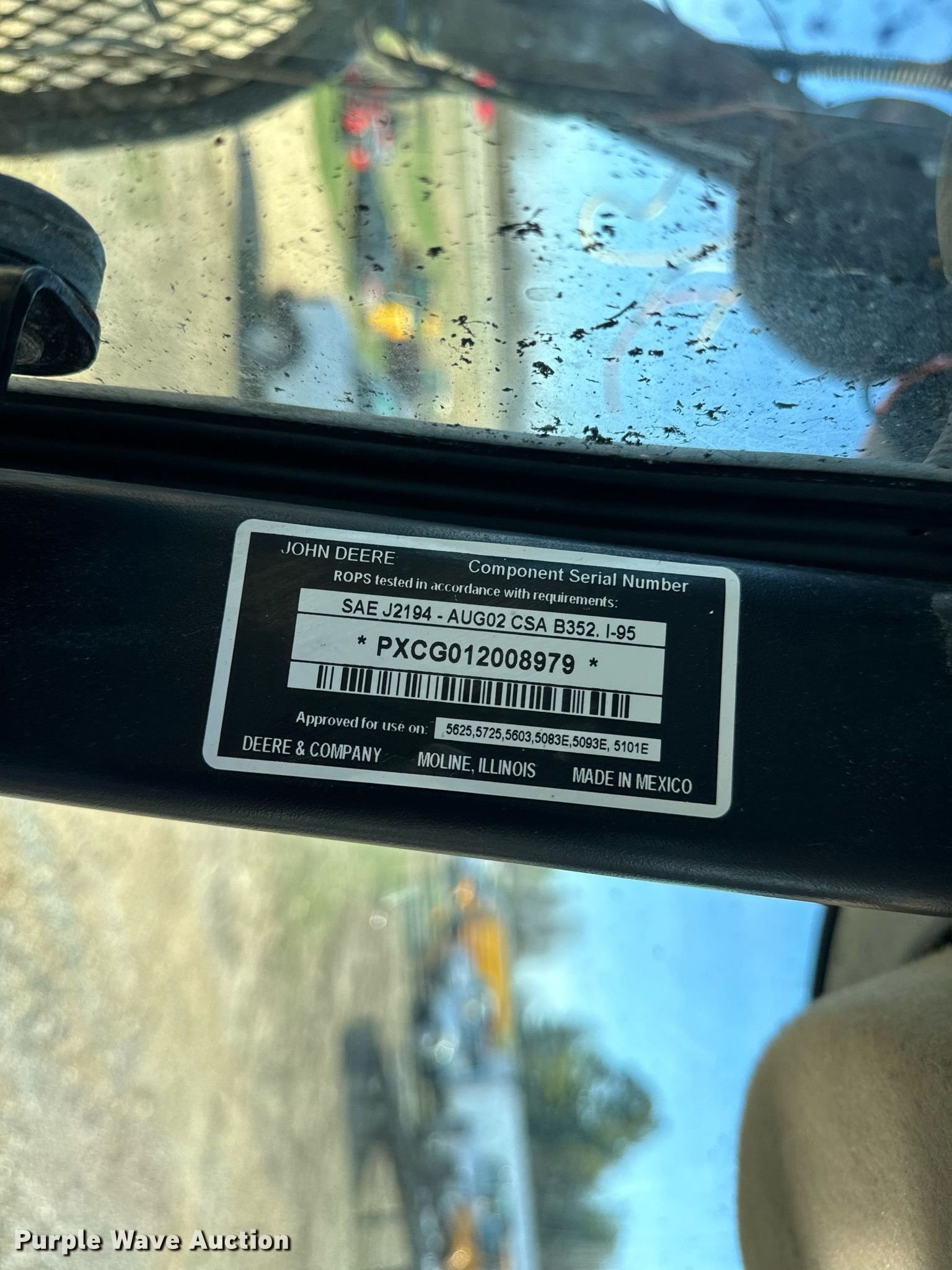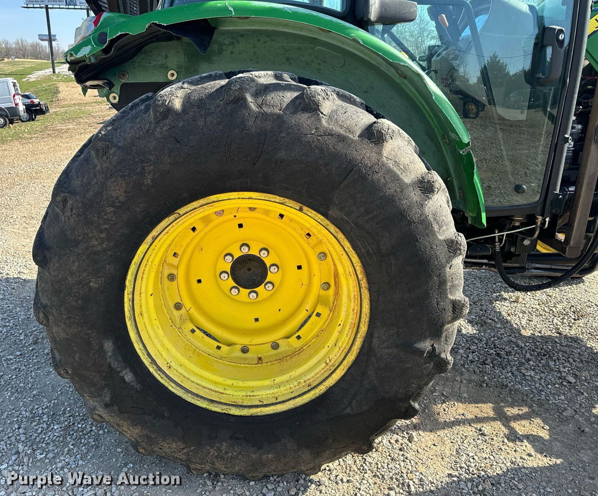 2009 John Deere 5101E MFWD tractor. Hours: 4,564 on meter, Serial: LV5101E160774, Unit #: 06206. Engine John Deere 4045TLV56, Displacement: 4.5L, Cylinders: 4, Fuel type: Diesel. Transmission Synchro, 12F - 12R, Left-hand reverser, Differential lock. Operators station AC, Heat. Features PTO: 540, Seven pin outlet, Hydraulic remote sets Rear: 3. Tires Front: 11.2-24, Rear: 18.4R30. Notes Lower rear glass broken, Oil fill cap missing, Cracked roof, Broken drawbar bracket, Drawbar missing, Tires damaged, Front wheels bent, Front passenger tire leaks. Missouri Department of Transportation (MODOT). New Bloomfield, MO 65063