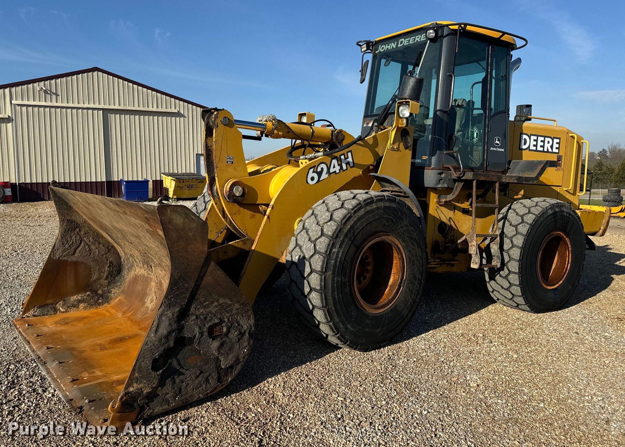 Purple Wave is selling a used Wheel Loader in Missouri. This item is a 2003 John Deere 624H wheel loader with the following: Hours: 6,520 on meter, Serial: DW624HX589722, Unit #: G8979