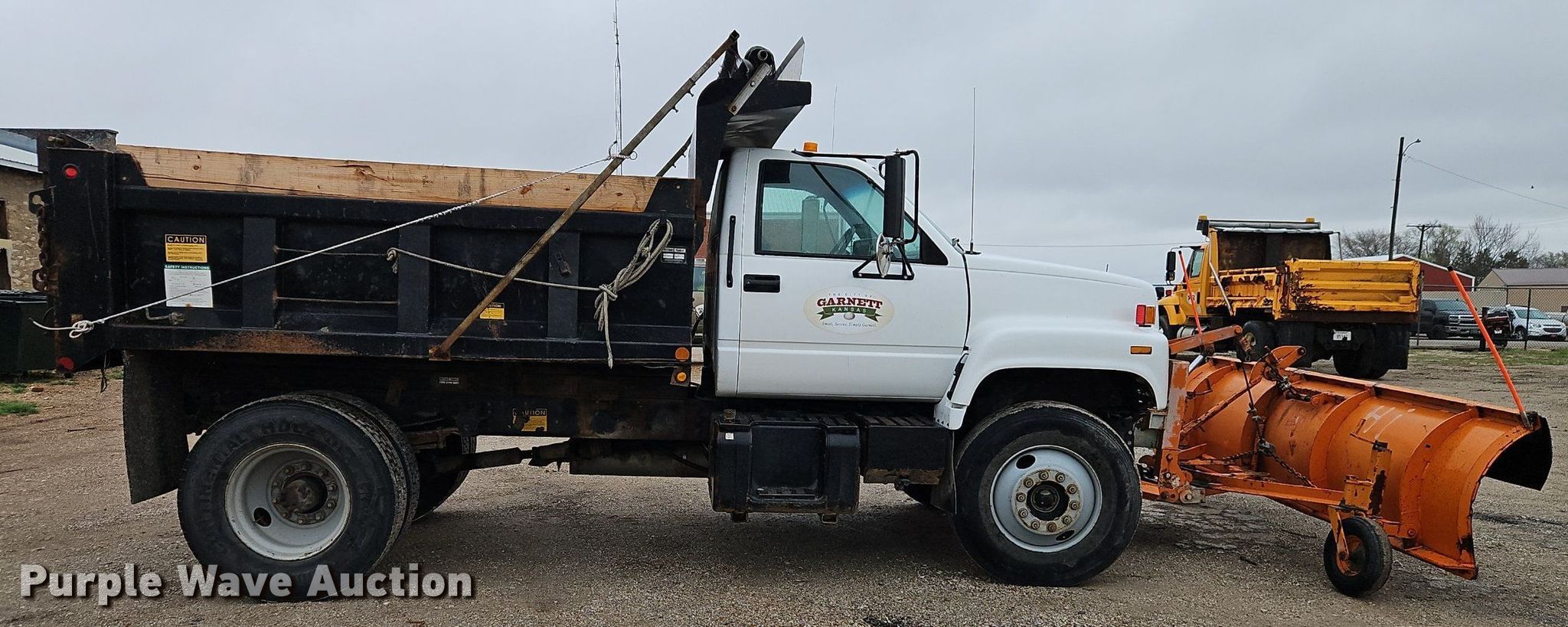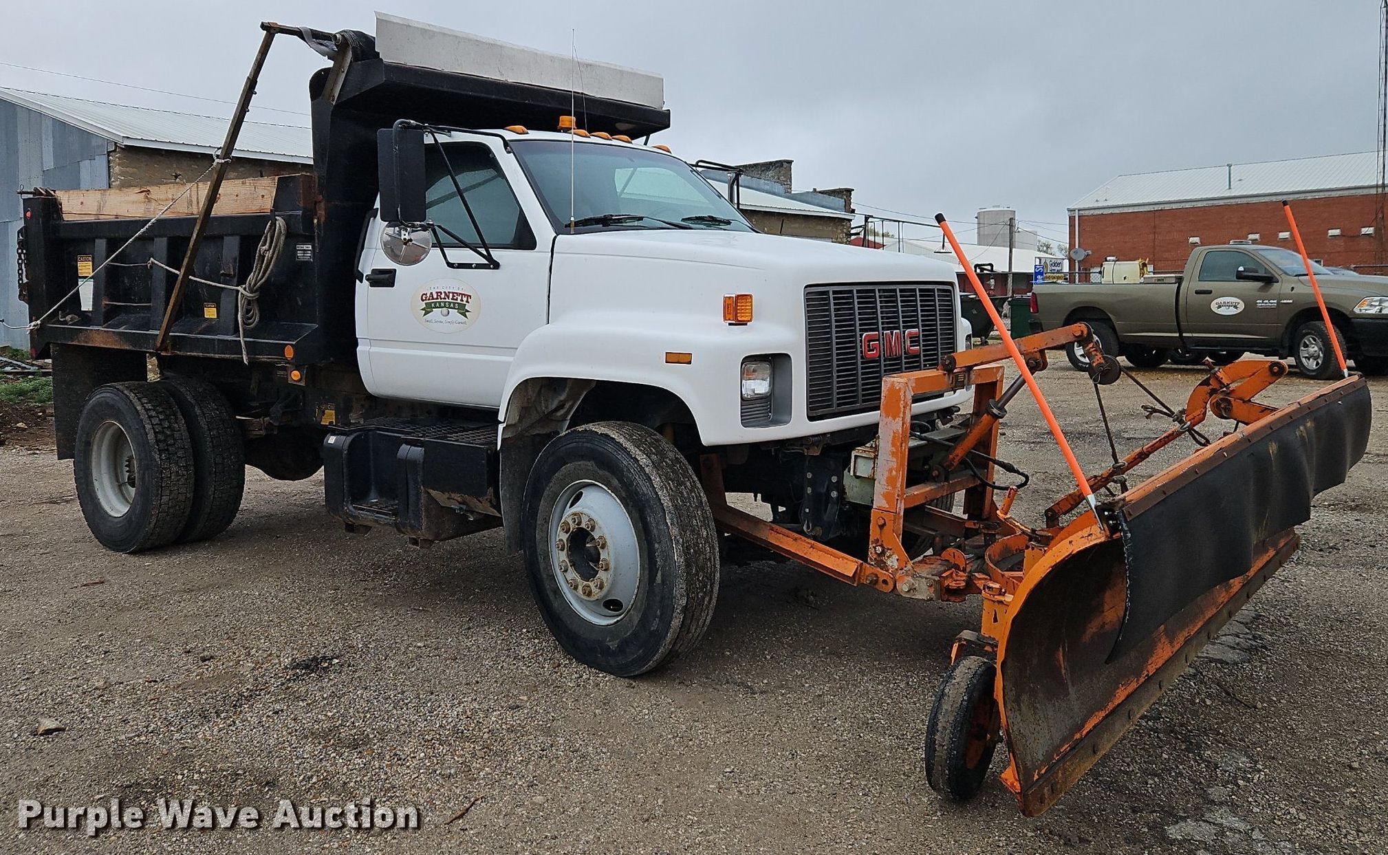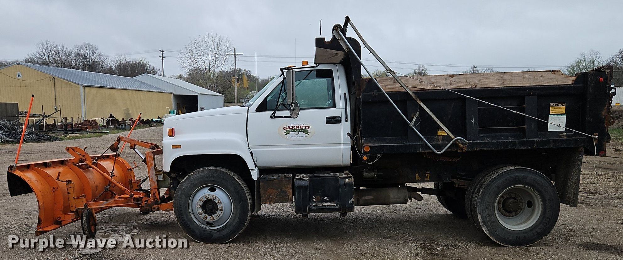 1995 GMC TopKick C6500 dump truck. Miles: 197,426 on odometer, VIN: 1GDL7H1J4SJ501769. Engine Caterpillar 3116, Displacement: 6.6L, Cylinders: 6, Fuel type: Diesel. Transmission Manual, Speed: 6. Chassis Axles: Single, Suspension: Spring, Brakes: Hydraulic, PTO. Interior Heat. Features Dump bed 10' L x 8' W, Side height: 26", Side board height: 8", Bed type: Steel, Roll tarp, Ram: Single, End gate: Manual, Plow Coates PB122, Width: 11". Tires Size: 11R22.5. Notes Plow hydraulic issue, does not lift. Kansas title. Seller is a government entity who will be assigning and distributing the title. Please contact the seller for distribution questions. Title distribution may be delayed up to 14 days from verification of funds. City of Garnett, KS. Garnett, KS 66032