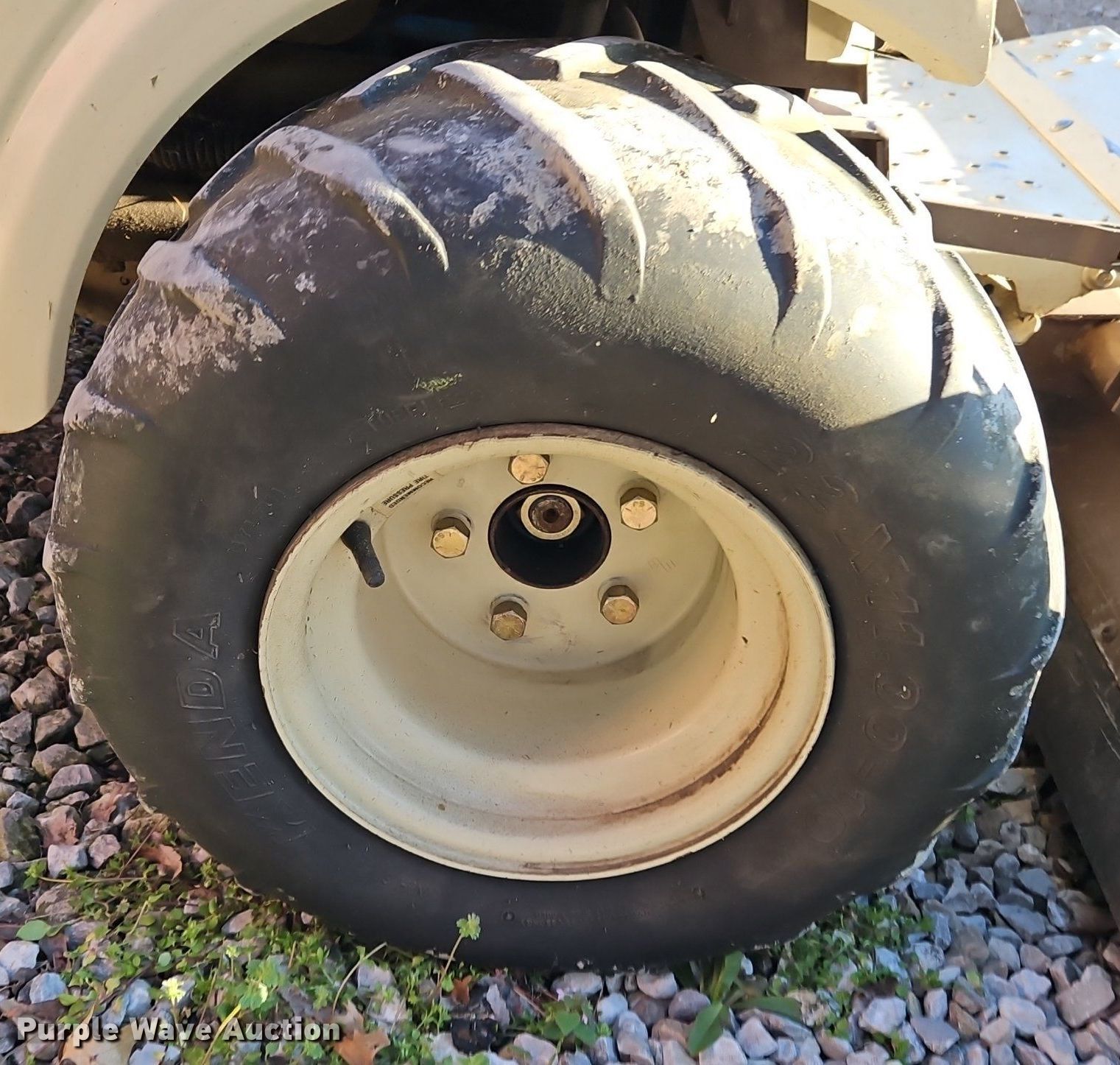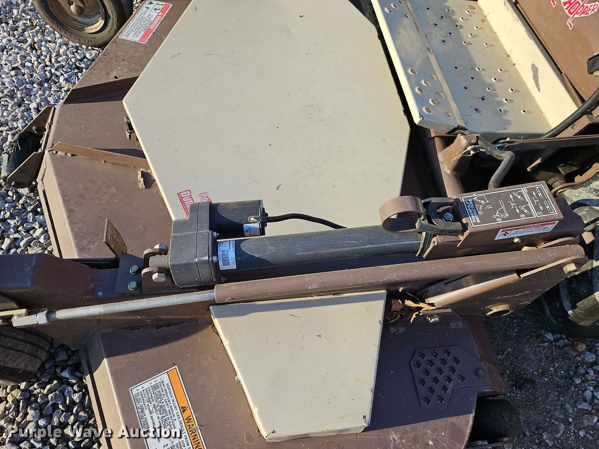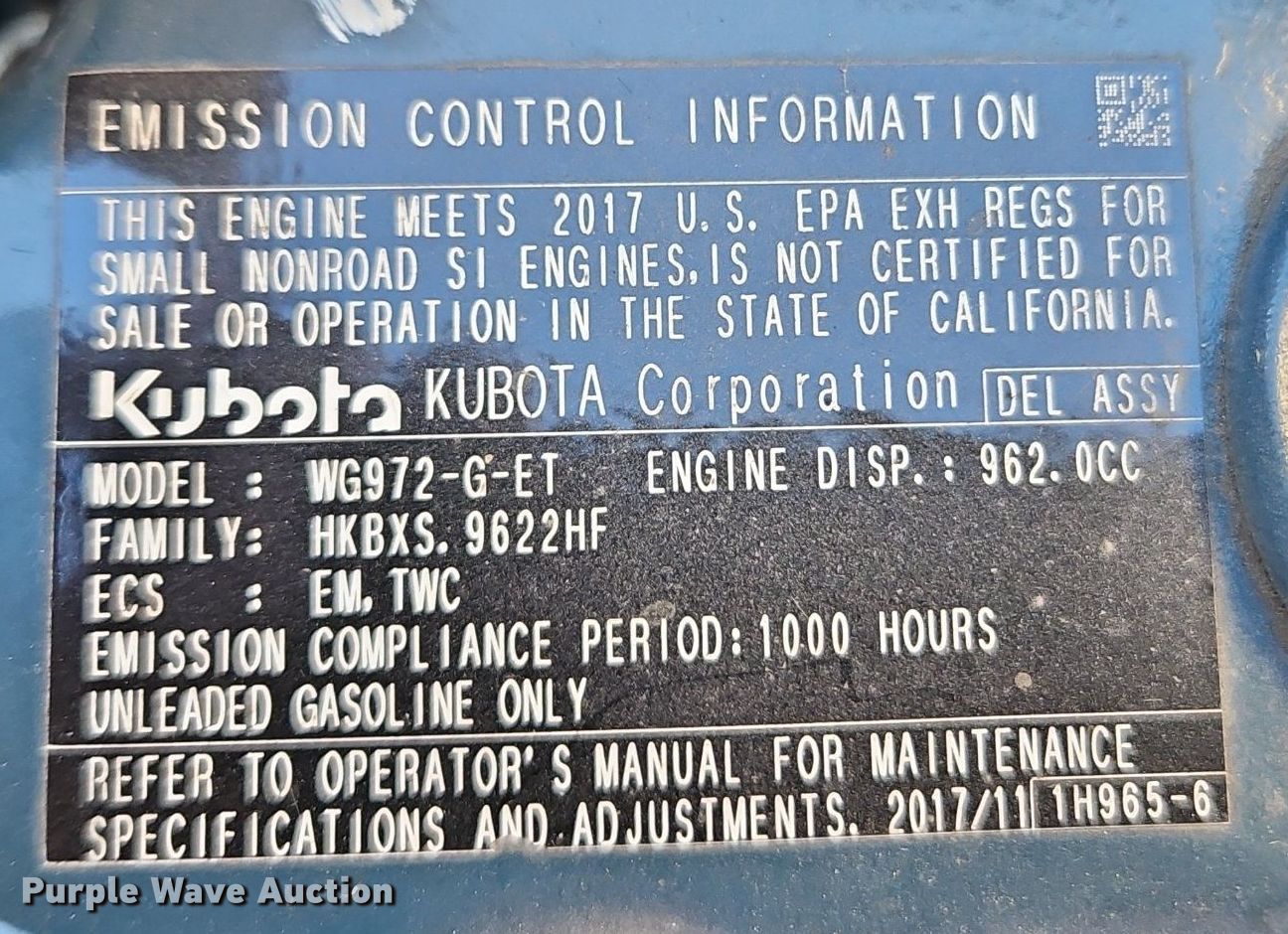 Grasshopper 932G2 ZTR lawn mower. Hours: 1,447 on meter, Cutting width: 72", Serial: 6818667. Engine Kubota WG972-G-ET, Displacement: 962cc, Cylinders: 3, Fuel type: Gas. Transmission Hydrostatic. Operators station OROPS. Features Self- propelled, Hydraulic front deck lift, Flip up front deck. Tires Front: 22x11.00-10, Rear: 13x6.50-6. City of LaCygne. 206 North Commercial Street. LaCygne, KS 66040