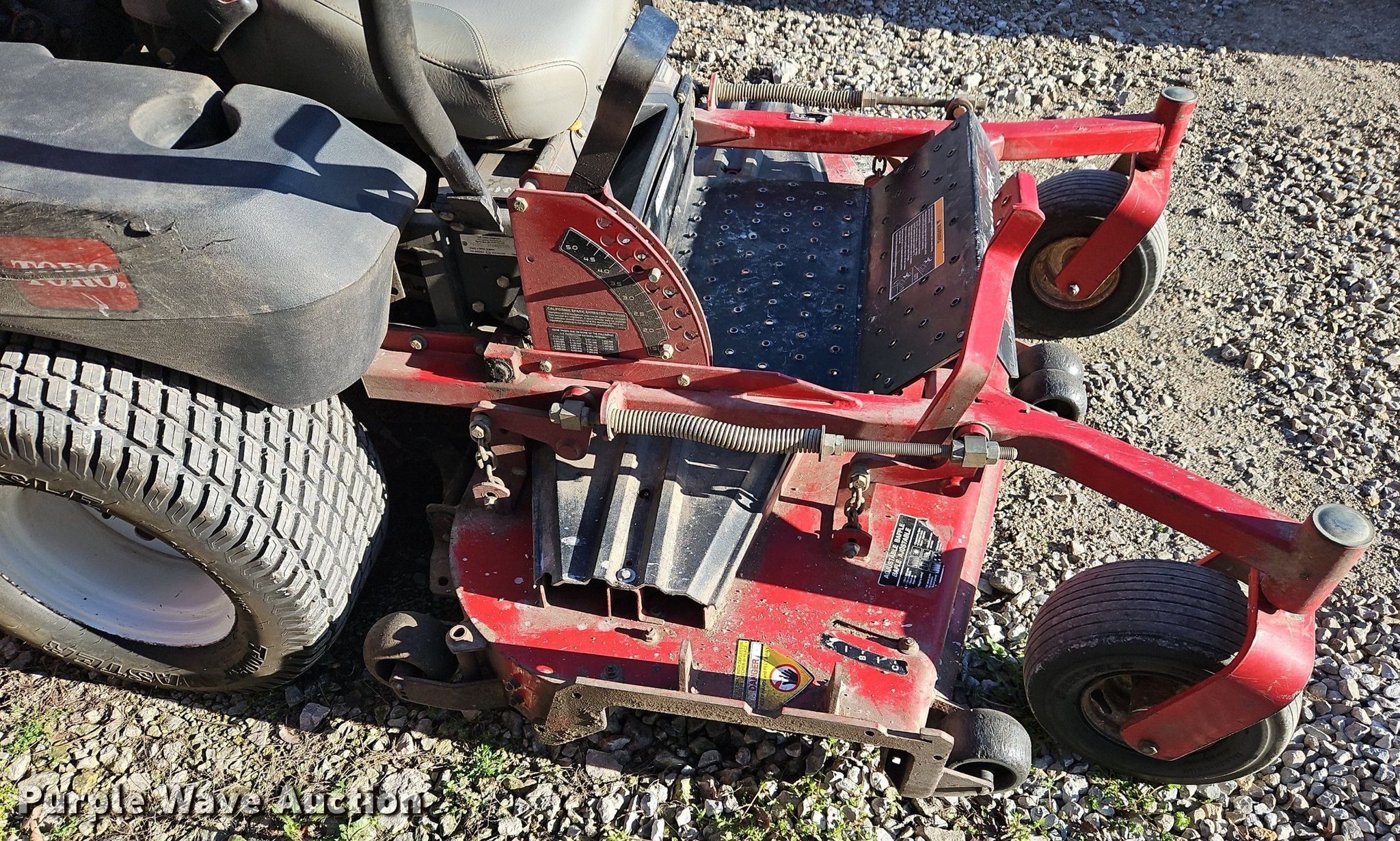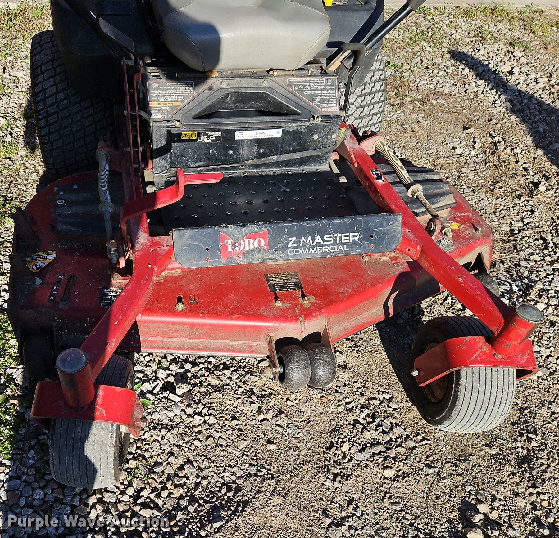 Purple Wave is selling a used Commercial Turf Mower in Kansas. This item is a Toro Z Master 74296 ZTR lawn mower with the following: Hours: 1,587 on meter, Cutting width: 60", Serial: 310000599