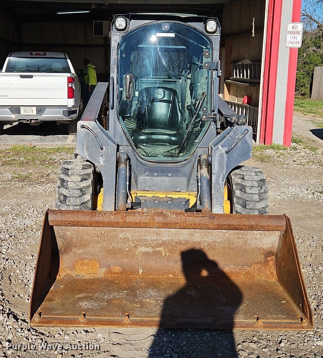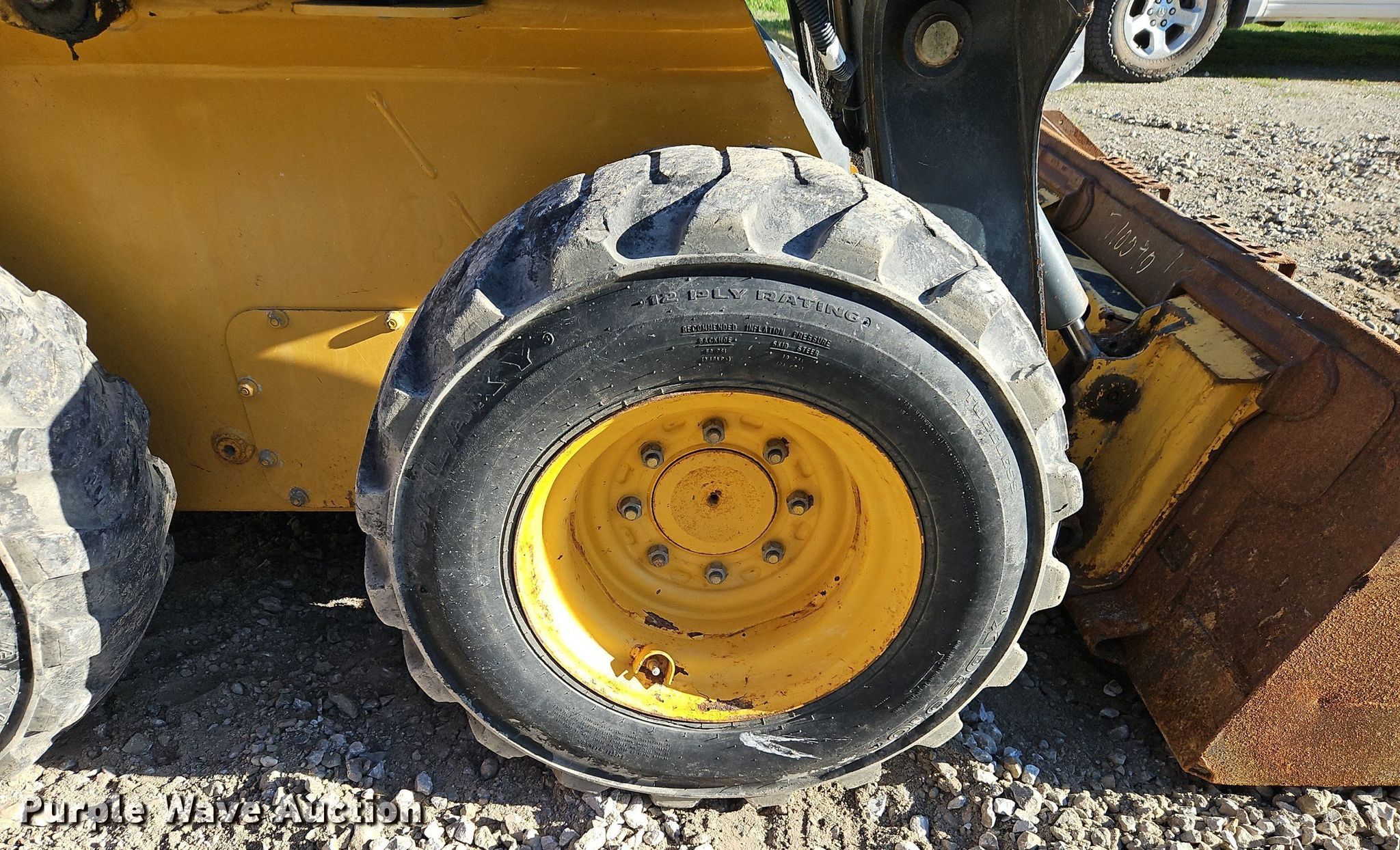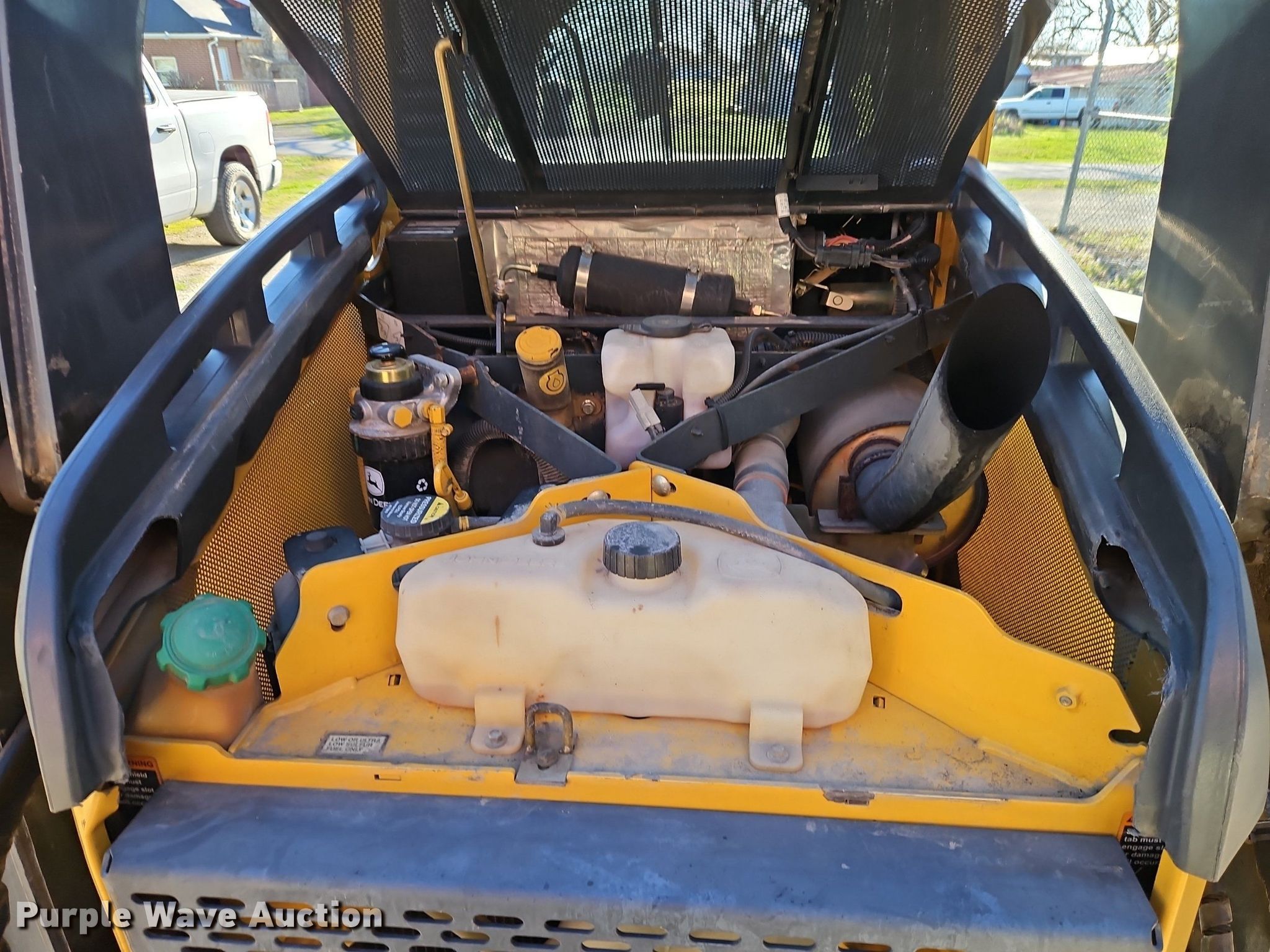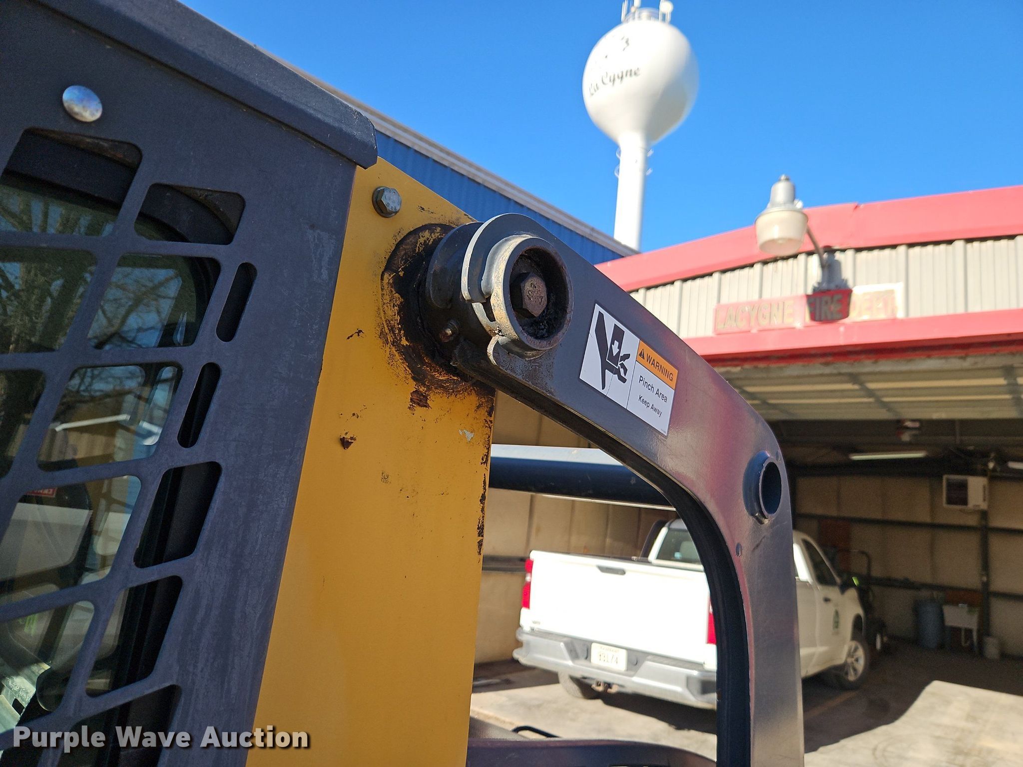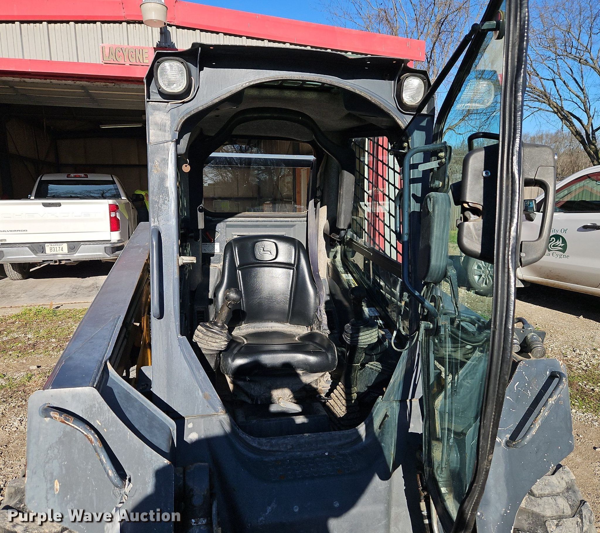 2010 John Deere 318D skid steer loader. Hours: 974 on meter, Serial: T0318DA179094. Engine Cylinders: 4, Fuel type: Diesel. Transmission Hydrostatic. Operators station Enclosed cab, AC, Heat, Bucket control: Hand. Features Auxiliary hydraulics, Quick coupler: Hydraulic, Bucket Width: 67", Cutting edge: Bolt-on. Tires Size: 12x16.5, Brand: Galaxy. City of LaCygne. 206 North Commercial Street. LaCygne, KS 66040