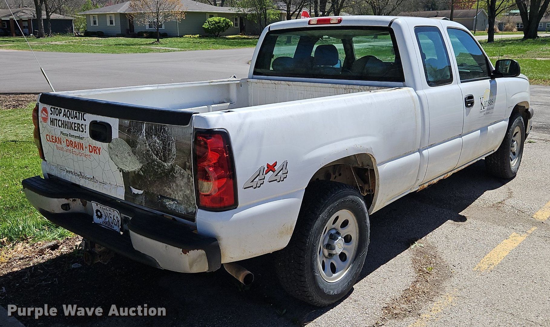 2006 Chevrolet Silverado 1500 Ext. Cab pickup truck. Miles: 125,777 on odometer, VIN: 1GCEK19B46Z263493. Engine Displacement: 5.3L V8 OHV, Cylinders: 8, Fuel type: Gas. Transmission Automatic, Four wheel drive. Interior AC, Heat, Power windows, Power locks, Cruise control. Tires Size: 265/70R17. Notes Dash warning indicator: Check engine, Airbag. Kansas title. Kansas Wildlife & Parks. 315 East Main Street. Mound City, KS 66056