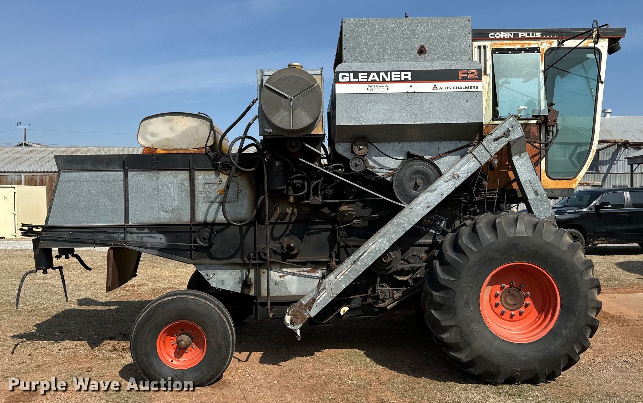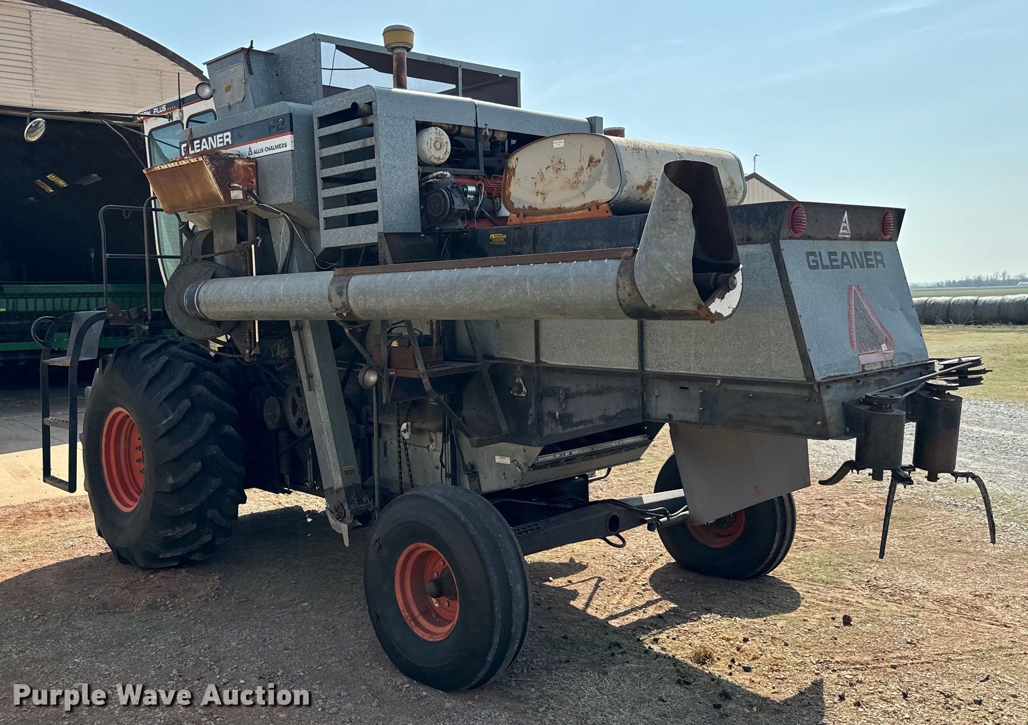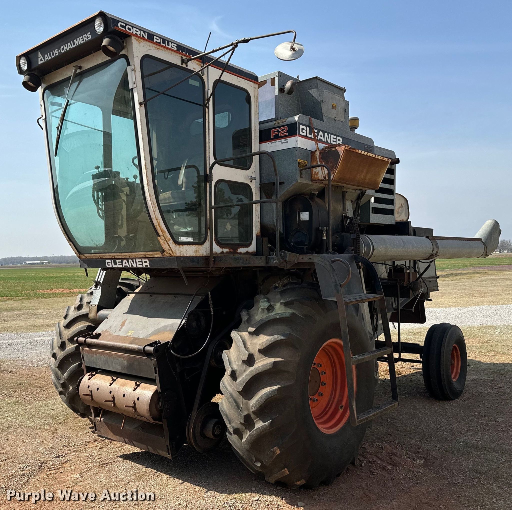 Purple Wave is selling a used Combine in Oklahoma. This item is a Gleaner F2 combine with the following: Engine hours: 1,882 on meter, Separator hours: 1,226 on meter, Serial: F-K46699H, Sale #: 2440-KP