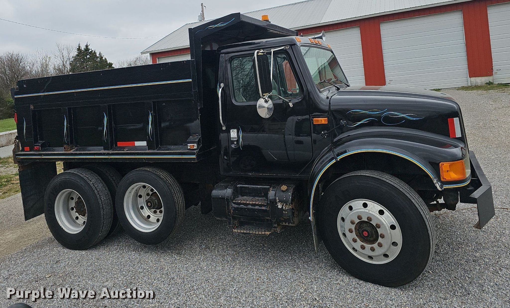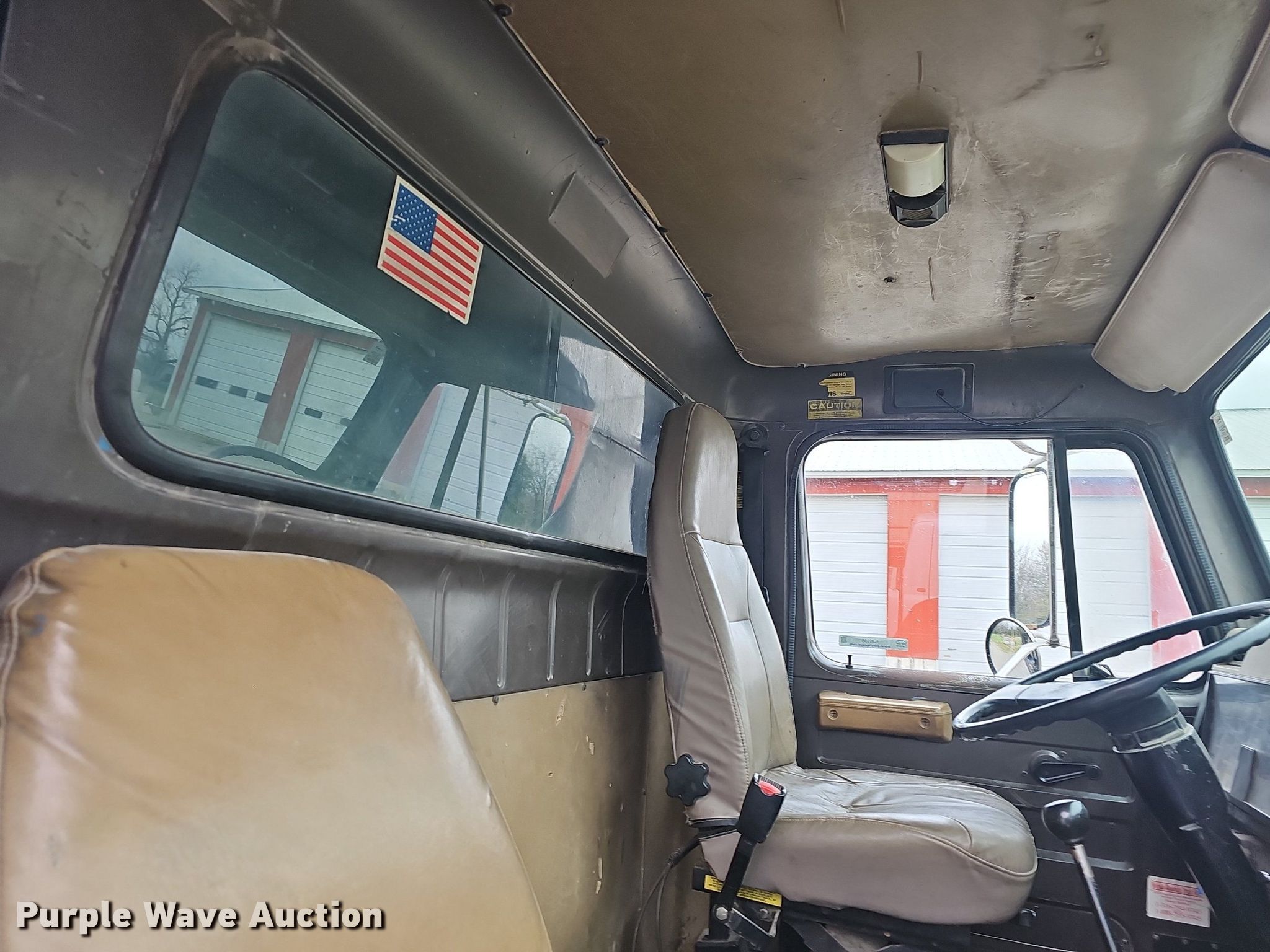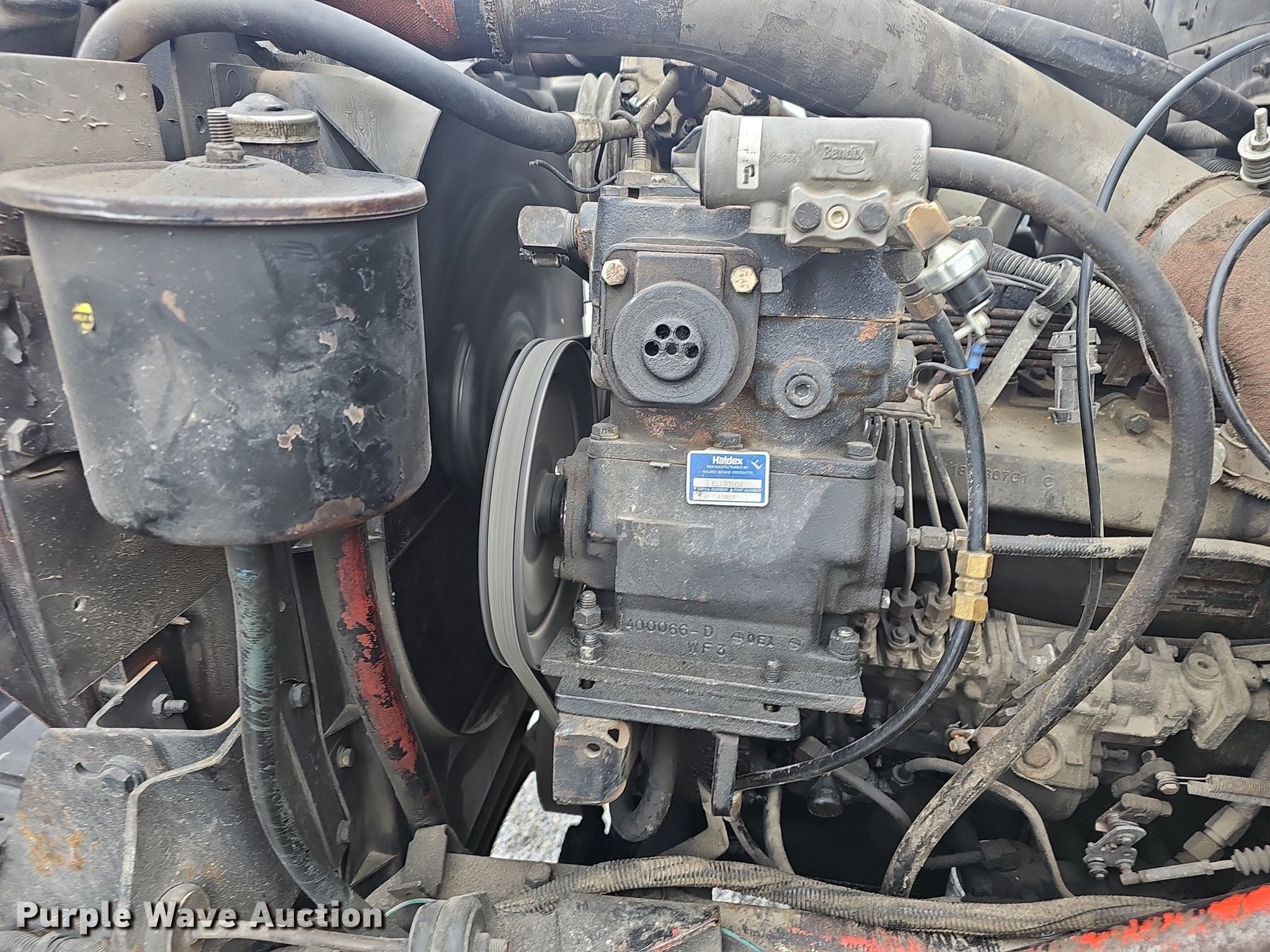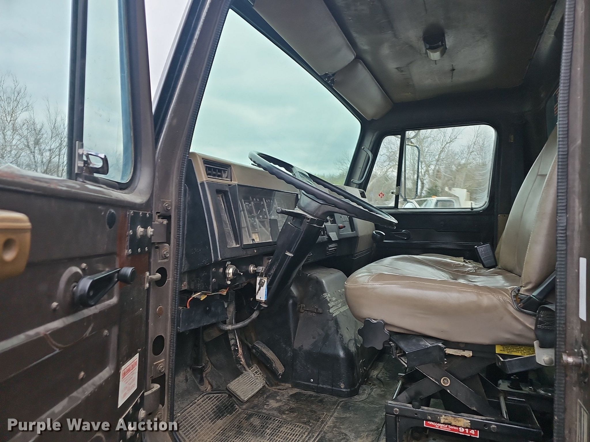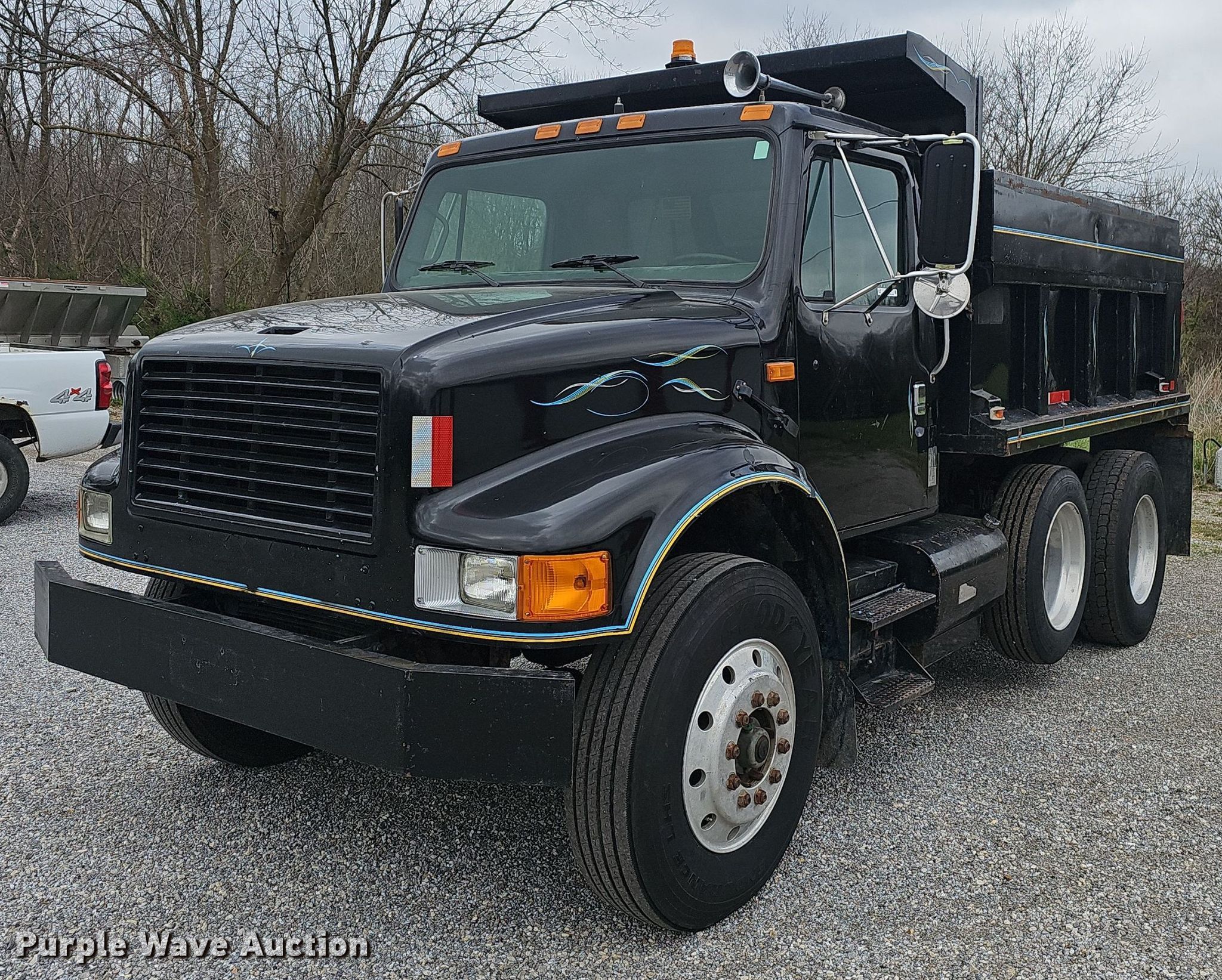 1991 International 4900 dump truck. Miles: 91,283 on odometer, VIN: 1HTSDNHN8MH319344. Engine Displacement: 7.6L, Cylinders: 6, Fuel type: Diesel. Transmission Manual, Speed: 7. Chassis Axles: Tandem, Pusher axle, Suspension: Spring, Brakes: Air, PTO, Wheelbase: 236". Interior AC, Heat. Features Dump bed 9' 10" L x 92" W, Side height: 45", Bed type: Steel, Ram: Single, End gate: Air operated. Tires Size: 11R22.5, Lift axle: 255/70R22.5. Missouri title. Title distribution may be delayed up to 14 days from verification of funds. Lawrence County, MO. 339 North Dogwood Drive. Ash Grove, MO 65604