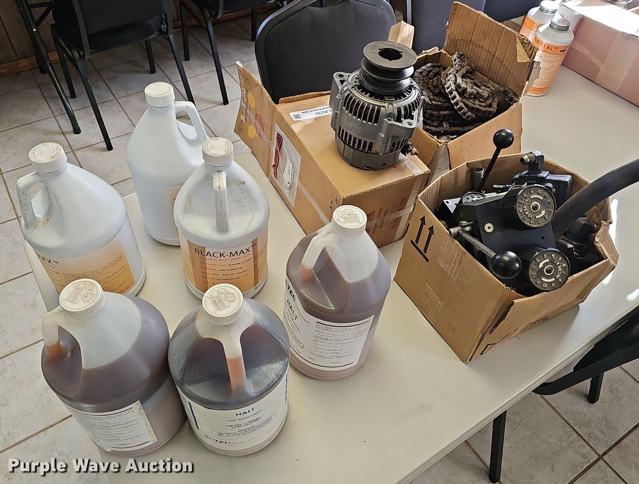 Purple Wave is selling a used Truck Part and Attach. in Missouri. This item is a Spreader parts with the following: Spreader chains and speed controls, (3) gallons of Black Max rust arrestor, (3) gallons Ri-Tec rust transformer, Rebuilt alternator with dual pulley