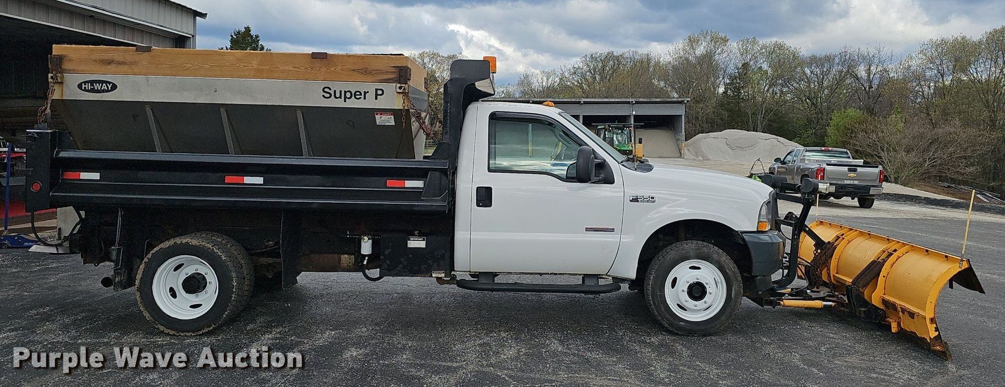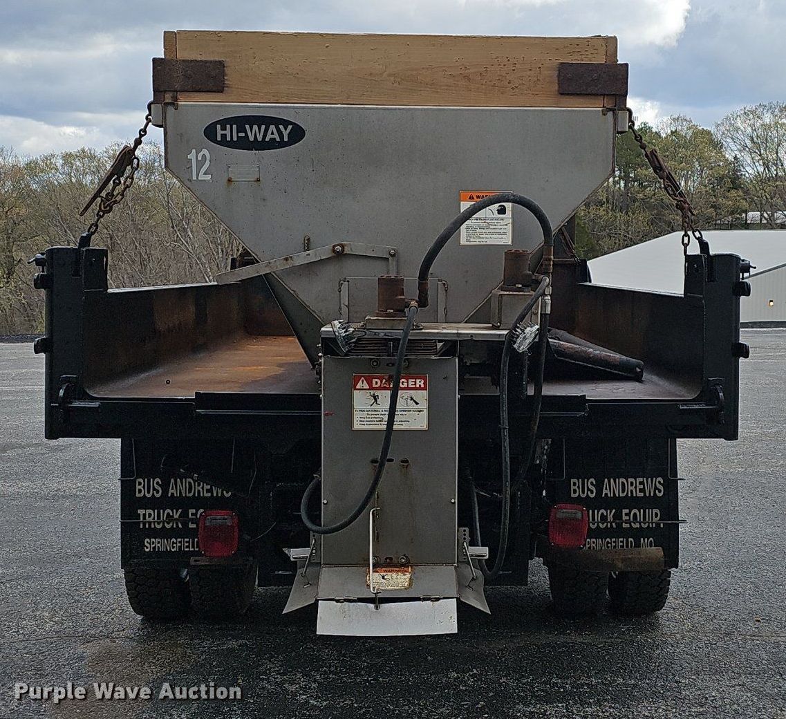 2004 Ford F550 Super Duty XL dump truck. Miles: 37,133 on odometer, VIN: 1FDAF57P44ED21398. Engine Displacement: 6.0L, Cylinders: 8, Fuel type: Diesel. Transmission Manual, Speed: 6, Four wheel drive. Interior AC, Heat, Cruise control. Features Dump bed Heil, 11' L x 90" W, Snow plow Length: 10', Hi-way Super P spreader Conveyor: 12', Spinner: 16". Tires Size: 225/70R19.5. Missouri title. Title distribution may be delayed up to 14 days from verification of funds. Stone County, MO. Lampe, MO 65681