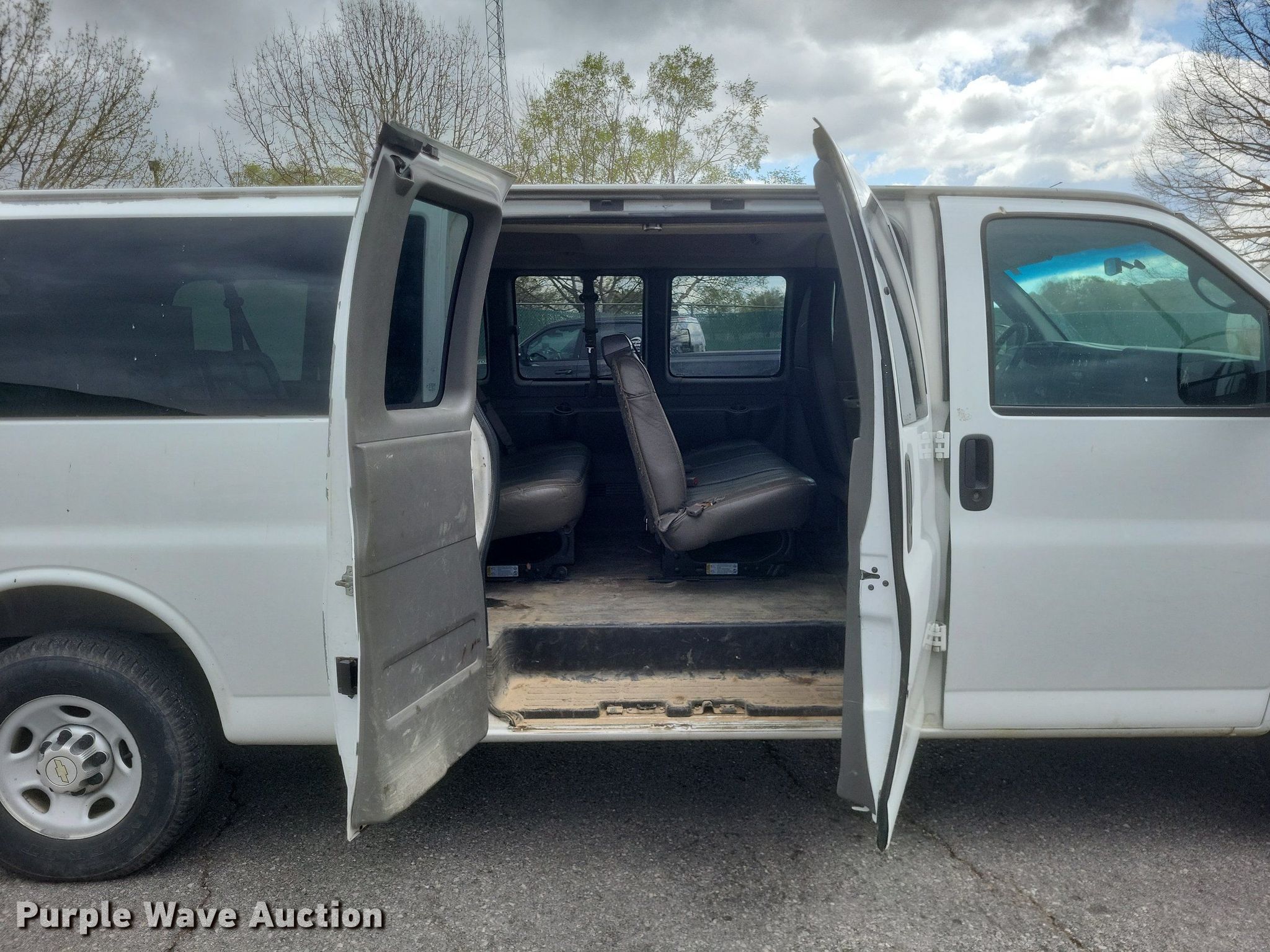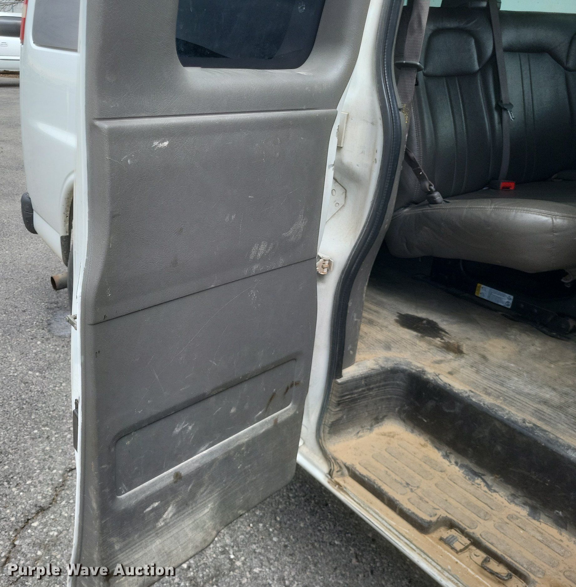 2014 Chevrolet Express 3500 van. Miles: 169,499 on odometer, VIN: 1GAZGZFGXE1136111, Unit #: 8988. Engine Displacement: 6.0L V8 OHV, Cylinders: 8, Fuel type: Gas. Transmission Automatic. Interior AC, heat, Power windows, power locks, Cruise control. Tires Size: LT245/75R16. Notes Windshield chipped or cracked. Missouri title. Title distribution may be delayed up to 14 days from verification of funds. Missouri Dept. of Transportation - Southeast District. Sikeston, MO 63801
