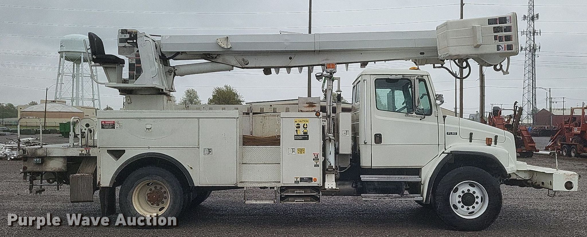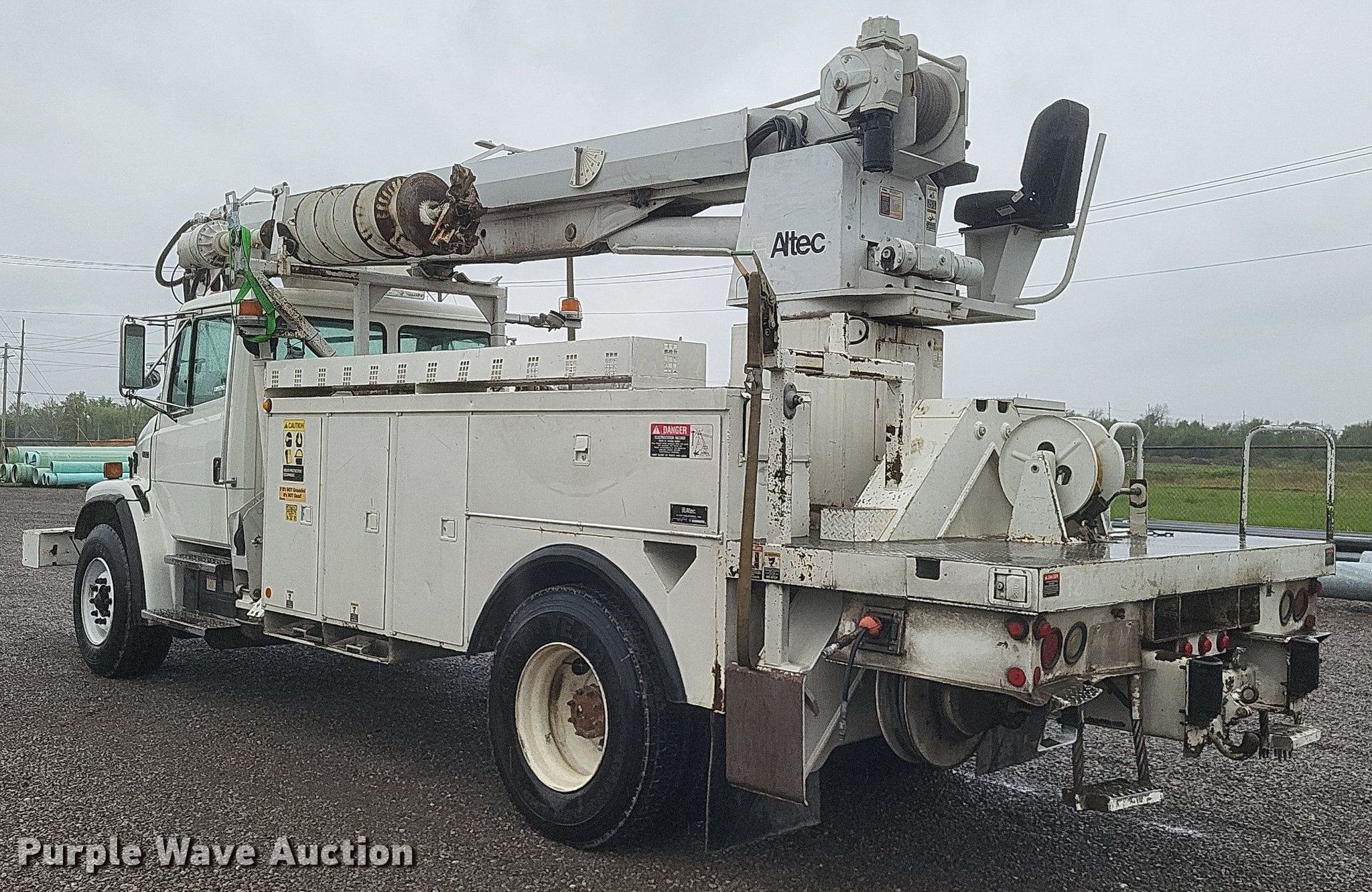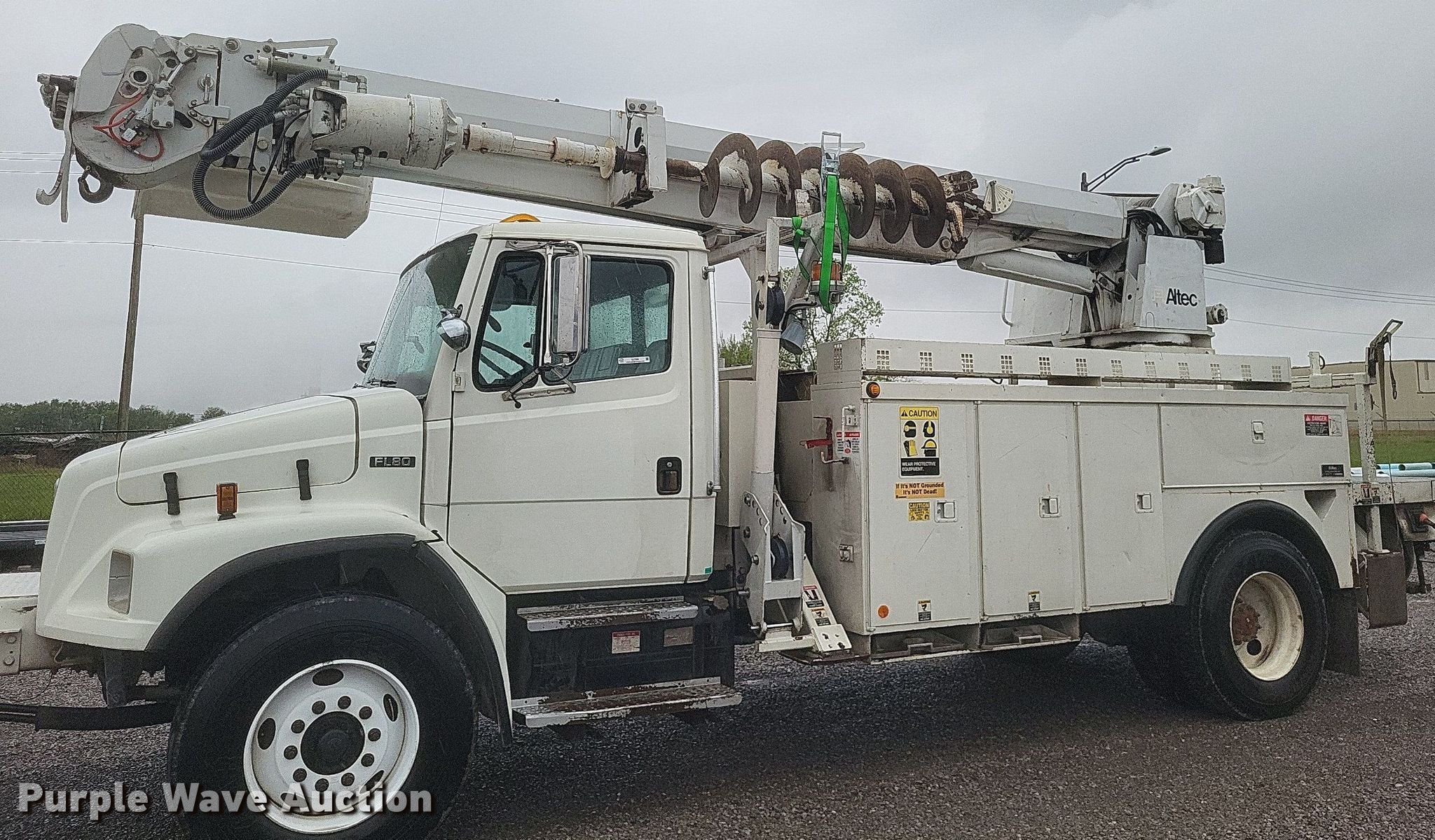 This 2002 Freightliner FL80 digger derrick truck will sell to the highest bidder regardless of price.