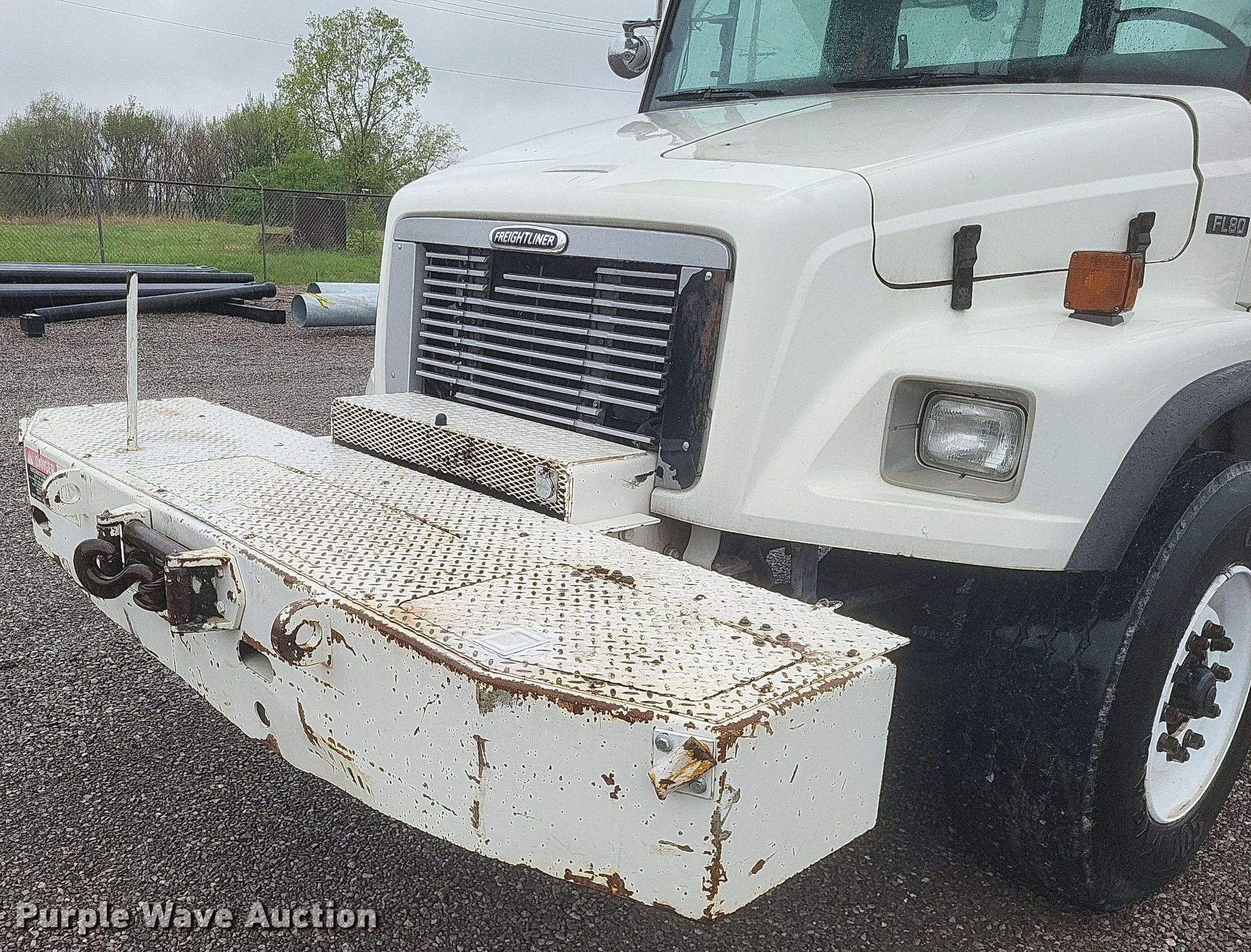 Purple Wave is selling a used Digger Derrick Truck in Missouri. This item is a 2002 Freightliner FL80 digger derrick truck with the following: Miles: 96,517 on odometer, Hours: 4,743 on meter, VIN: 1FVABXAK62HJ57497, Unit #: 21