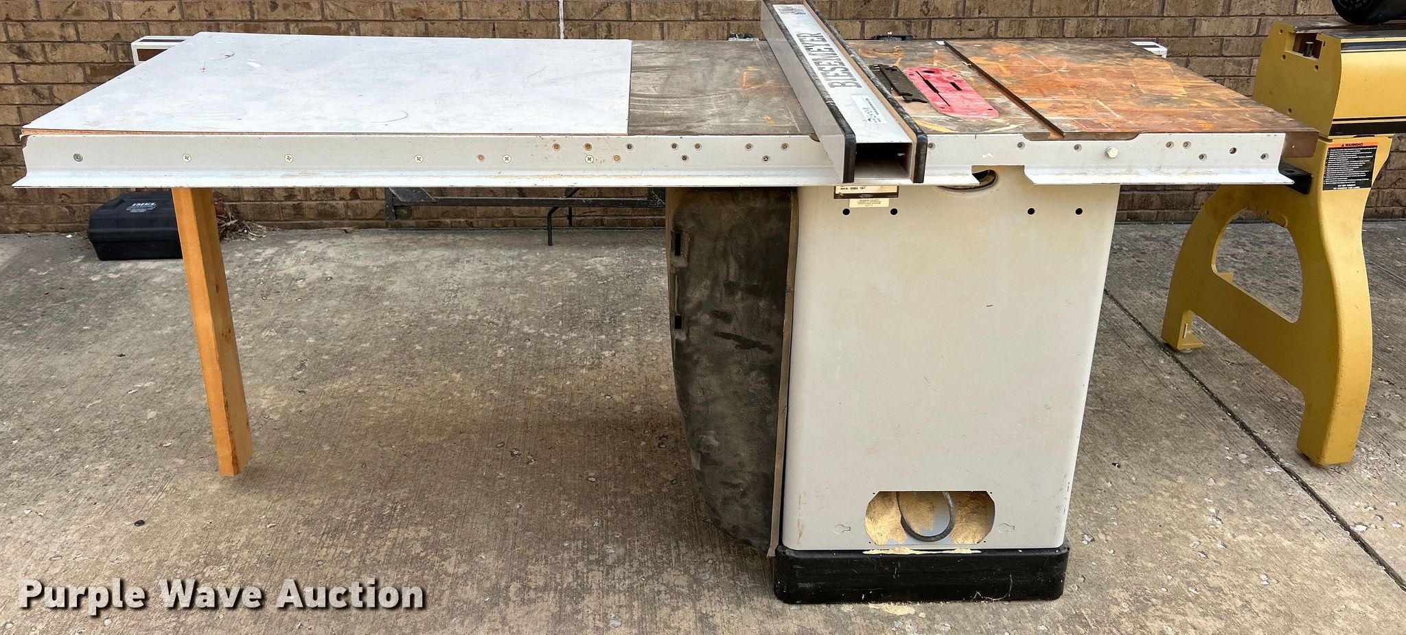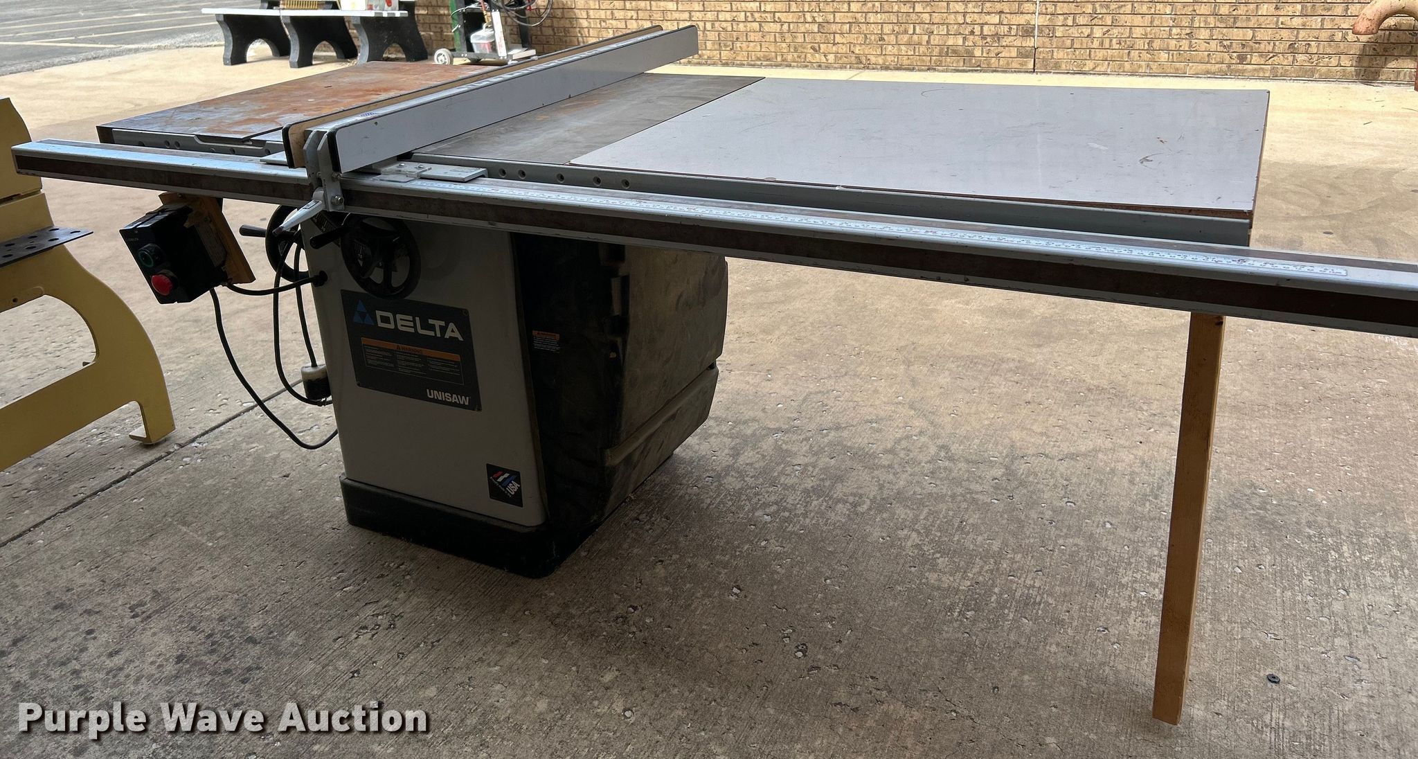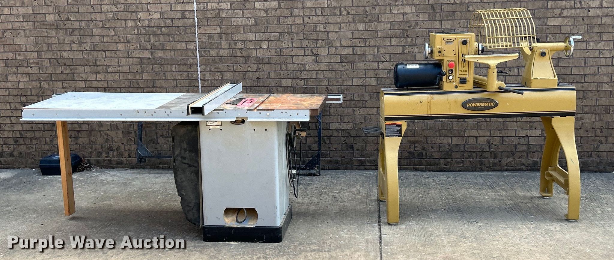 Powermatic 3520B wood lathe. Serial: 080835203085. Electric Motor HP: 2, Volts: 220, Phase: Three. Notes Power cord missing. Delta Unisaw table saw Serial: 02F55515. Electric Motor Volts: 230, Phase: Single. Collinsville Area Vocational Center. Collinsville, IL 62234