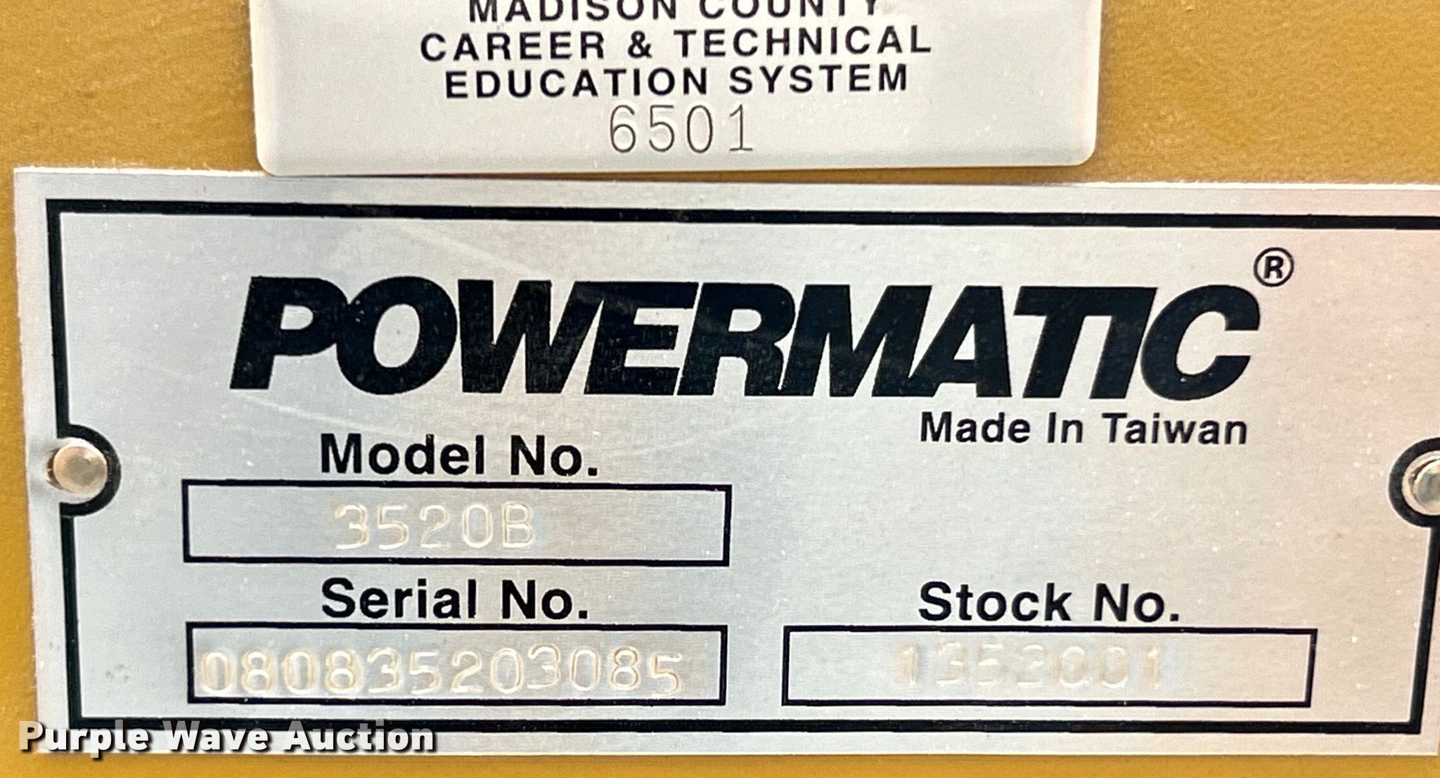 Purple Wave is selling a used Lathes, Manual in Illinois. This item is a Powermatic 3520B wood lathe with the following: Serial: 080835203085