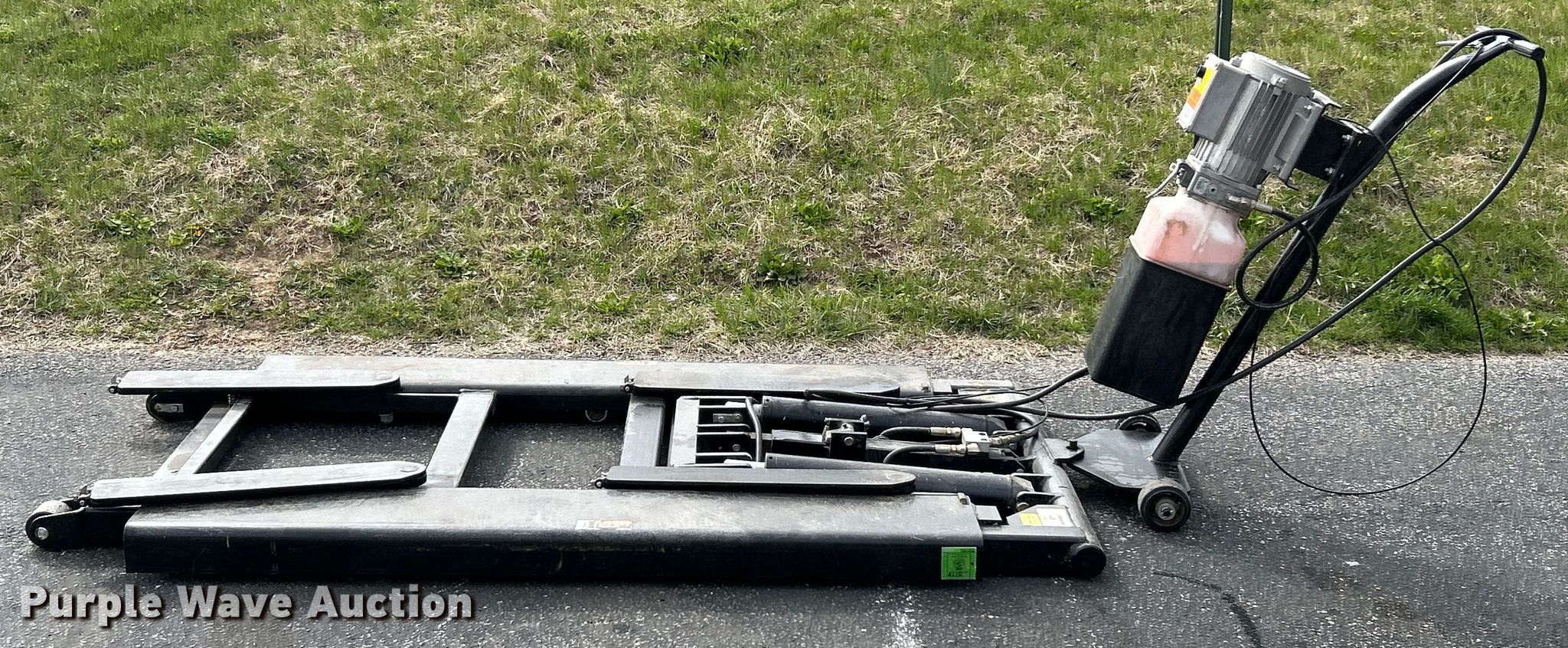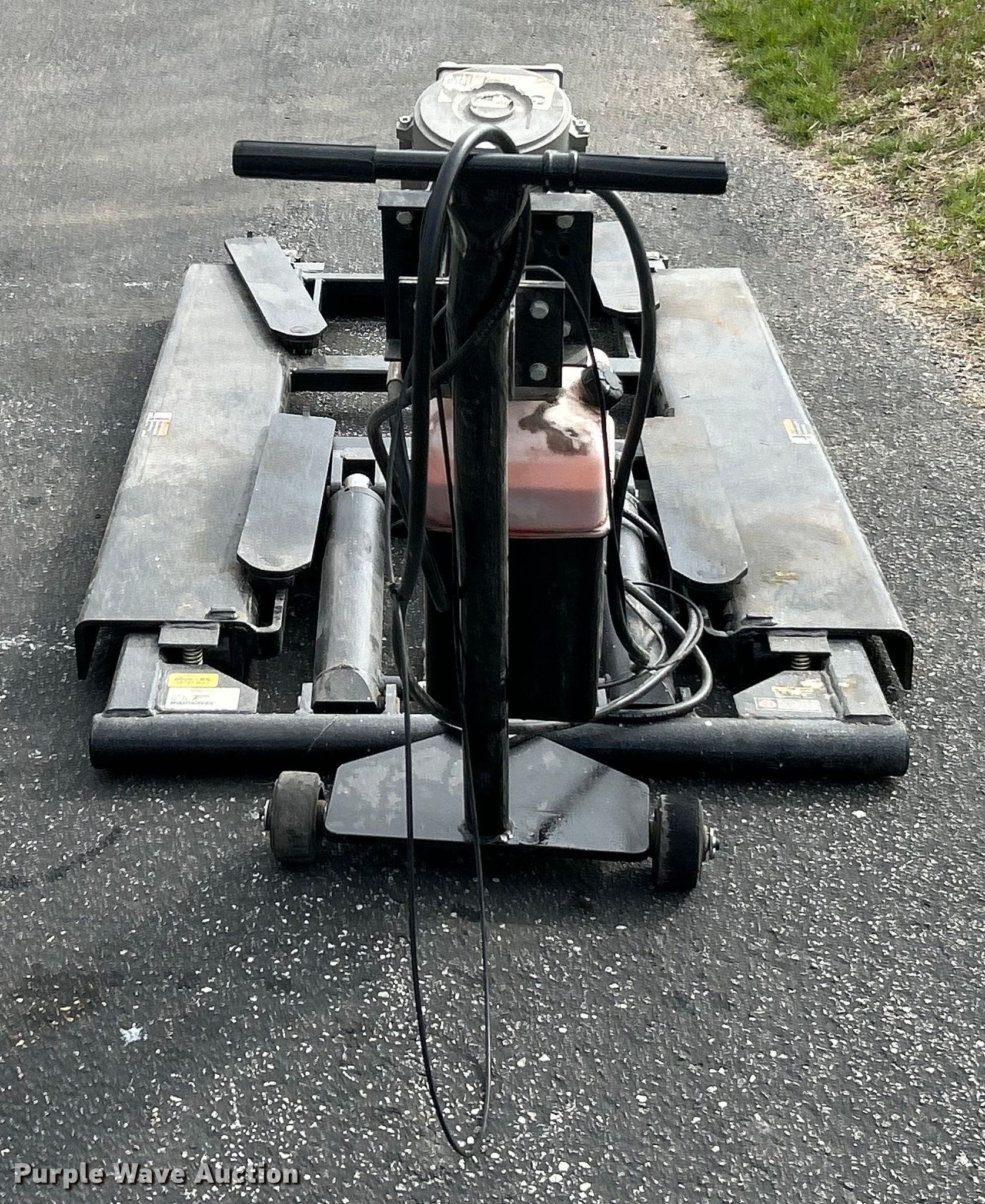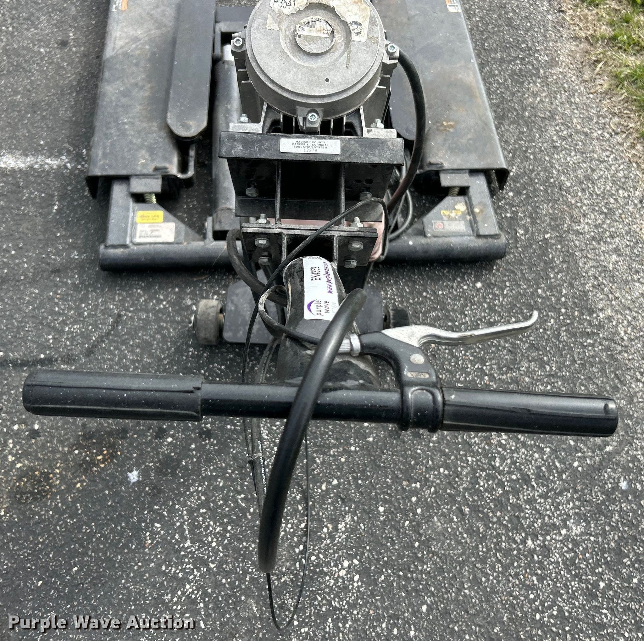 Rotary RMR6P mid-rise lift. Serial: KMK14K0013. Electric Motor GHS, Serial: 1400065142, HP: 1.7, Volts 115, Phase: Single. Features Capacity: 6,000 lbs, Maximum height: 54". Collinsville Area Vocational Center. Collinsville, IL 62234
