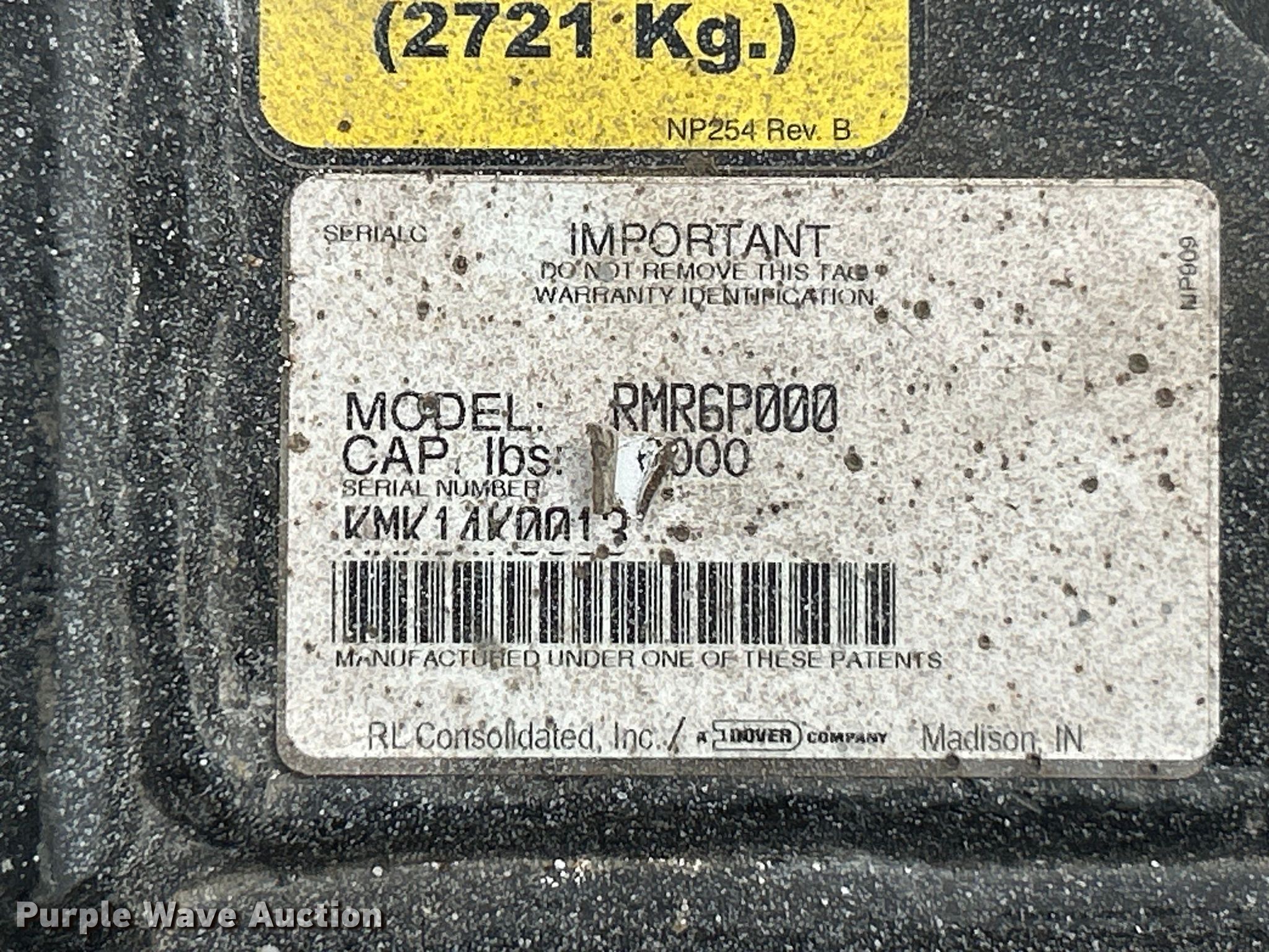 Purple Wave is selling a used Tools in Illinois. This item is a Rotary RMR6P mid-rise lift with the following: Serial: KMK14K0013