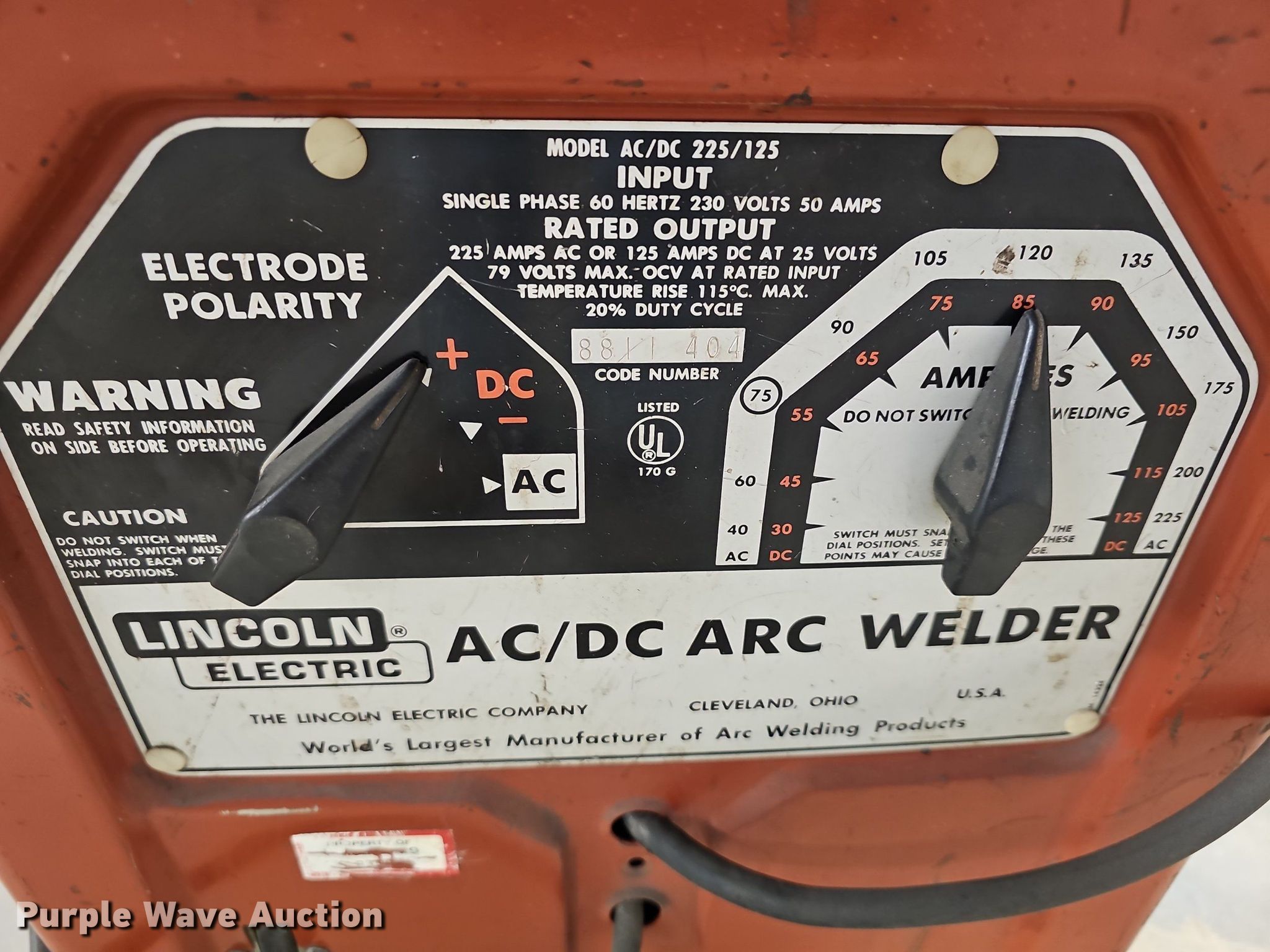 Purple Wave is selling a used Welder (Manual) in Kansas. This item is a (2) Lincoln Electric AC/DC welders with the following: Phase: Single