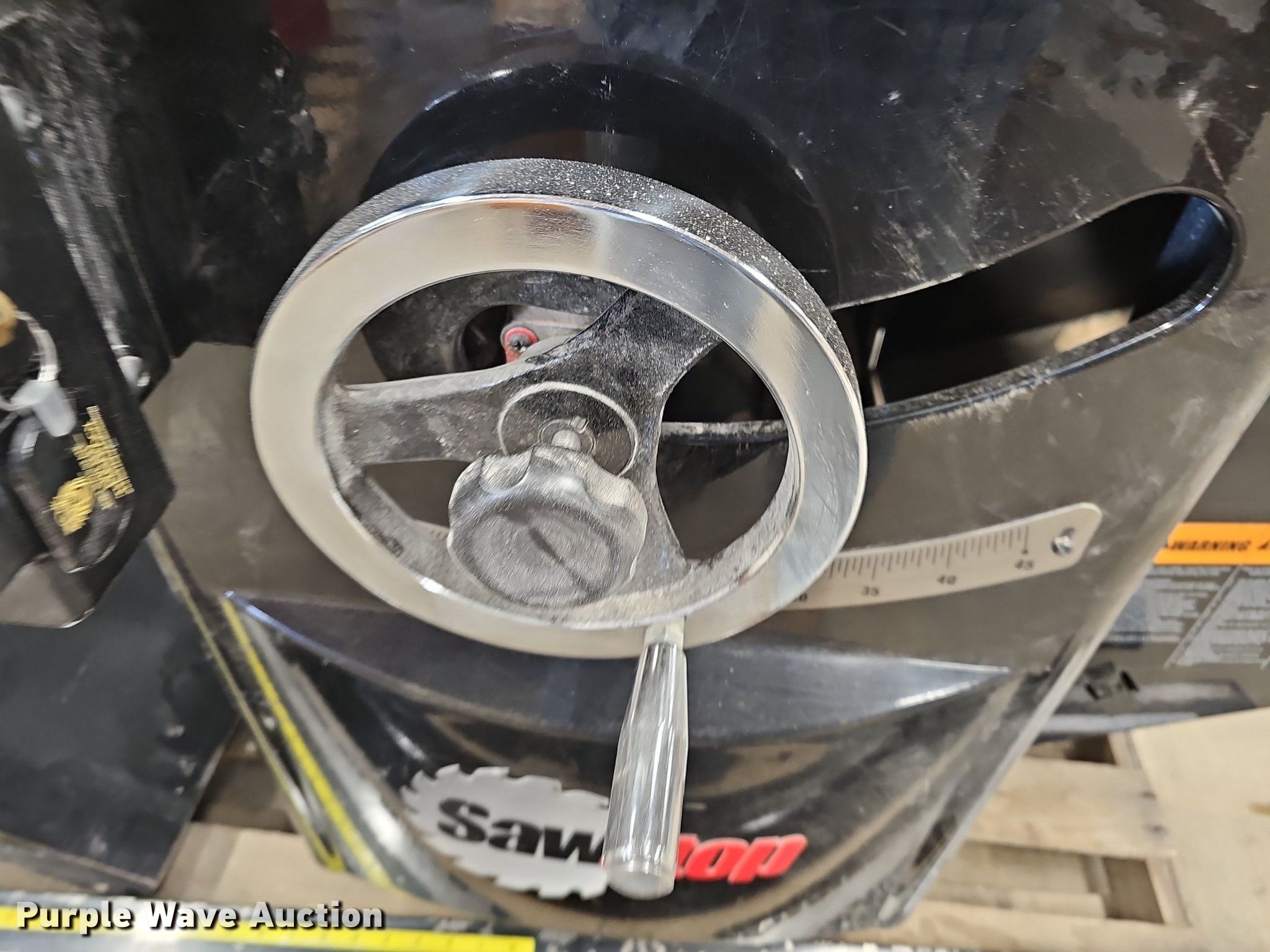 Saw Stop ICS31230 cabinet saw. Serial: I085104763, Extension rails, Blade guard, Key, Phase: Single, Side extension table, No blade, Blade capacity: 10", Owners manual. Minneapolis, KS 67467