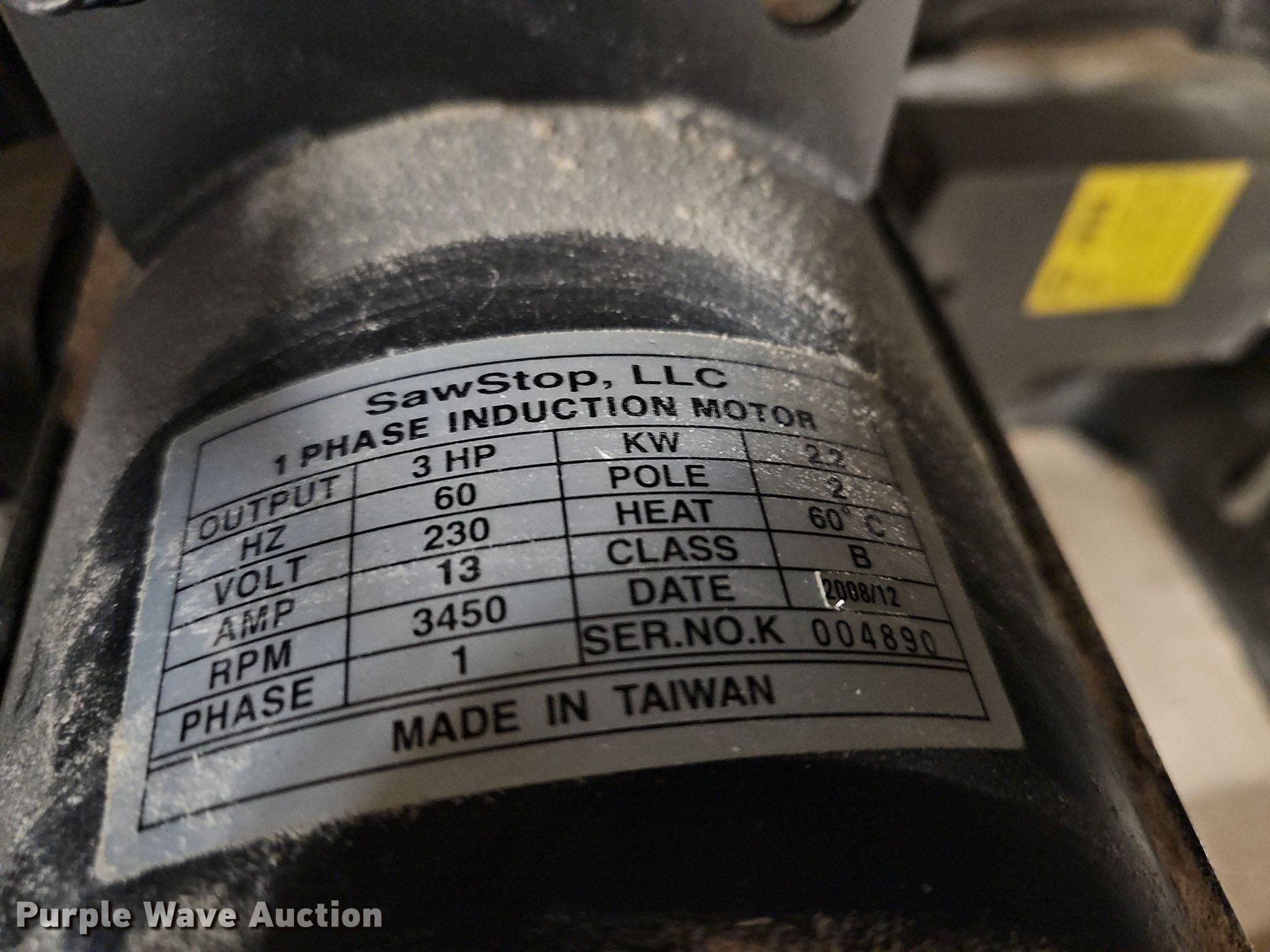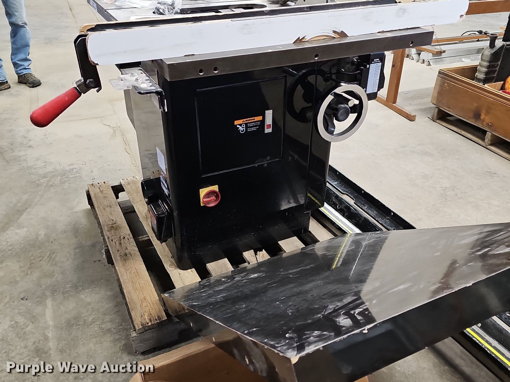 Purple Wave is selling a used Tools in Kansas. This item is a Saw Stop ICS31230 cabinet saw with the following: Serial: I085104763, Extension rails, Blade guard, Key, Phase: Single, Side extension table, No blade, Blade capacity: 10", Owners manual