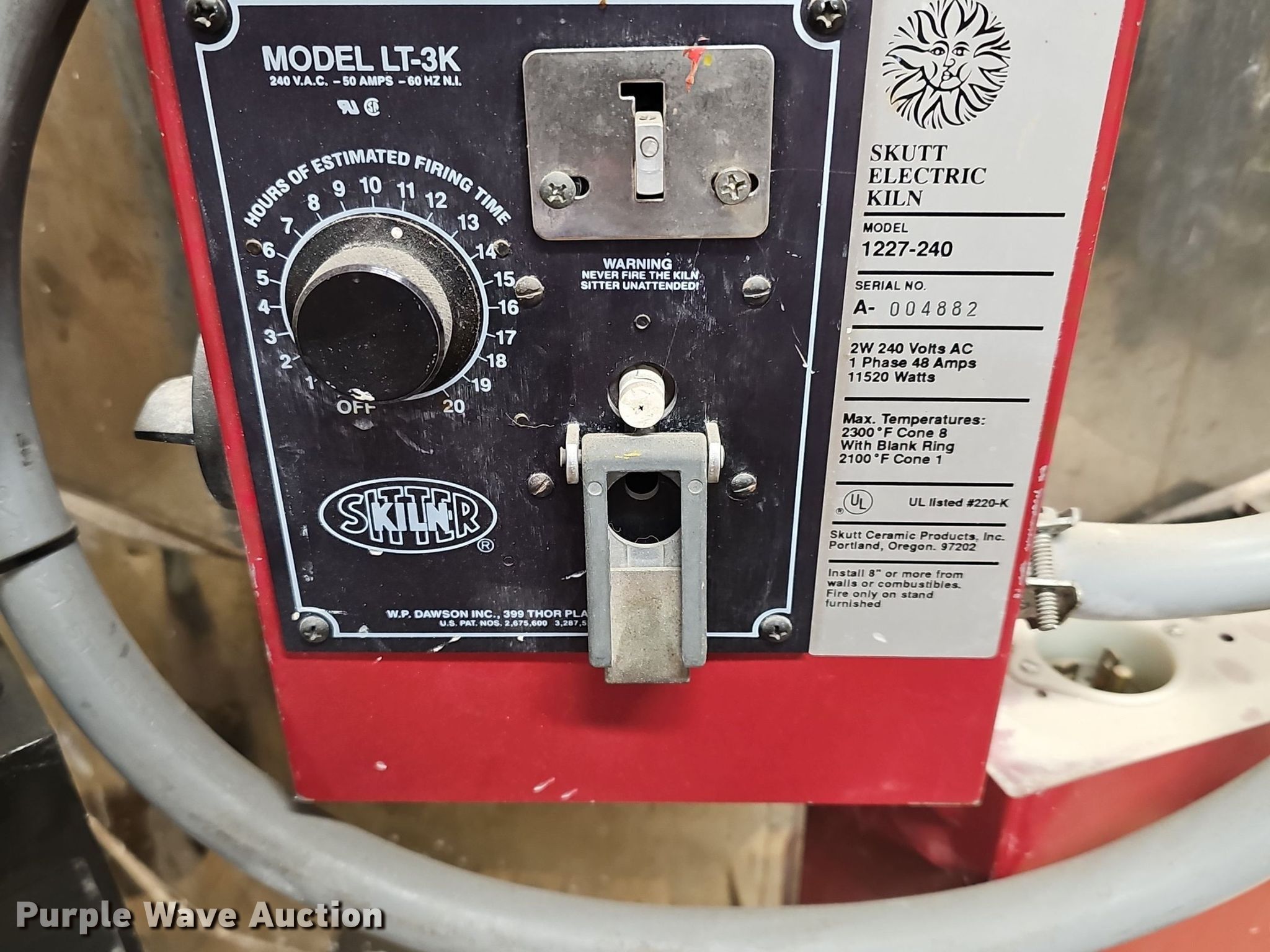 Purple Wave is selling a used Tools in Kansas. This item is a Skutt LT3K kiln with the following: Serial: A004882, Dimensions: 34" x 33", Phase: Single
