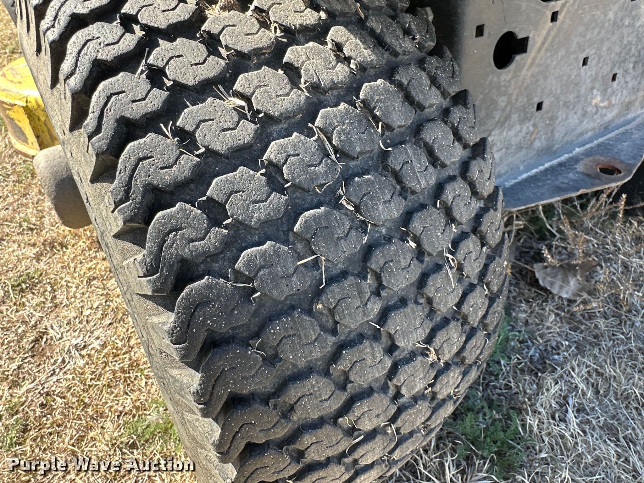 John Deere 165 lawn mower. Cutting width: 36". Engine Fuel type: Gas. Transmission Hydrostatic. Tires Front: 15x6.00-6, Rear: 18x8.50-8. Notes Flat tire, Unknown operating condition. Lipscomb County, TX. 105 Oak St. Lipscomb, TX 79056