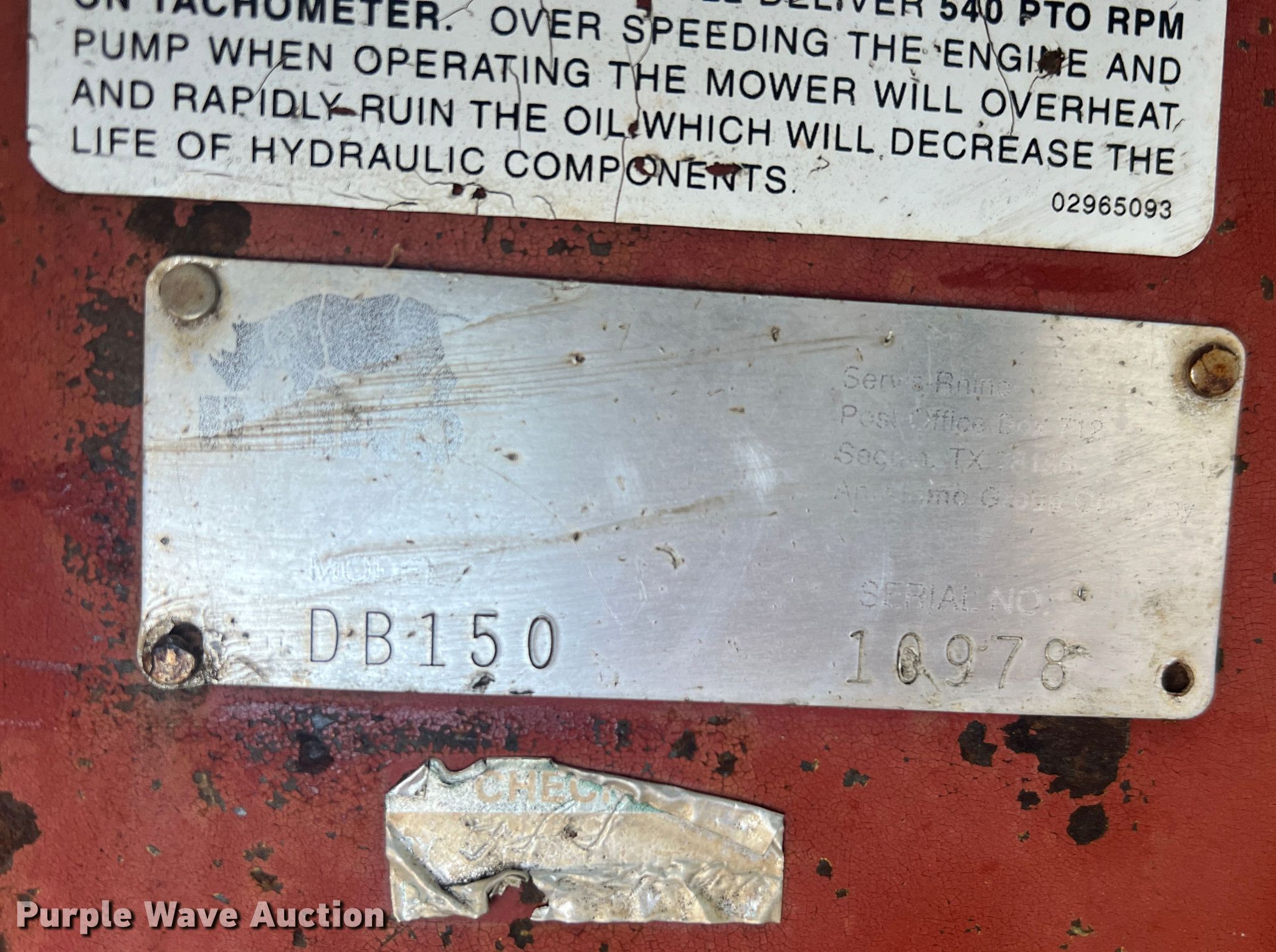 Rhino DB150 side boom rotary mower. Serial: 10978. Features Width: 60", PTO: 540, Hitch: Three point. Notes Tires not included. Jack County TX. Jacksboro, TX 76458