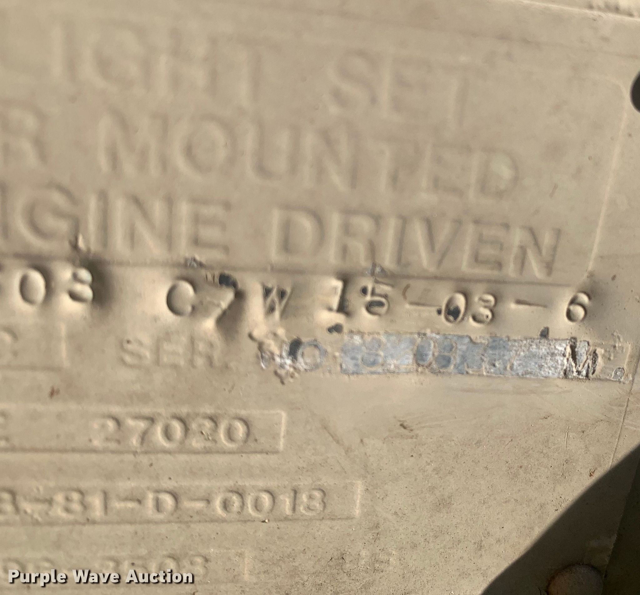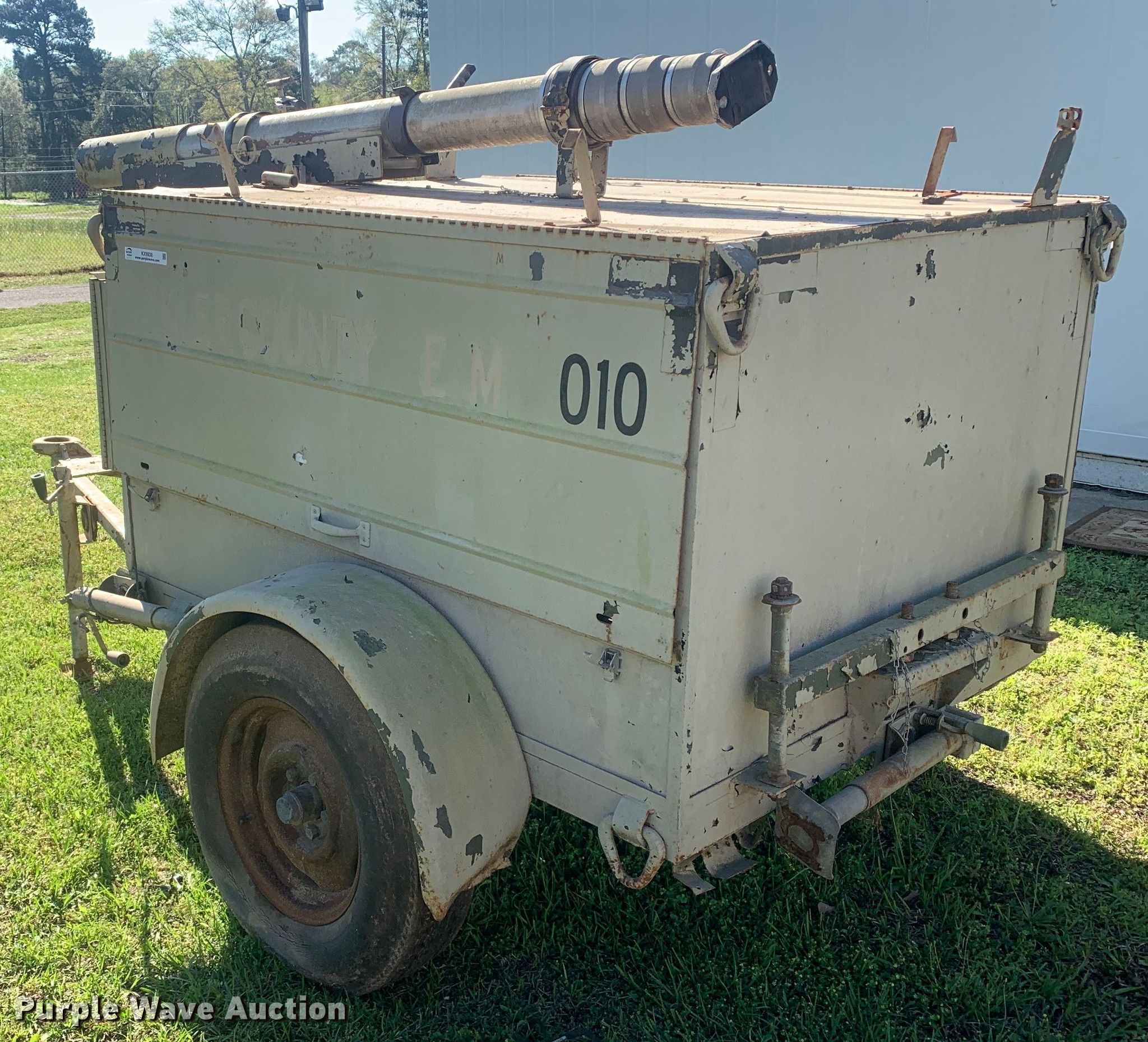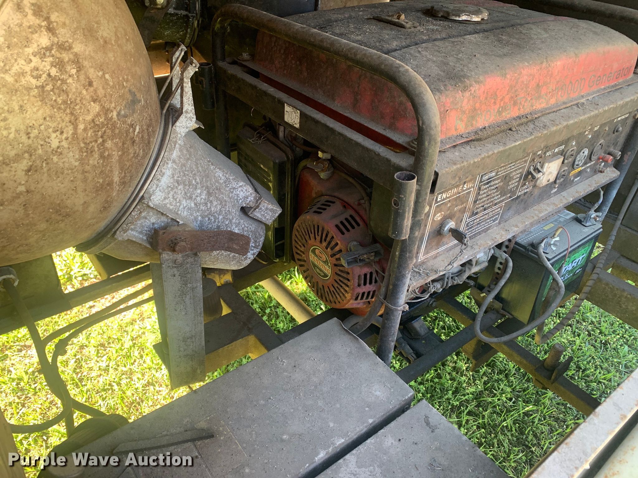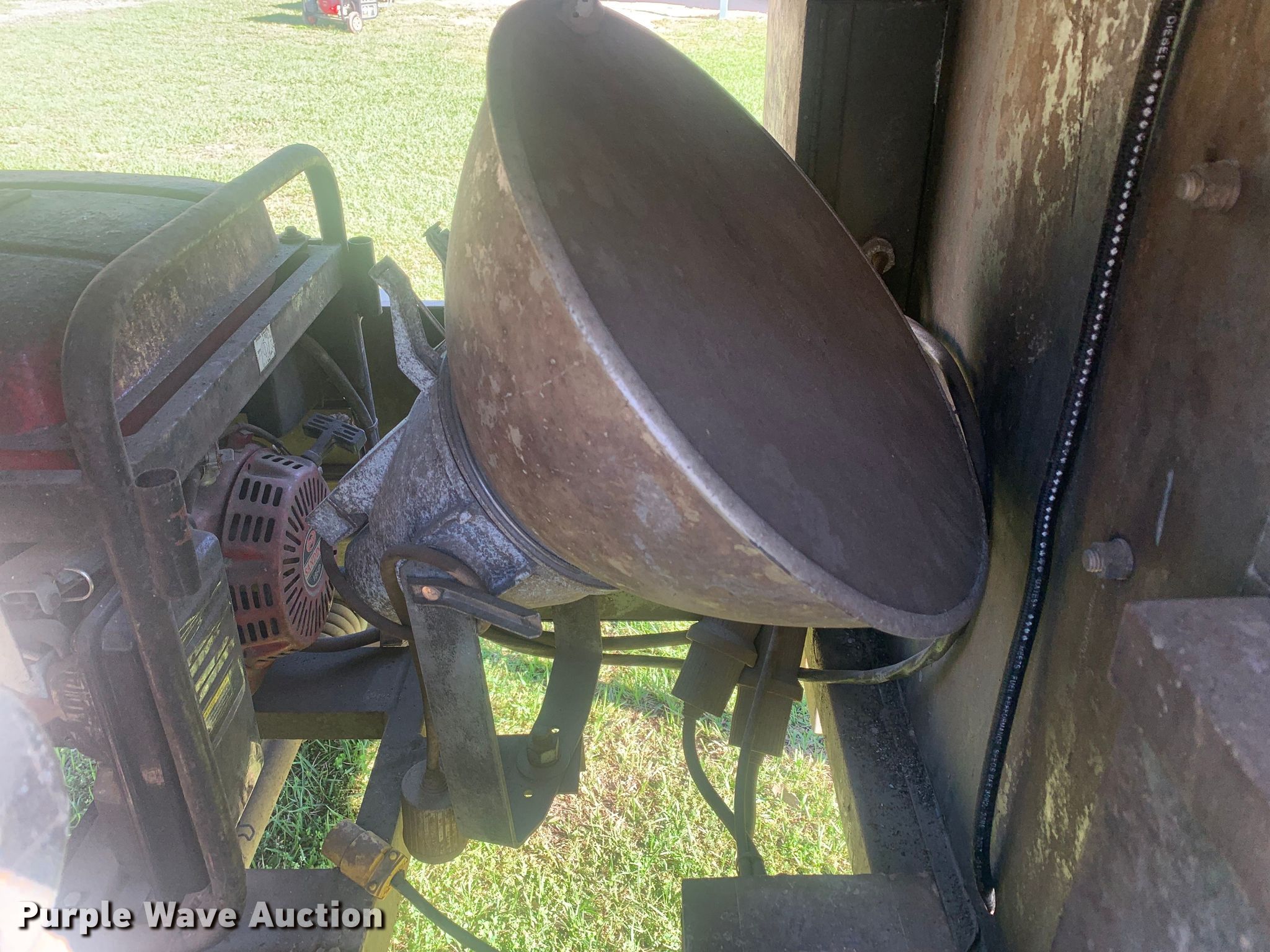 Kenowa 10000 light plant. Engine. Sanding 168F-II, Displacement: 196cc, Cylinders: 1, Fuel type: Gas, HP: 18. Features Generator Kenowa 10000, Watts: 10,000, Phase: Single, Backup start, Electric start, Fuel tank, Light plant Bulbs: 2, Hoist: Manual, Stabilizers. Trailer 10' L x 72" W, Hitch: Pintle, Suspension: Spring, Axles: Single, Tire size: P215/75R15. Notes Dead battery, Non-operational unit. Transfer of ownership documentation will be a bill of sale. Tyler County, TX. 201 Veterans Way. Woodville, TX 75979