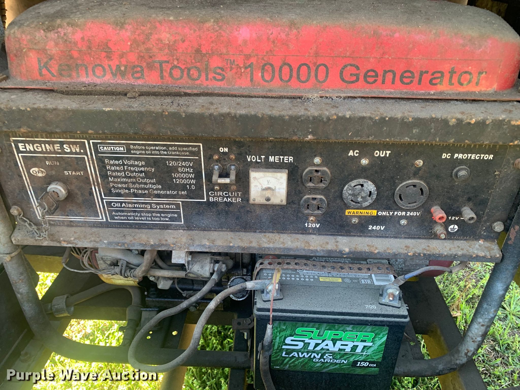 Purple Wave is selling a used Light Plant in Texas. This item is a Kenowa 10000 light plant with the following: Sanding 168F-II, Displacement: 196cc, Cylinders: 1, Fuel type: Gas, HP: 18