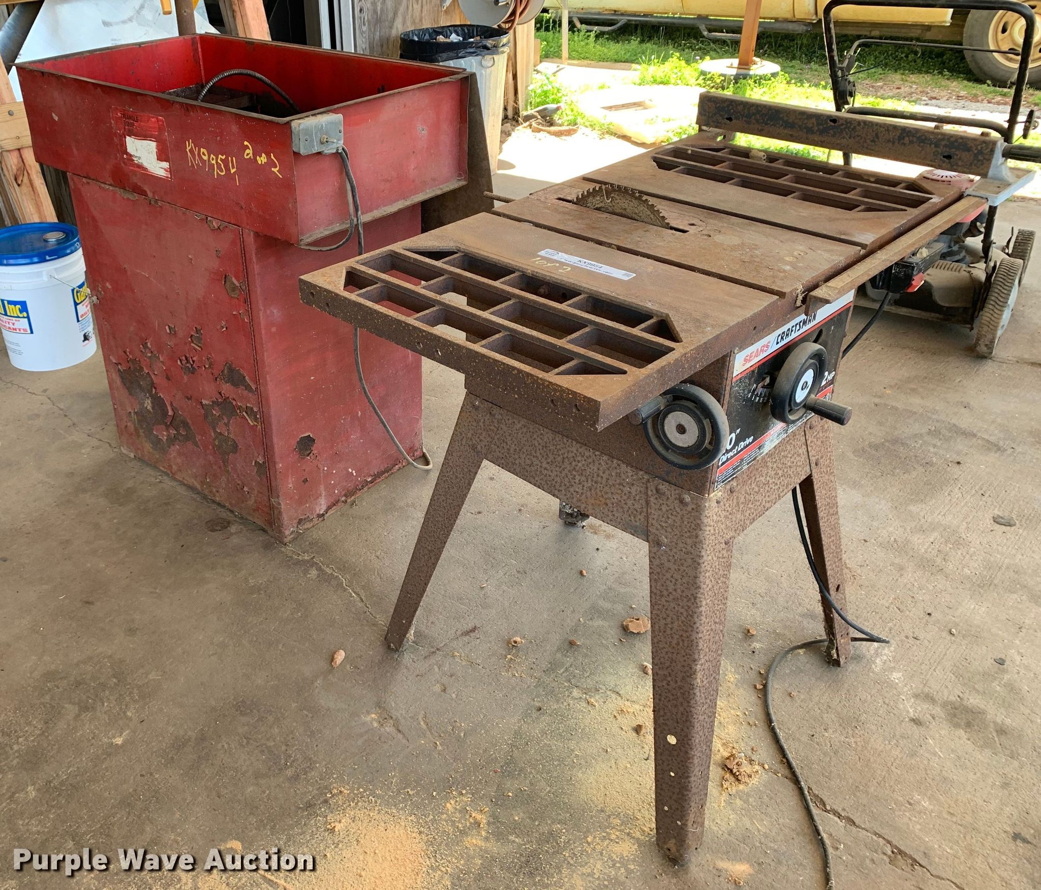 Purple Wave is selling a used Tools in Texas. This item is a Tools with the following: Craftsman table saw, Blade diameter: 10", Triangle Equipments parts washer, Non-operational