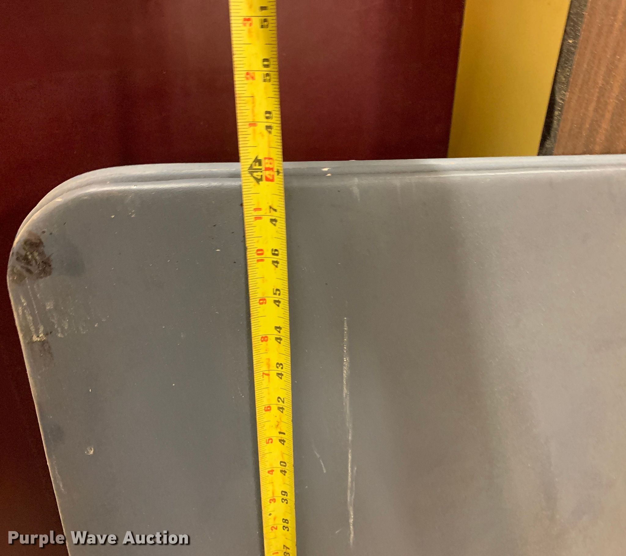 Purple Wave is selling a used Furniture in Texas. This item is a (9) folding tables with the following: (1) 4' L, (3) 5' L, (5) 6' L