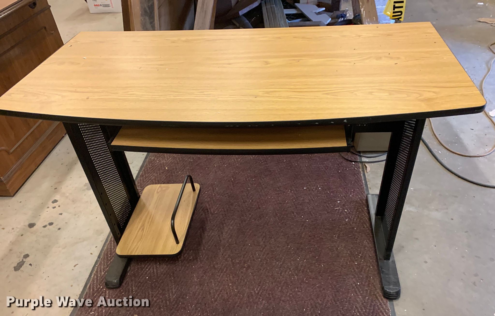 Purple Wave is selling a used Furniture in Texas. This item is a Office furniture with the following: (5) desks, (2) tables, Metal cabinet