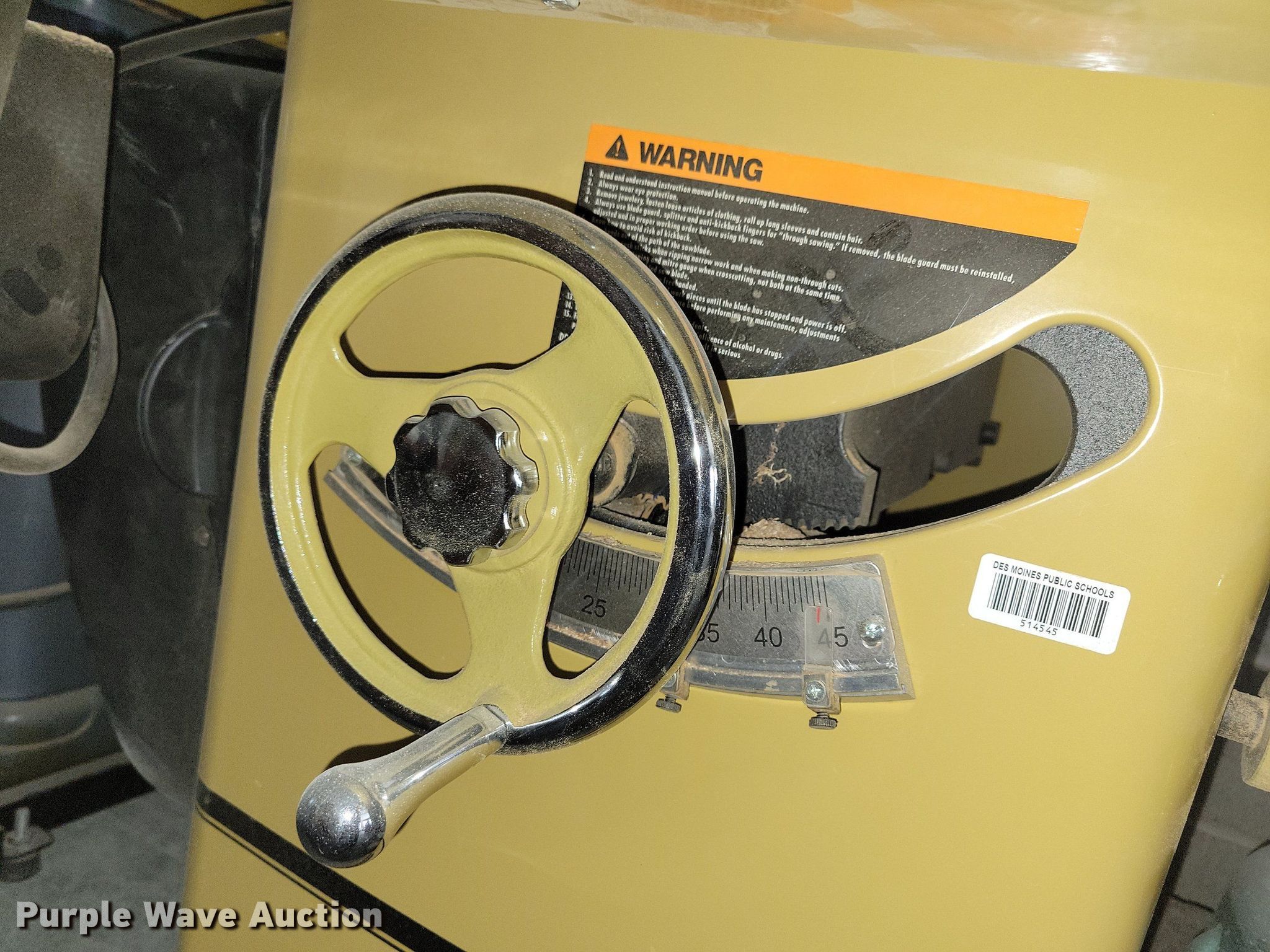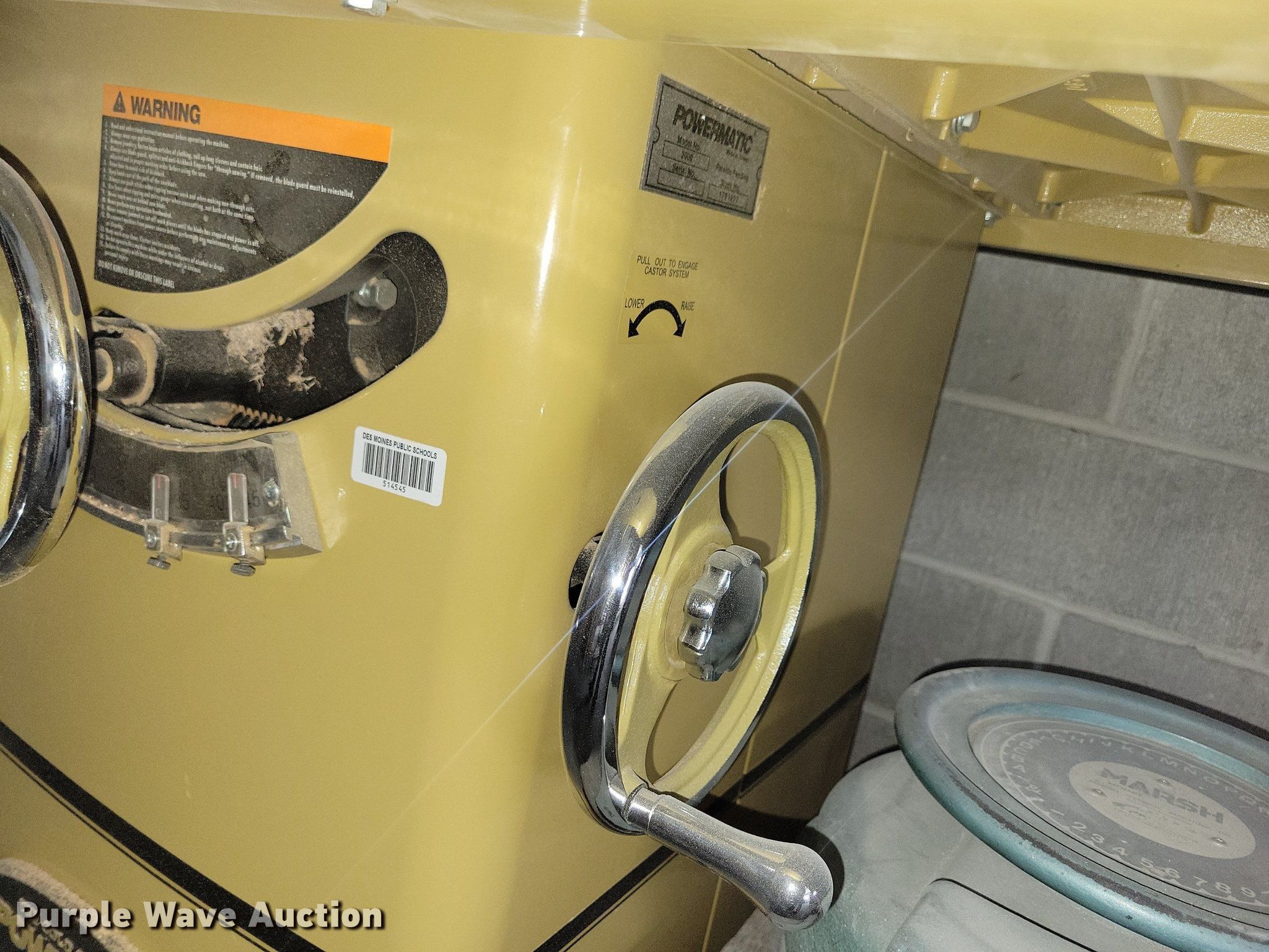 Powermatic 2000 table saw. Serial: 70720000249. Des Moines Public Schools. 1800 Grand Ave. Des Moines, IA 50309
