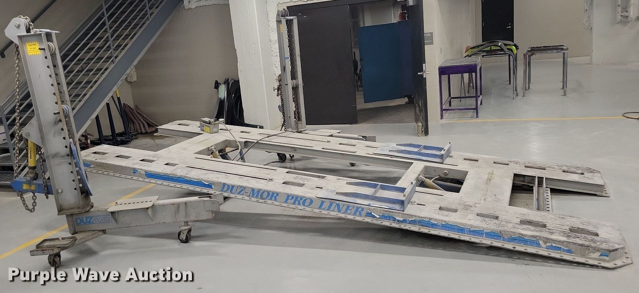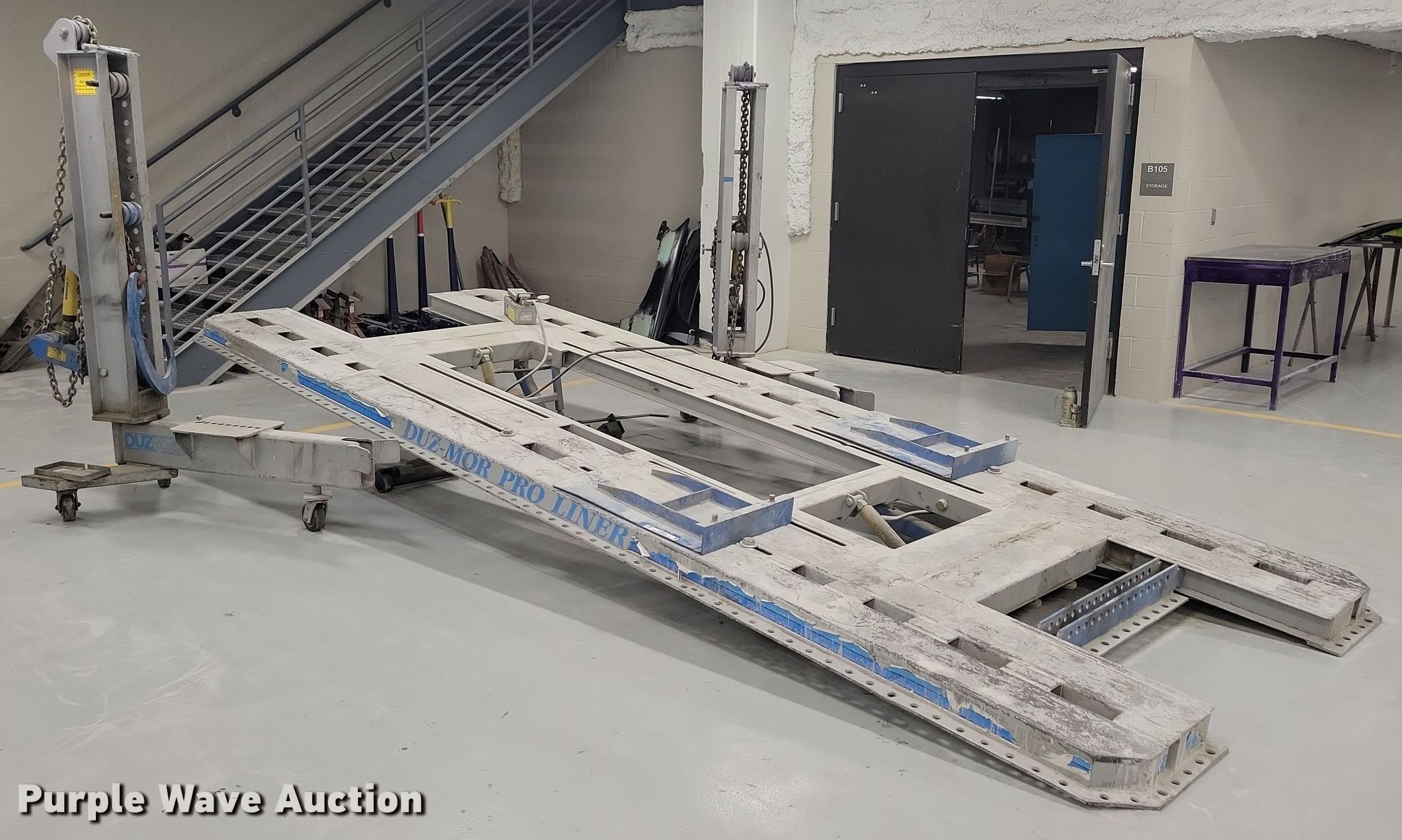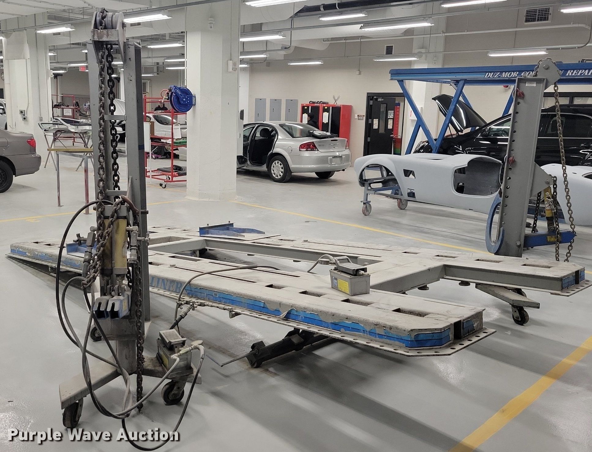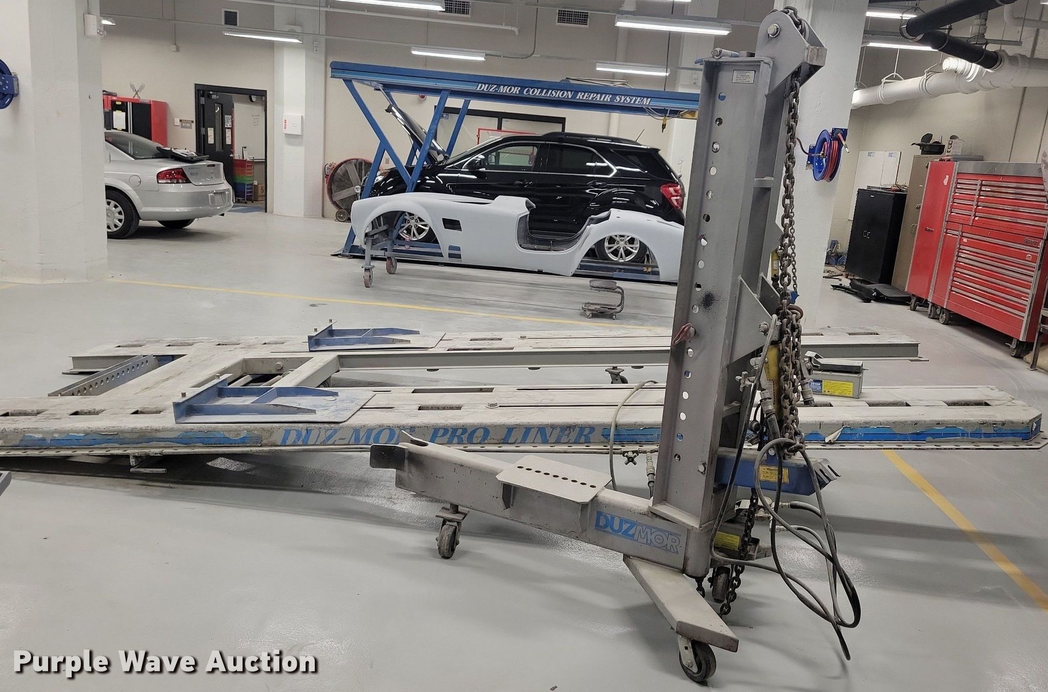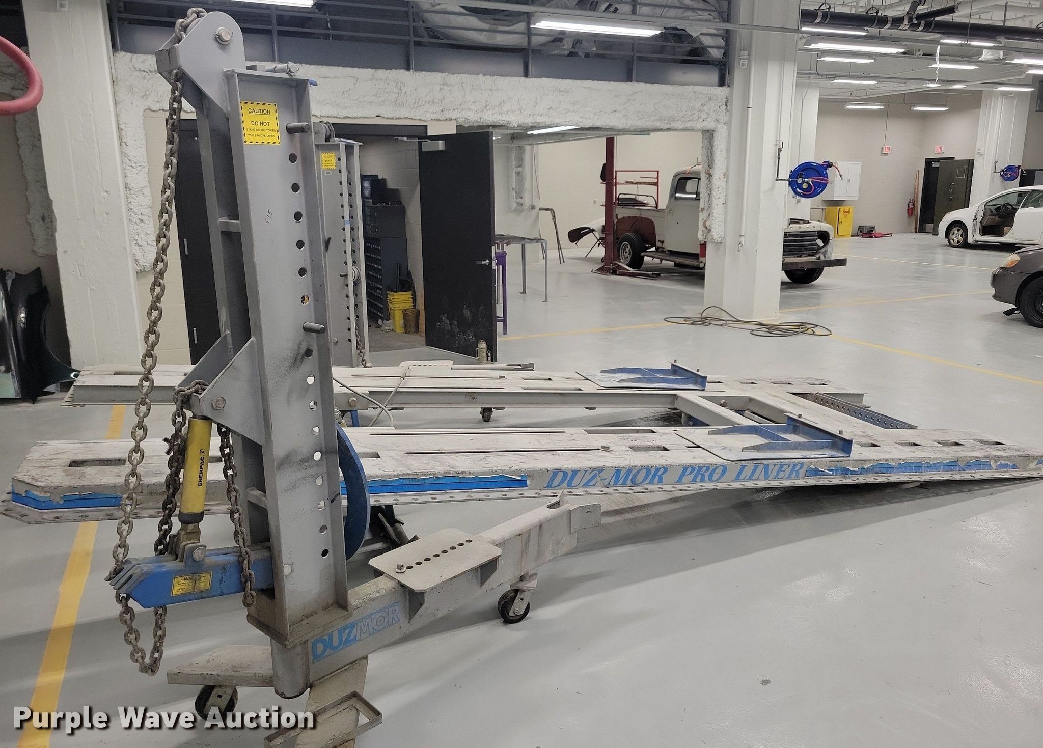 DUZ-MOR Pro Liner frame straightener. Hydraulic lift. Purchaser is responsible for all aspects of disassembly and removal. Limited load-out space available. Des Moines Public Schools. 1800 Grand Ave. Des Moines, IA 50309