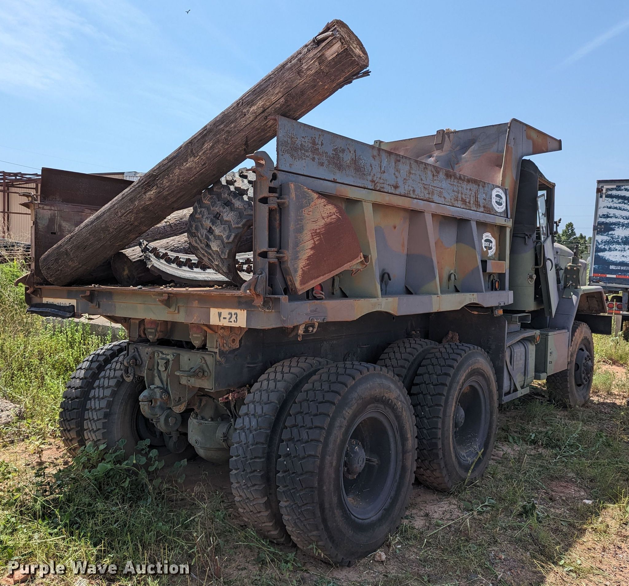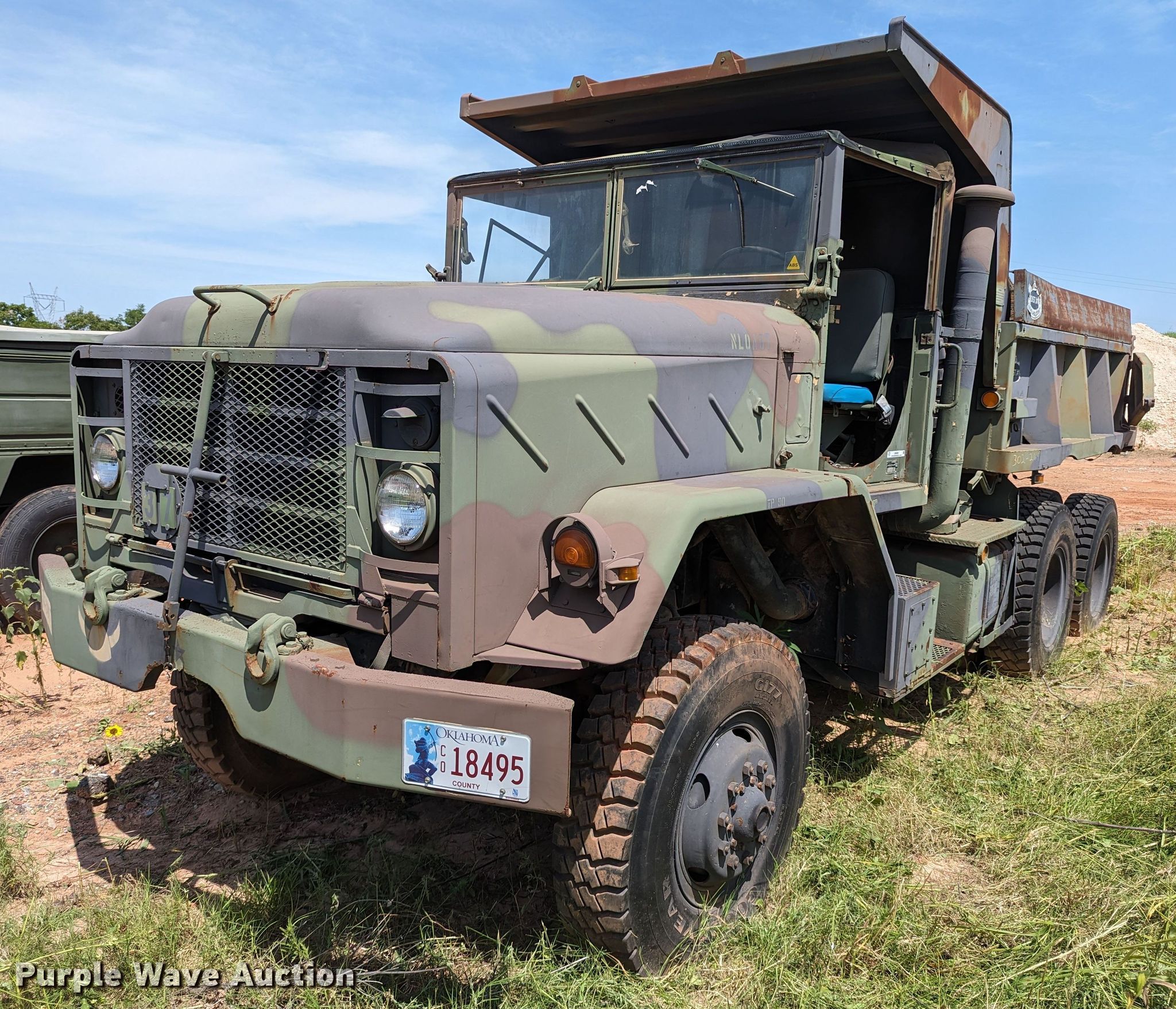 Purple Wave is selling a used Construction Dump Truck in Oklahoma. This item is a 1985 AM General M929 dump truck with the following: Miles: 3,695 on odometer, Hours: 165 on meter, VIN: NL0A6TC52900139, Unit #: D302-264