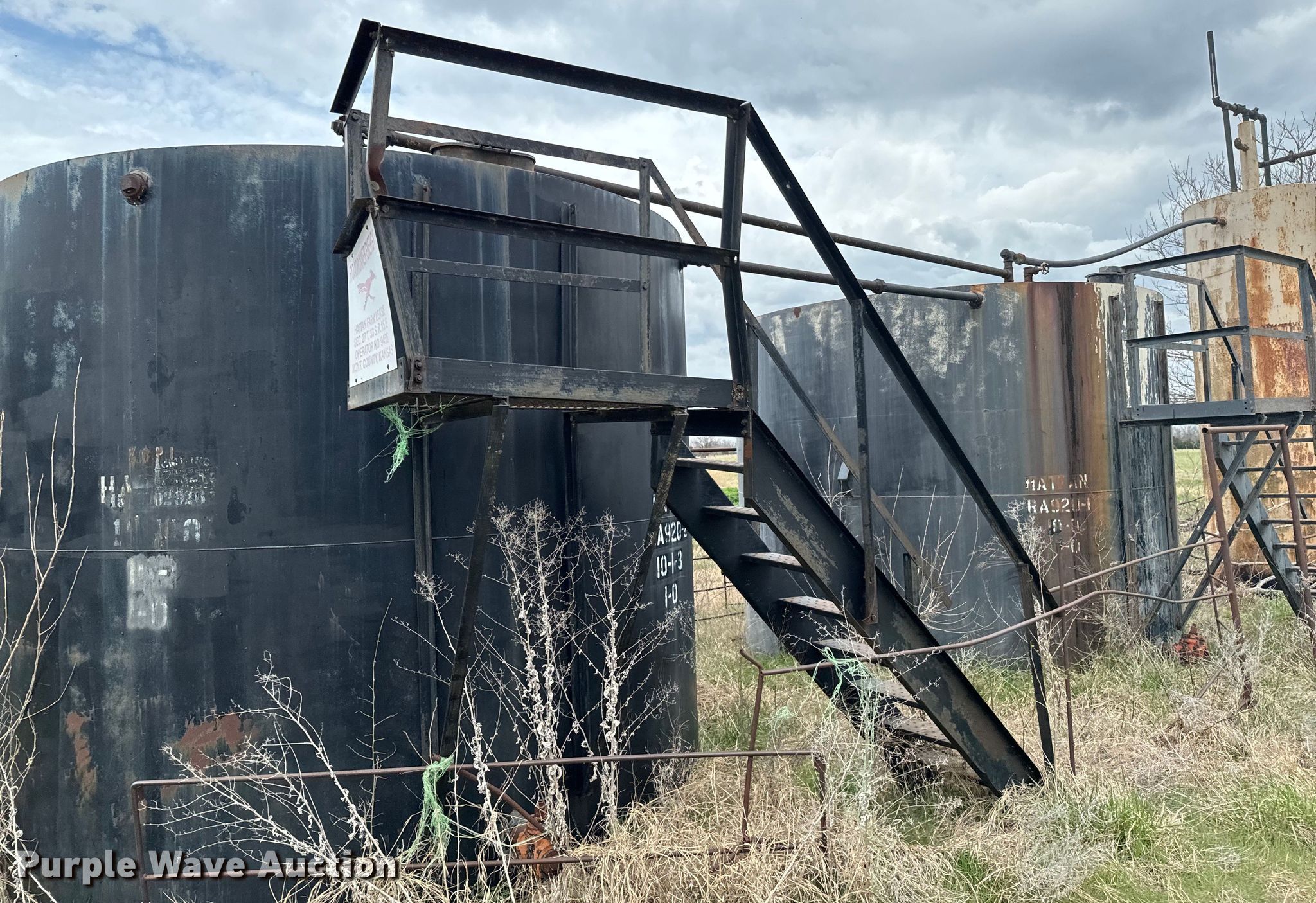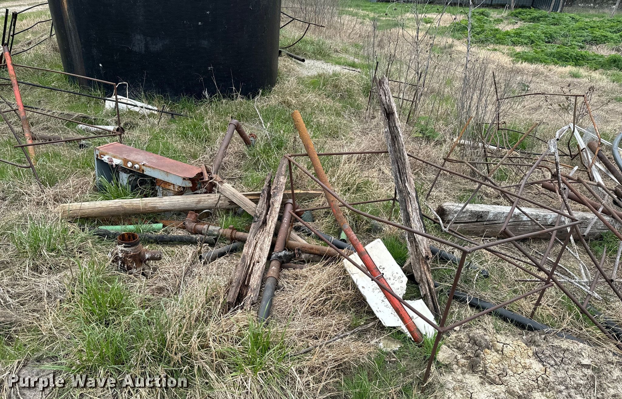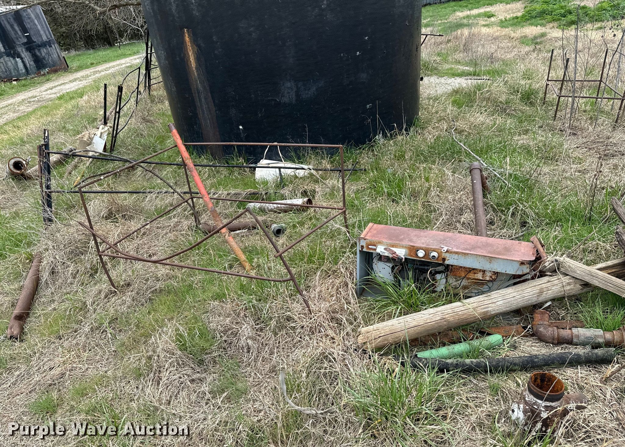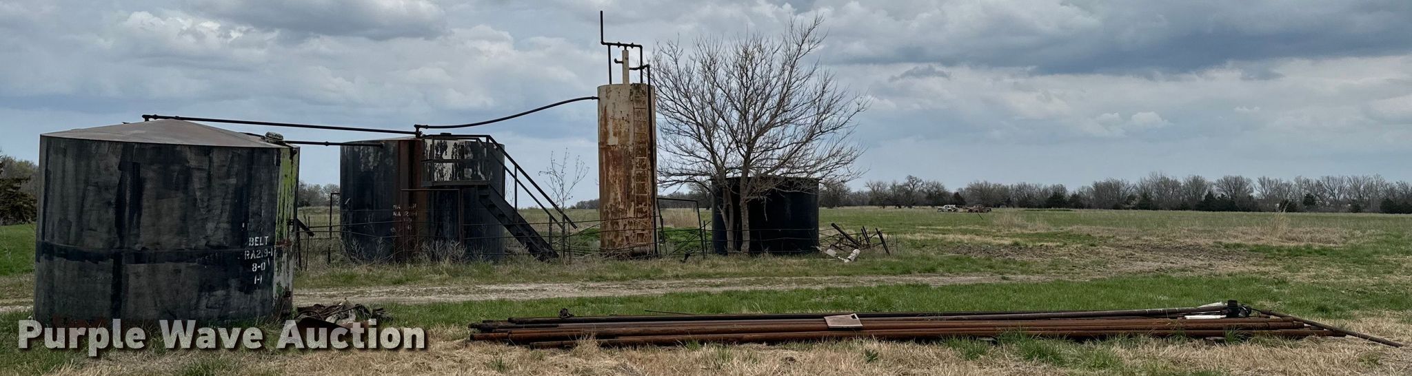 Purple Wave is selling a used Oilfield Equip. in Kansas. This item is a Oilfield equipment with the following: Unit #: 2023FP3-04 - Hattan, (3) steel tanks, Capacity: Approx. 200 BBL, Gun barrel tank, Capacity: Approx. 100 BBL, Fiberglass tank, Capacity: Approx. 100 BBL, (6) pipe panels, Length: approx. 15' L, 2" plumbing, (2) 4 1/2" well heads, (2) casings, Approx. 3' L, (2) 4.5" casings, Approx. 18" L, Approx. 19 joints of 2 3/8" tubing, Length: Approx. 32', Approx. 26 joints of 3/4" rods, Length: Approx. 25', Approx. 20 joints of 2 7/8" tubing, Length: Approx. 31'