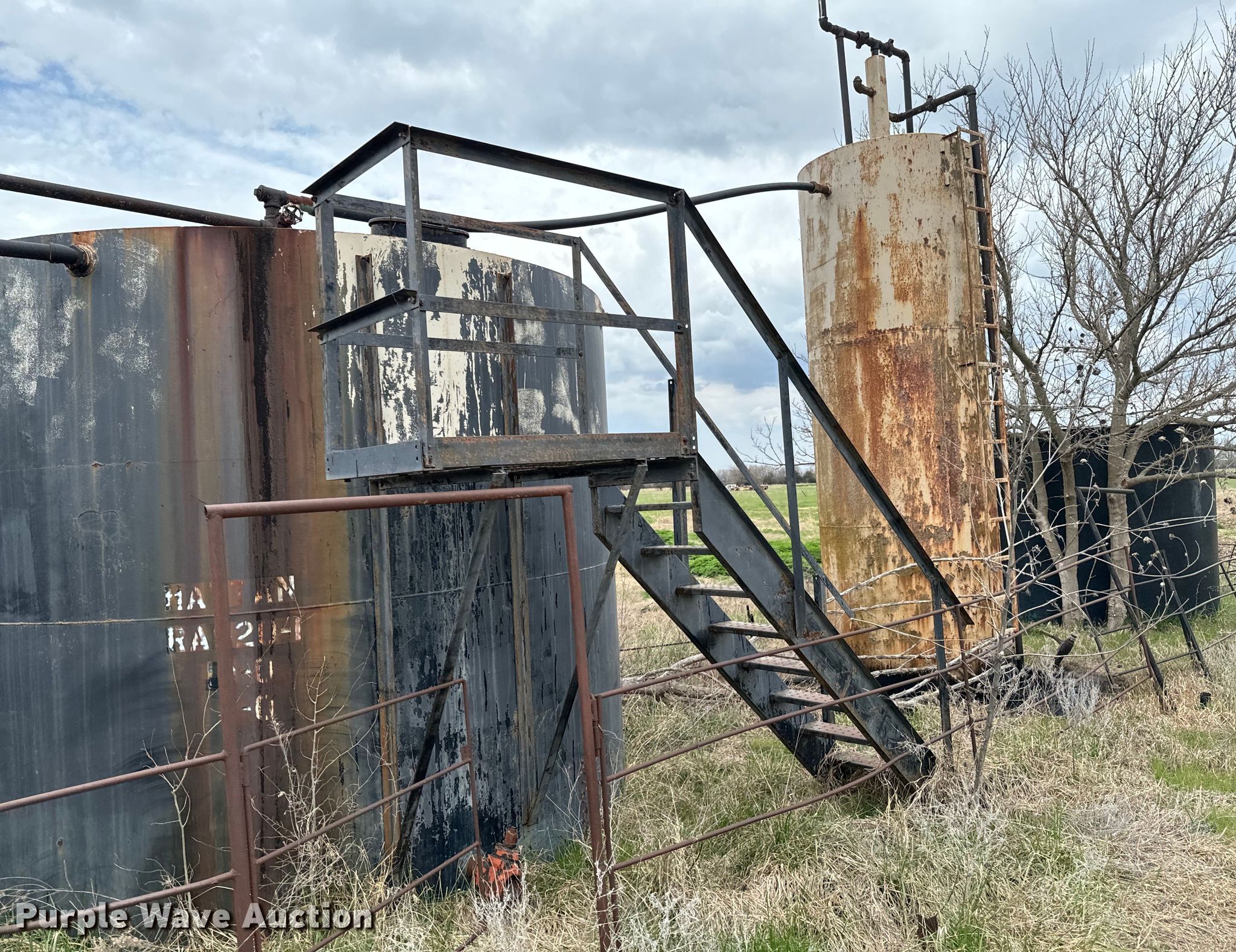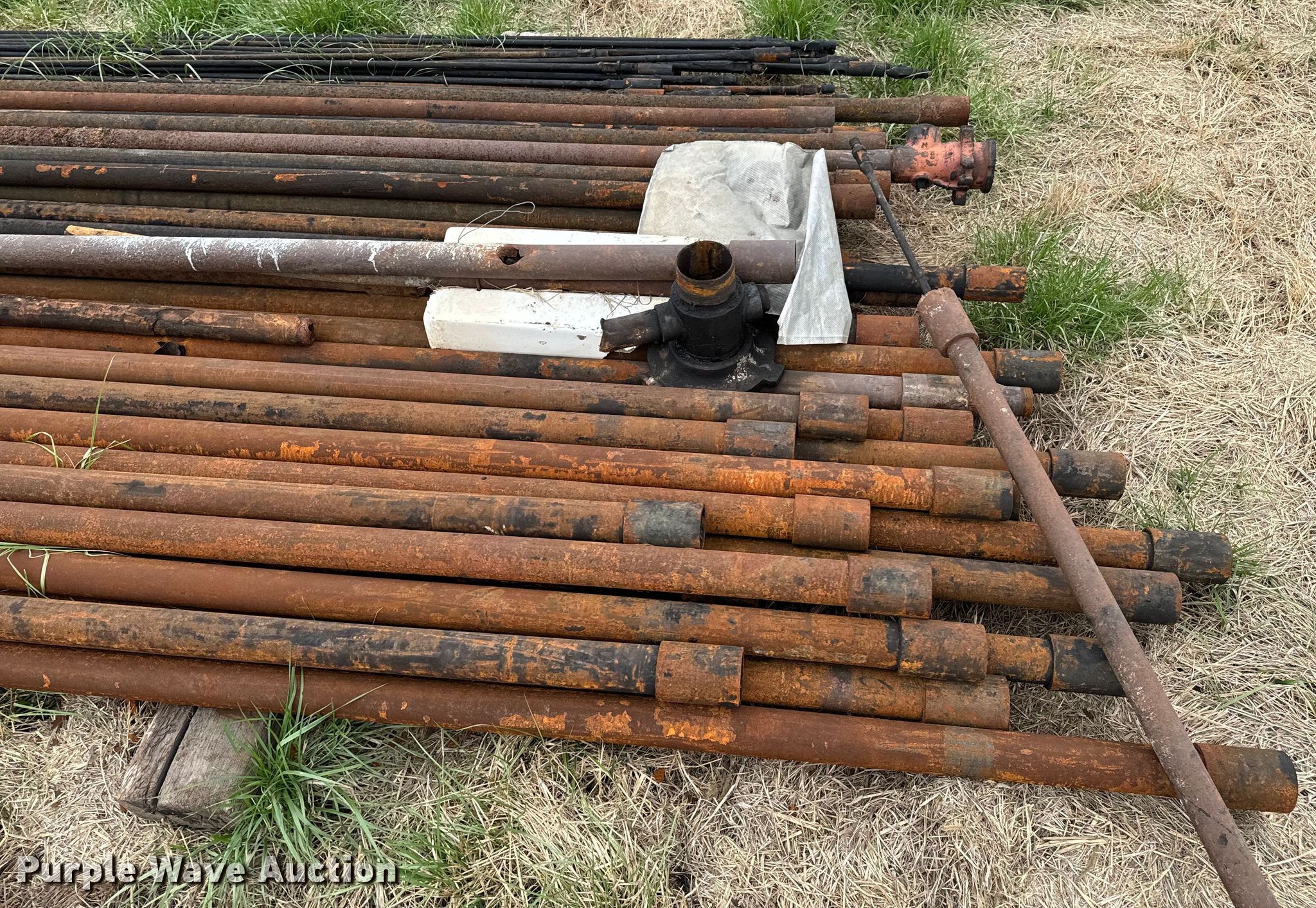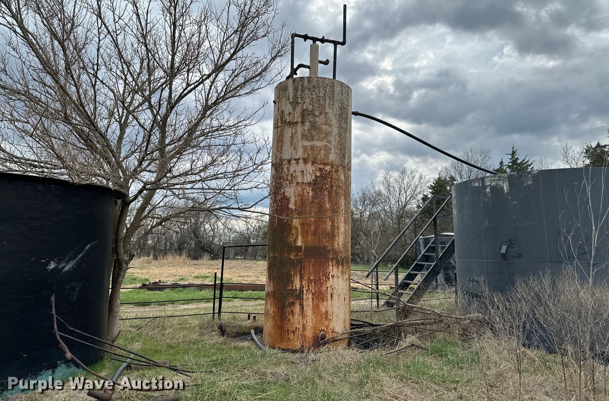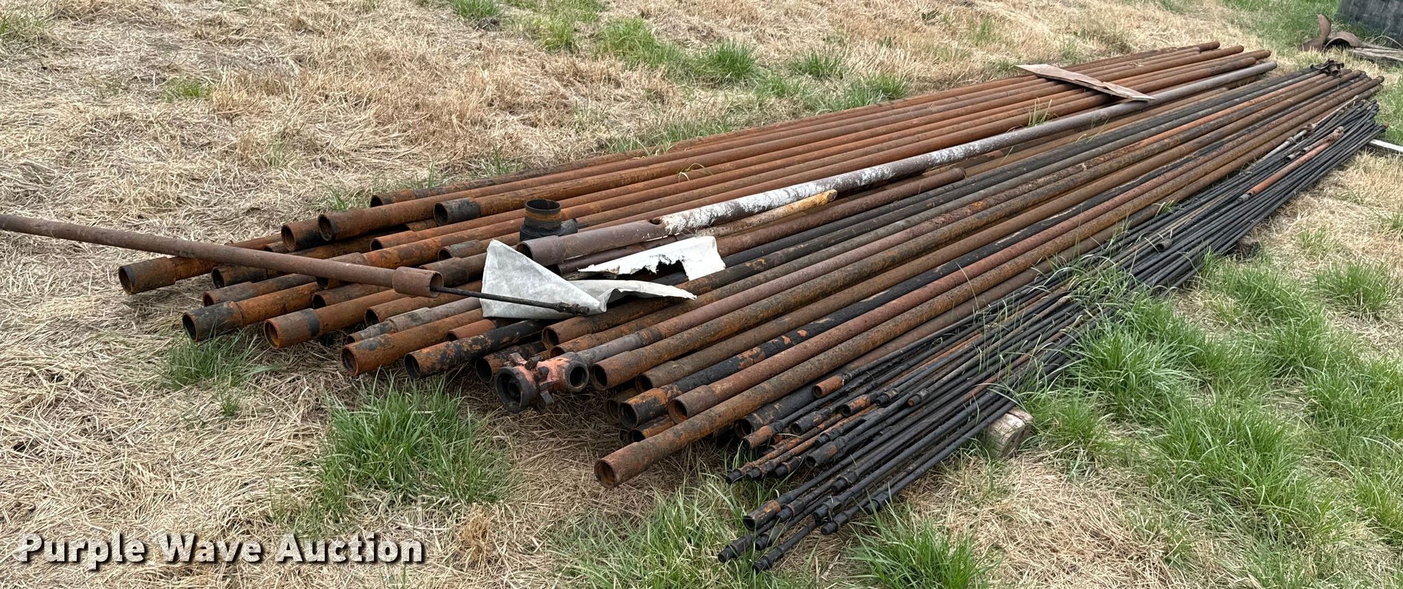 Purple Wave is selling a used Oilfield Equip. in Kansas. This item is a Oilfield equipment with the following: Unit #: 2023FP3-04 - Hattan, (3) steel tanks, Capacity: Approx. 200 BBL, Gun barrel tank, Capacity: Approx. 100 BBL, Fiberglass tank, Capacity: Approx. 100 BBL, (6) pipe panels, Length: approx. 15' L, 2" plumbing, (2) 4 1/2" well heads, (2) casings, Approx. 3' L, (2) 4.5" casings, Approx. 18" L, Approx. 19 joints of 2 3/8" tubing, Length: Approx. 32', Approx. 26 joints of 3/4" rods, Length: Approx. 25', Approx. 20 joints of 2 7/8" tubing, Length: Approx. 31'