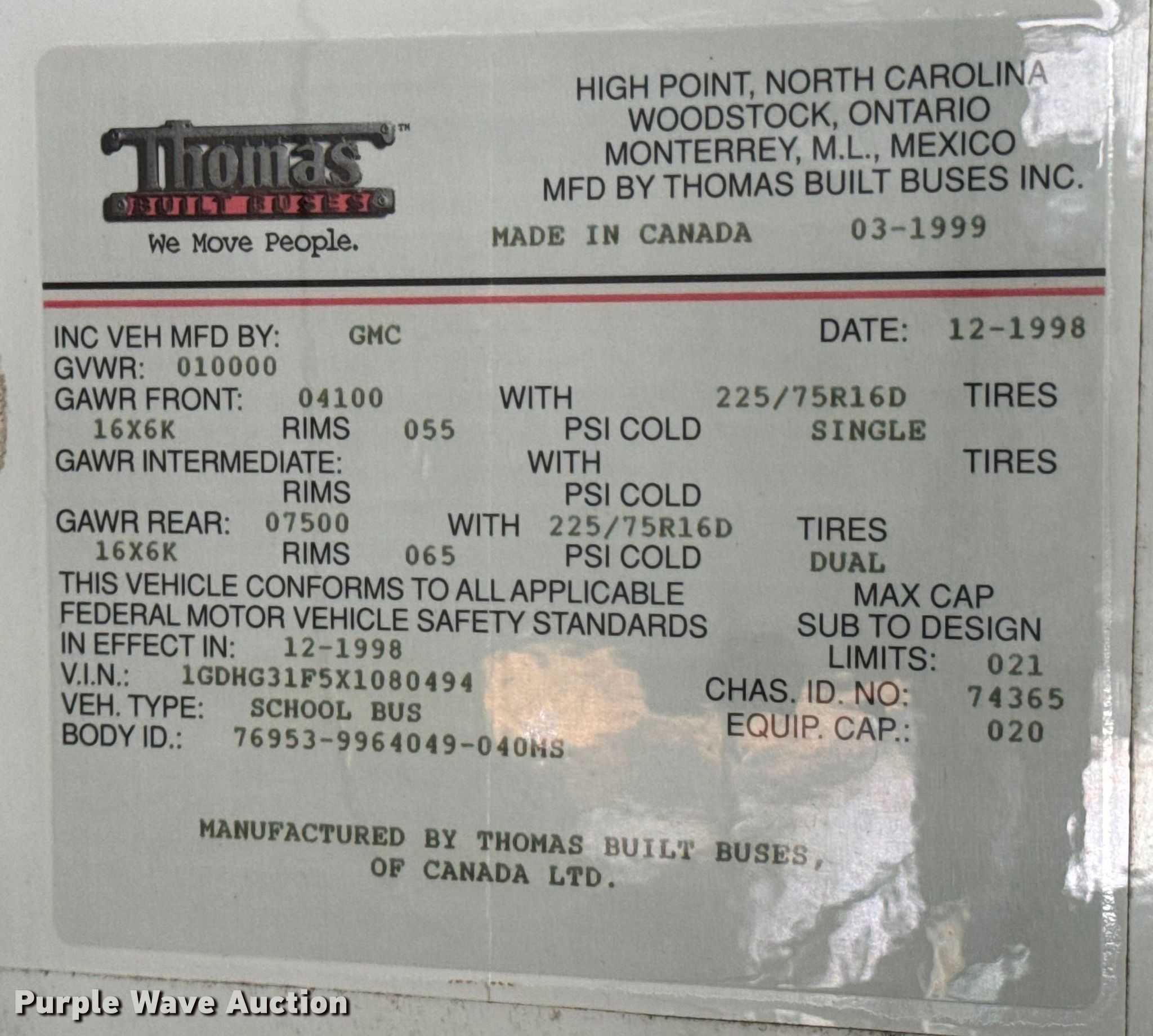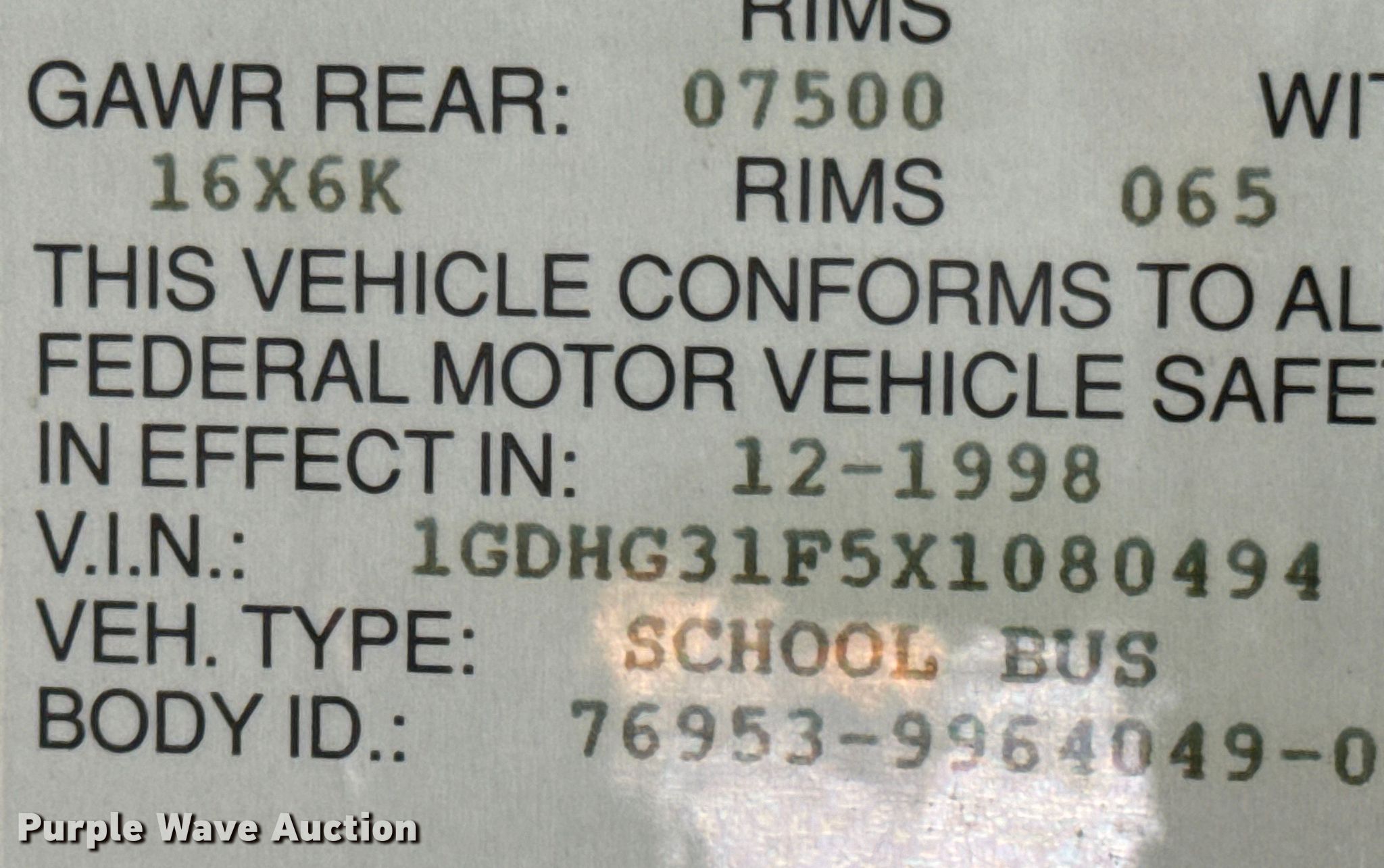 Purple Wave is selling a used Bus in Kansas. This item is a 1999 GMC Savana 3500 school bus with the following: Miles: 197,662 on odometer, VIN: 1GDHG31F5X1080494
