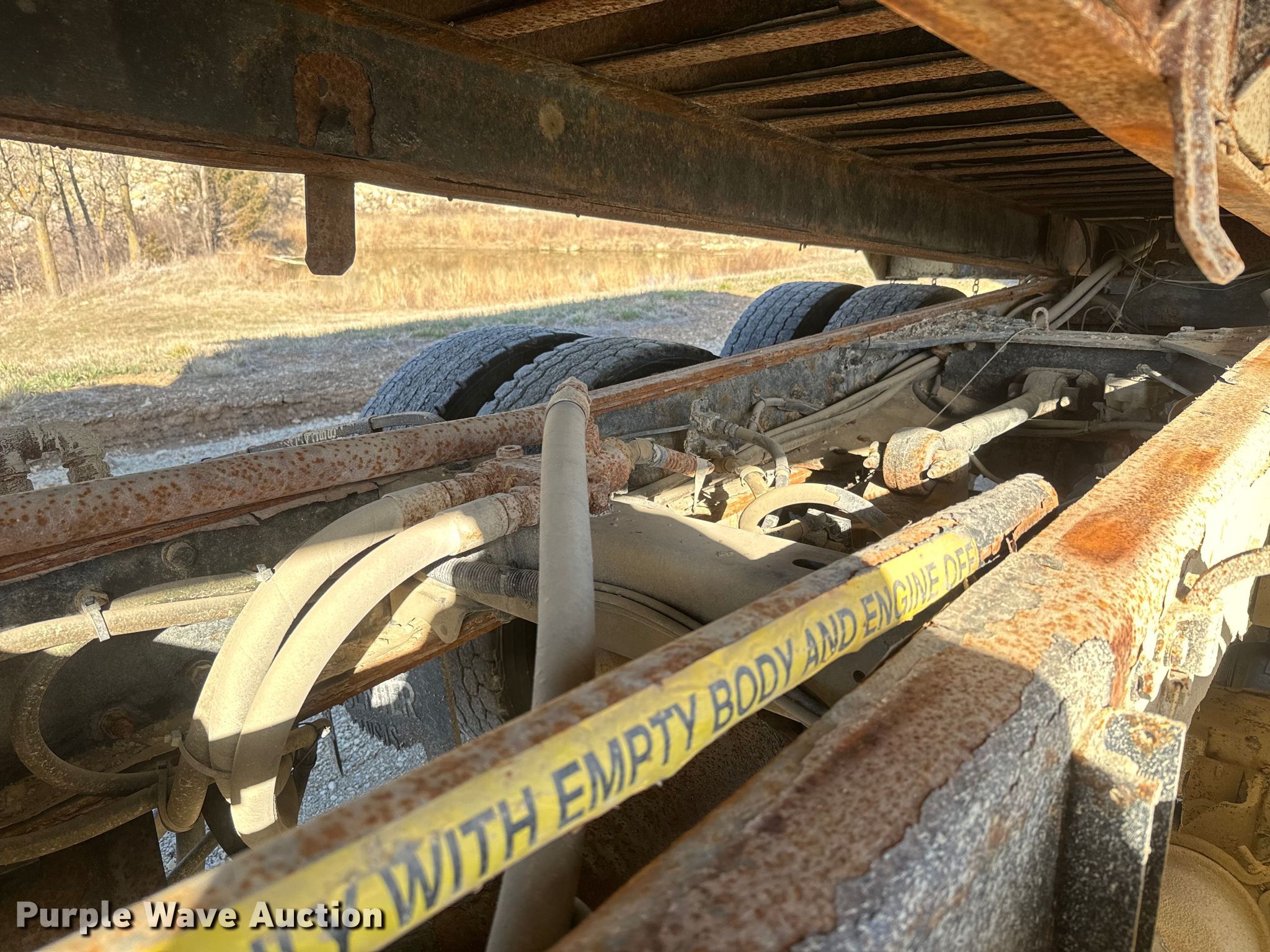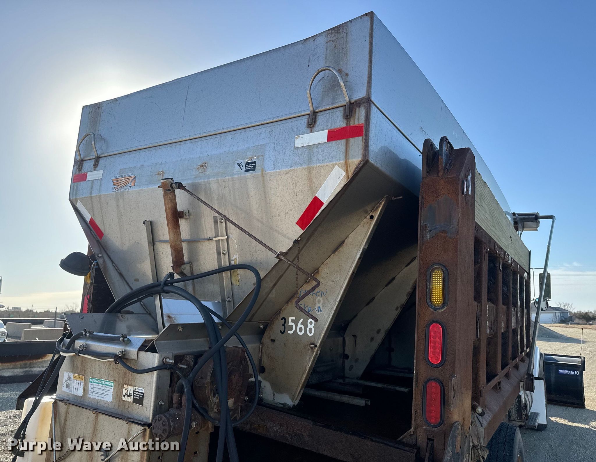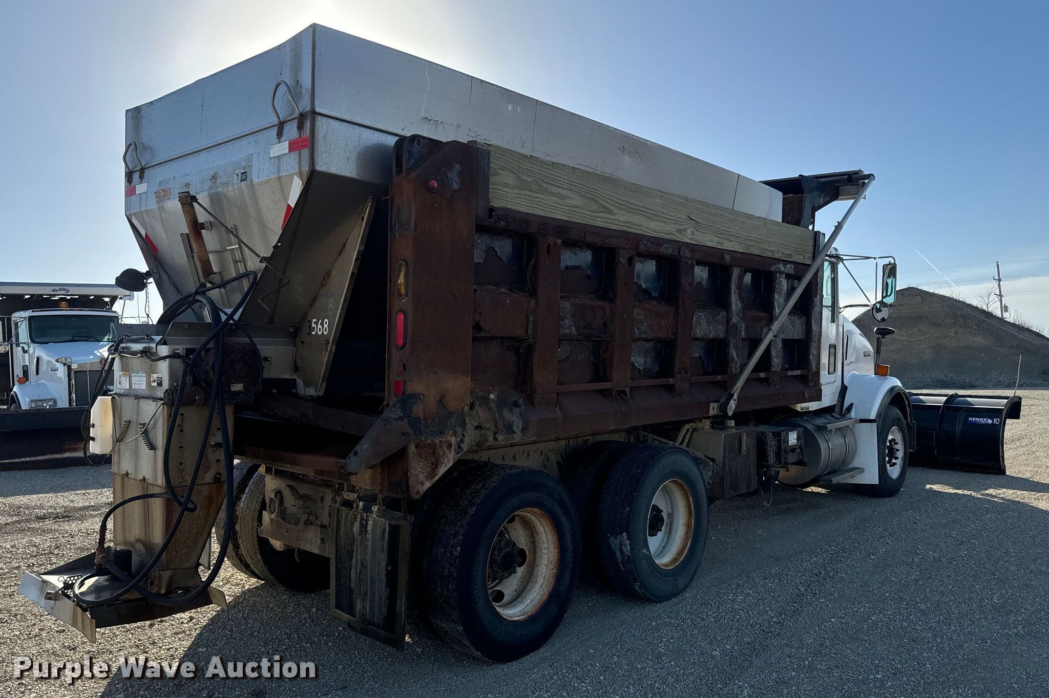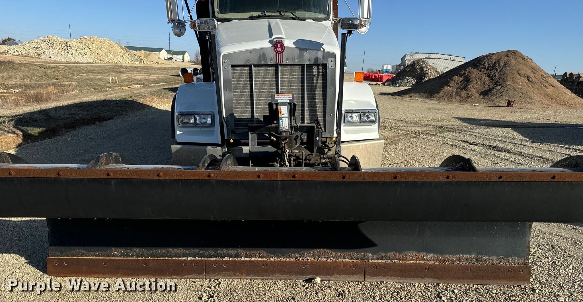 2011 Kenworth T800 dump truck. Miles: 191,780 on odometer, Hours: 7,432 on meter, VIN: 1NKDLU0X4BJ279848. Engine Caterpillar C13 Acert, Displacement: 13.0L, Cylinders: 6, Fuel type: Diesel. Transmission Allison, Automatic. Chassis Double frame, Axles: Tandem, Differential lock: Inter-axle, Suspension: Spring over walking beam, Brakes: Air, PTO, GVWR: 64,000 lbs FAWR: 18,000 lbs, IAWR: 23,000 lbs, RAWR: 23,000 lbs. Interior AC, Heat, Power locks, Cruise control. Features Dump bed 16' L x 96" W, Side height: 40", Side board height: 12", Bed type: Steel, Roll tarp, Ram: Single, End gate: Air operated, Spreader Henderson Stainless steel, Plow Henke, Width: 144". Tires Front: 385/65R22.5, Rear: 11R22.5. Notes Air leak in rear, Broken spreader chain, Bed has rust. Kansas title. Title distribution may be delayed up to 14 days from verification of funds. Riley County, KS. Manhattan, KS 66503