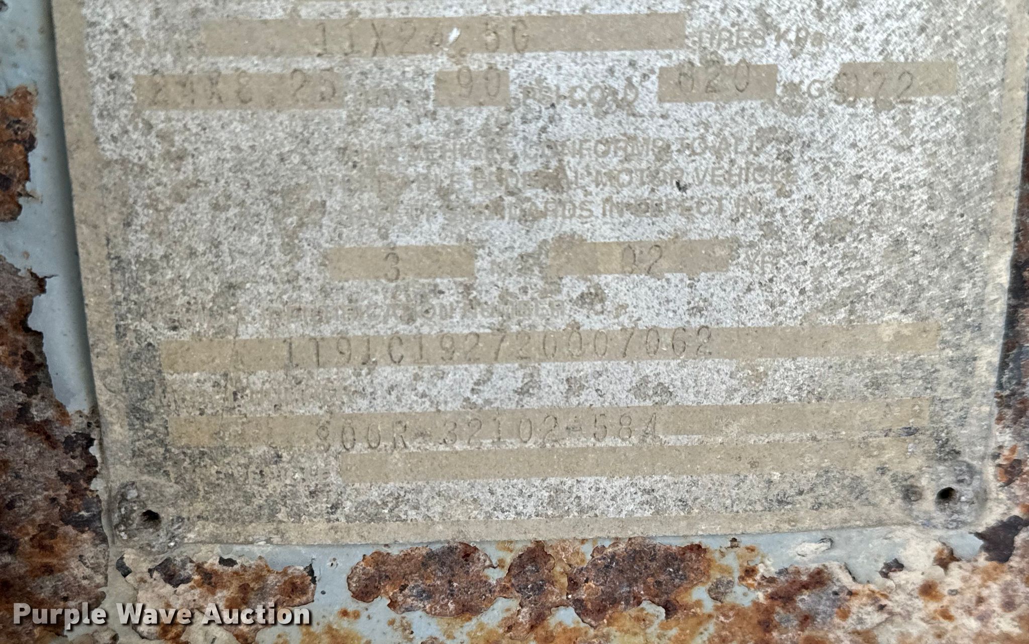 2002 Cornhusker 800R-32102-584 end dump pup trailer. VIN: 1T91C192720007062, Unit #: 729. Dimensions Overall: 34' 6" L x 96" W, Body: 15' L x 96" W, Side height: 52" to 58". Features Body type: Steel, Ram: Single, End gate: Air operated, Roll tarp. Chassis Hitch: Pintle, Landing gear: Single, Suspension: Spring, Brakes: Air, GVWR: 40,000 lbs, GAWR: 20,000 lbs. Tires Steel wheels, Size: 11R24.5. Kansas title. Title distribution may be delayed up to 14 days from verification of funds. Rice County. Lyons, KS 67554