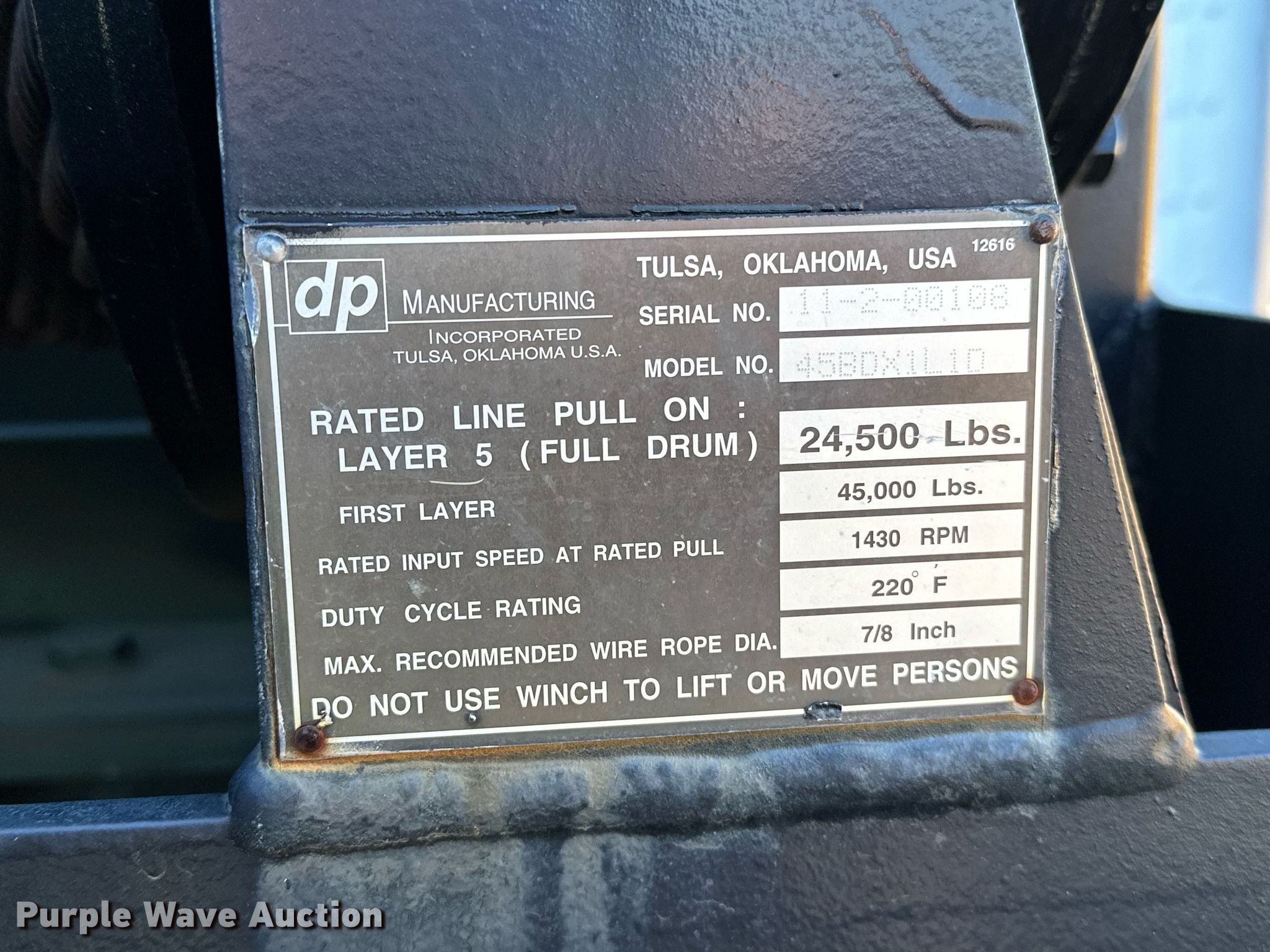 2012 AM General M916 winch truck. Miles: 2,306 on odometer, VIN: 0T58146610810. Engine Cummins, Cylinders: 6, Fuel type: Diesel, HP: 400, Engine brake. Transmission Allison, Automatic. Chassis Axles: Tandem, Differential lock: Inter-axle, Suspension: Spring over walking beam Dump valves, Brakes: Air, PTO, Wet kit, Truck chassis: 14', GVWR: 56,000 lbs. Interior AC, Heat. Features Deck plate: Steel, Winch DP 45BDX1L1D, Capacity: 45,000 lbs, Rolling tailboard, Fuel tank: Single. Tires Size: 11.00R24. Notes Unknown operating condition of AC. Oklahoma title. Title distribution may be delayed up to 30 days from verification of funds. Cleveland County. 6706 Alameda St. Norman, OK 73026