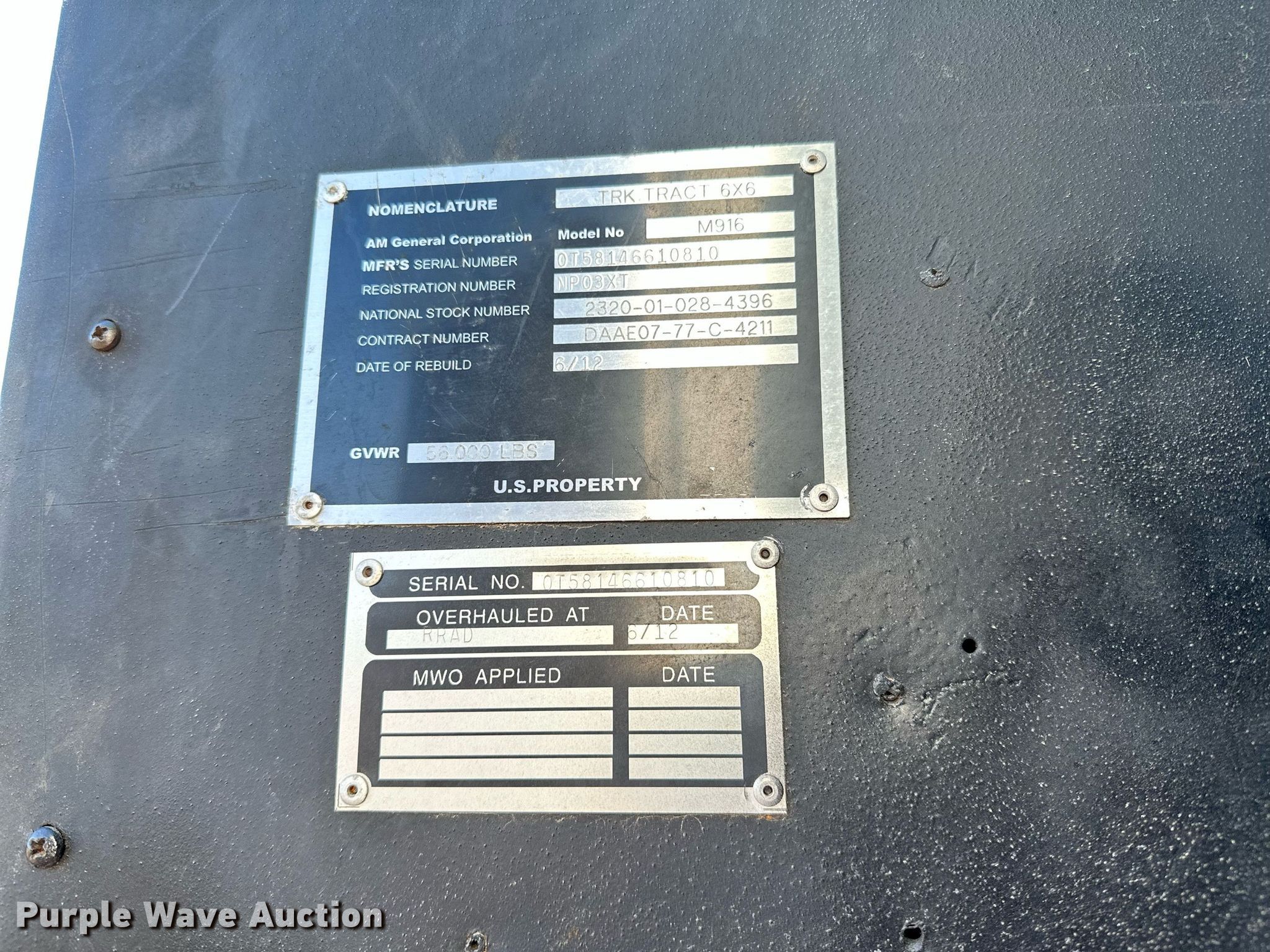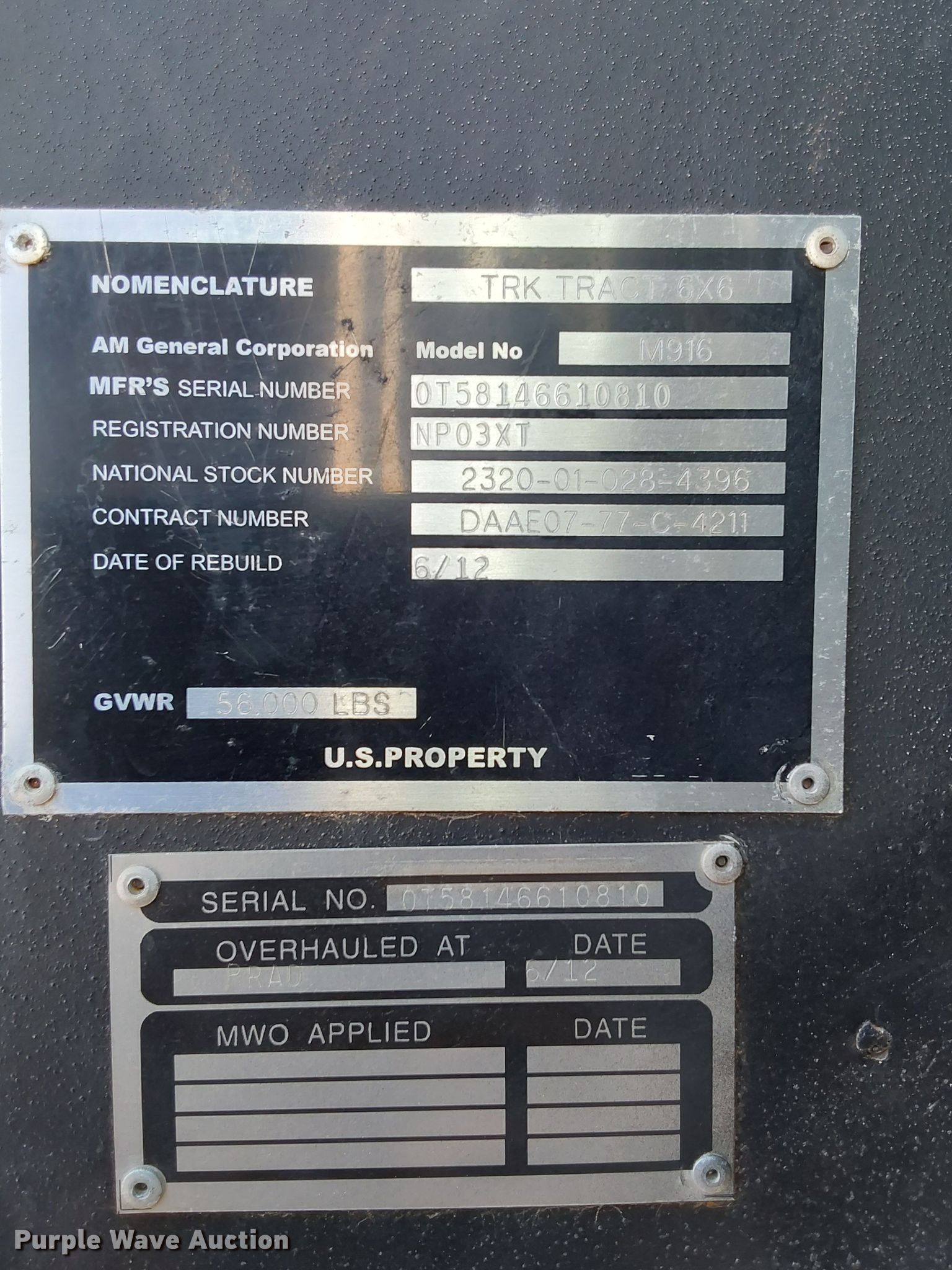 Take a look at this used 2012 AM General M916 winch truck being sold on April 30th, 2024 in the SOLD! April 30 Government Auction made by AM General. Take a look at all of the item information below or take a look at similar auctions for Construction Trucks.
