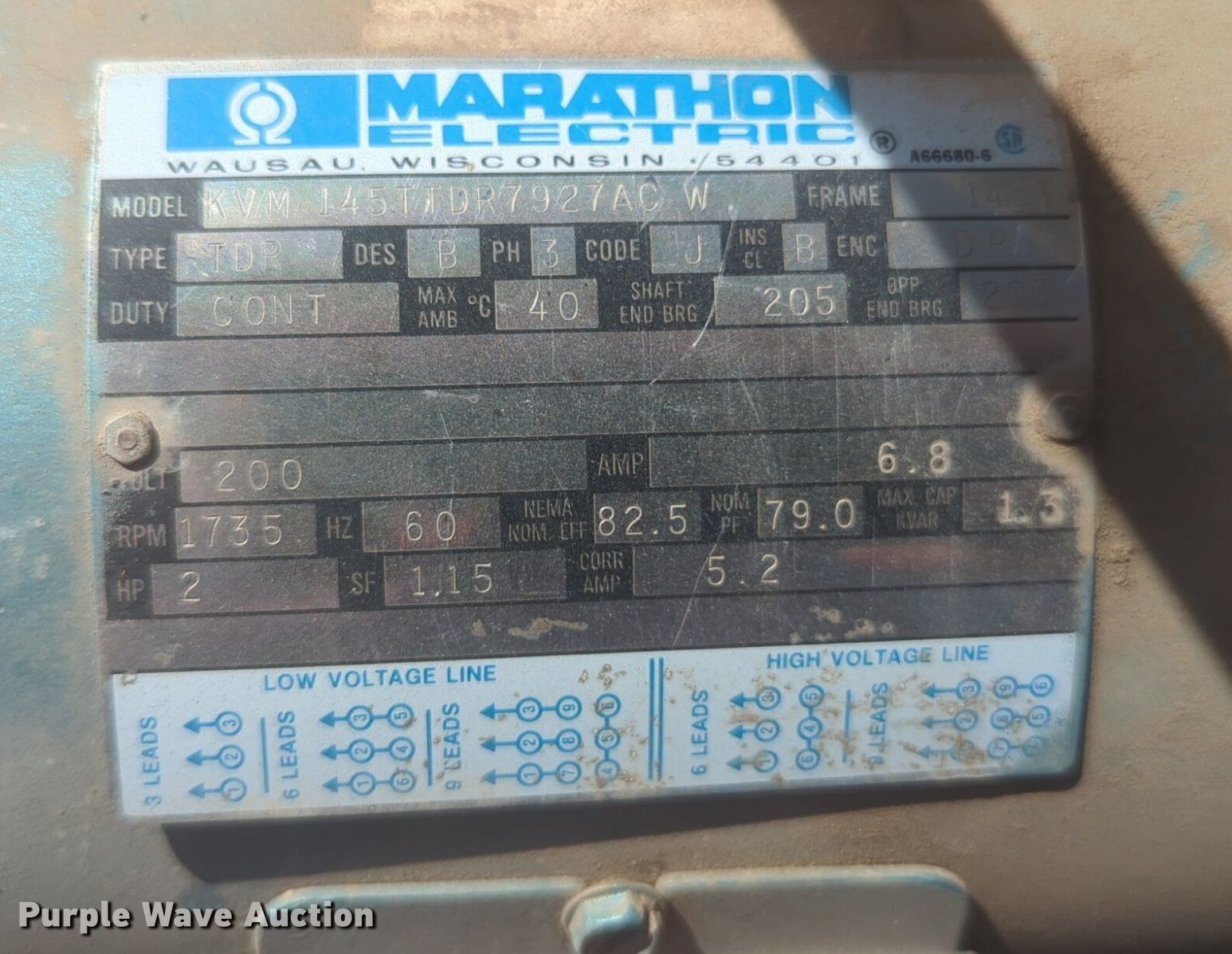 Purple Wave is selling a used Air Compressor in Oklahoma. This item is a Marathon Electric air compressor with the following: Volts: 200, Phase: Three