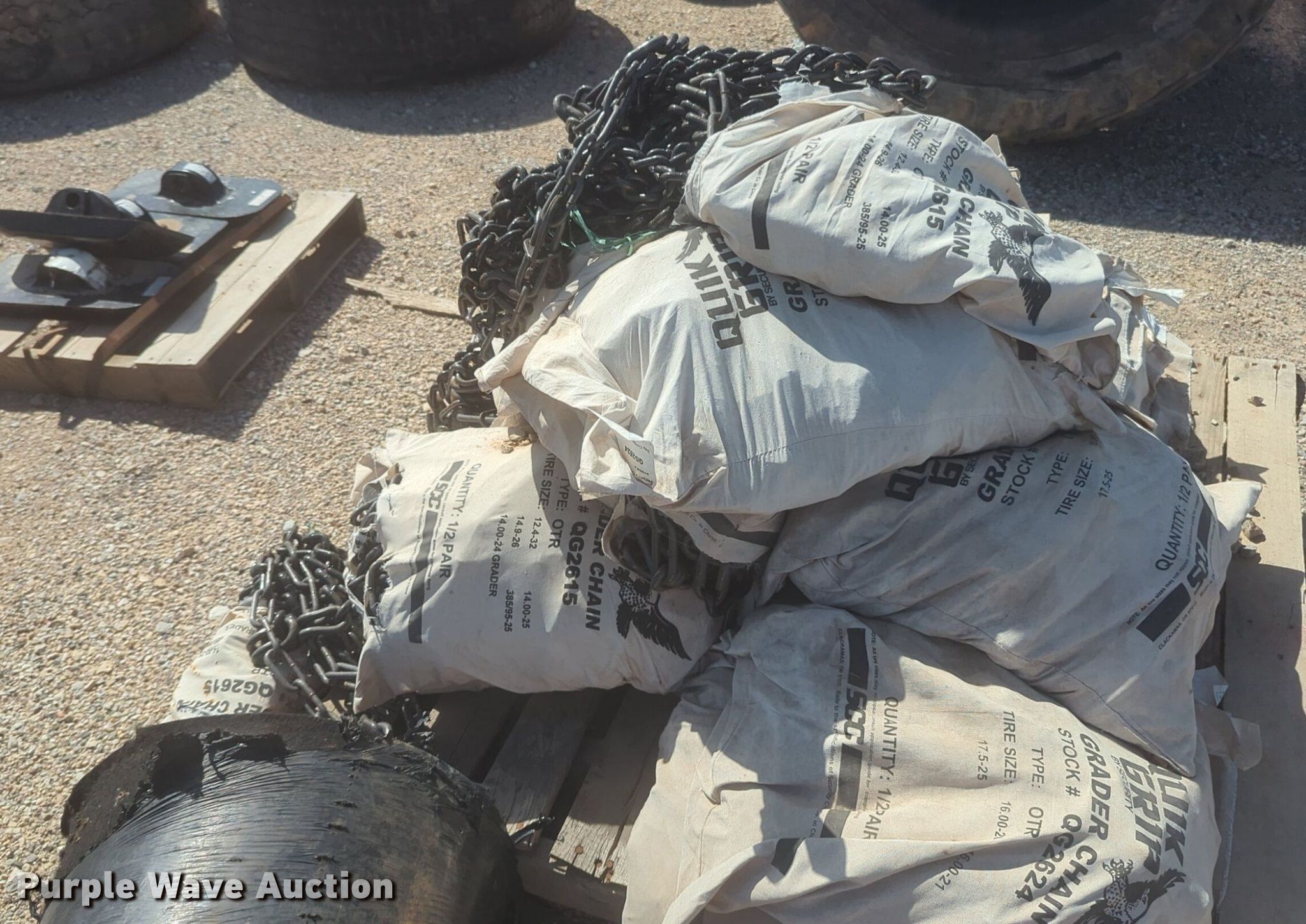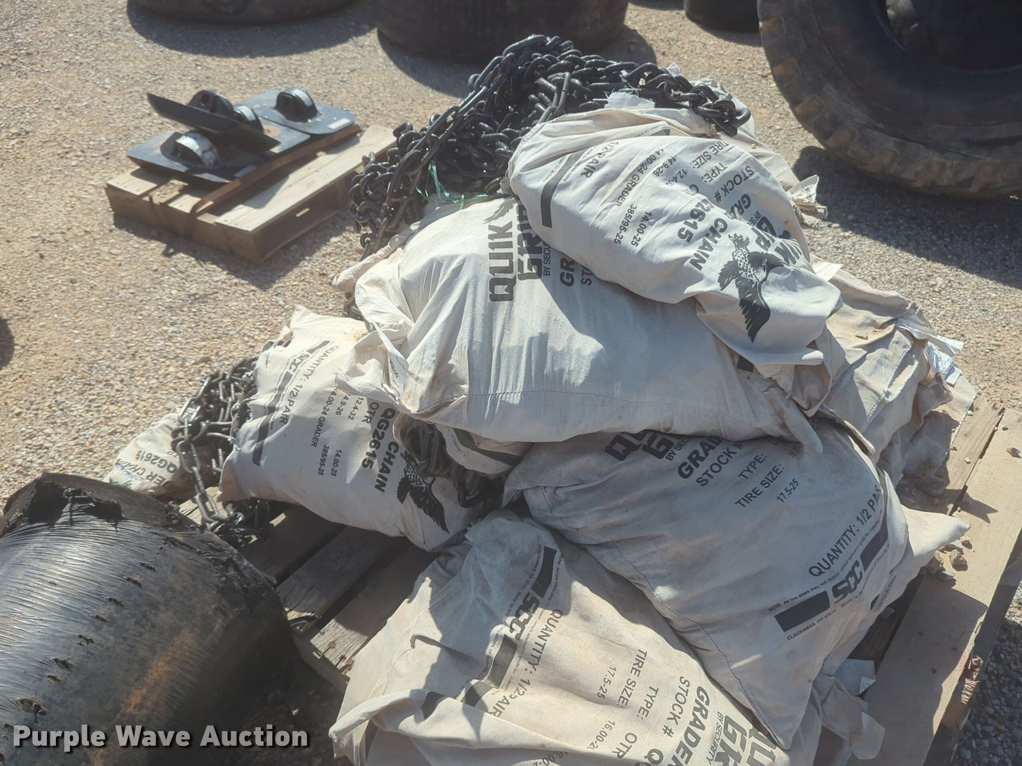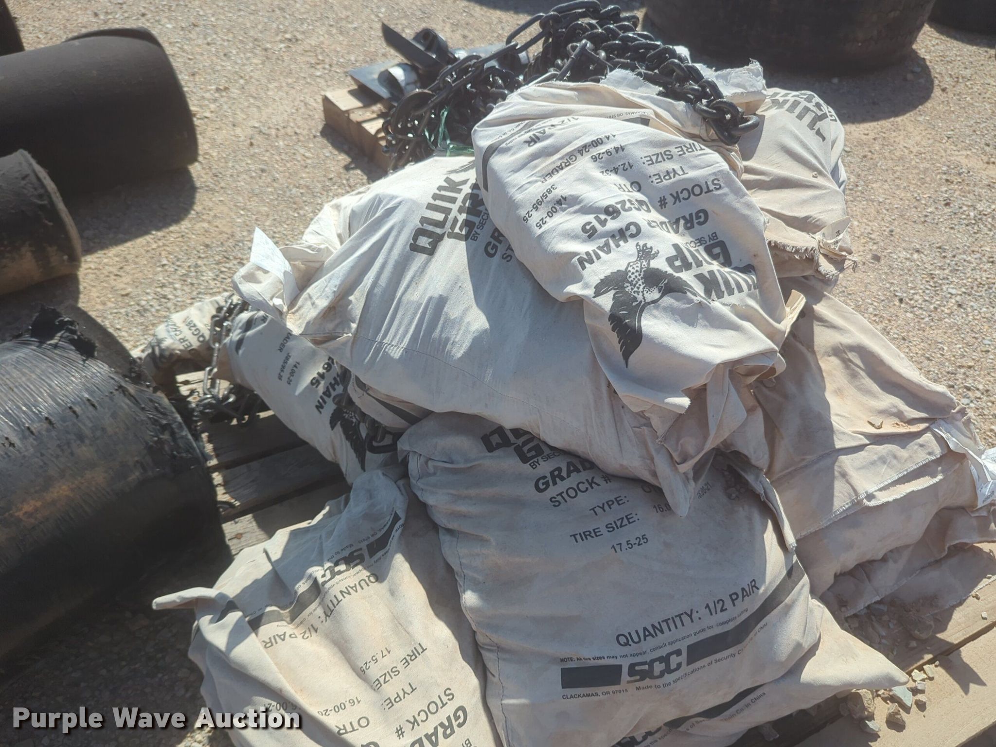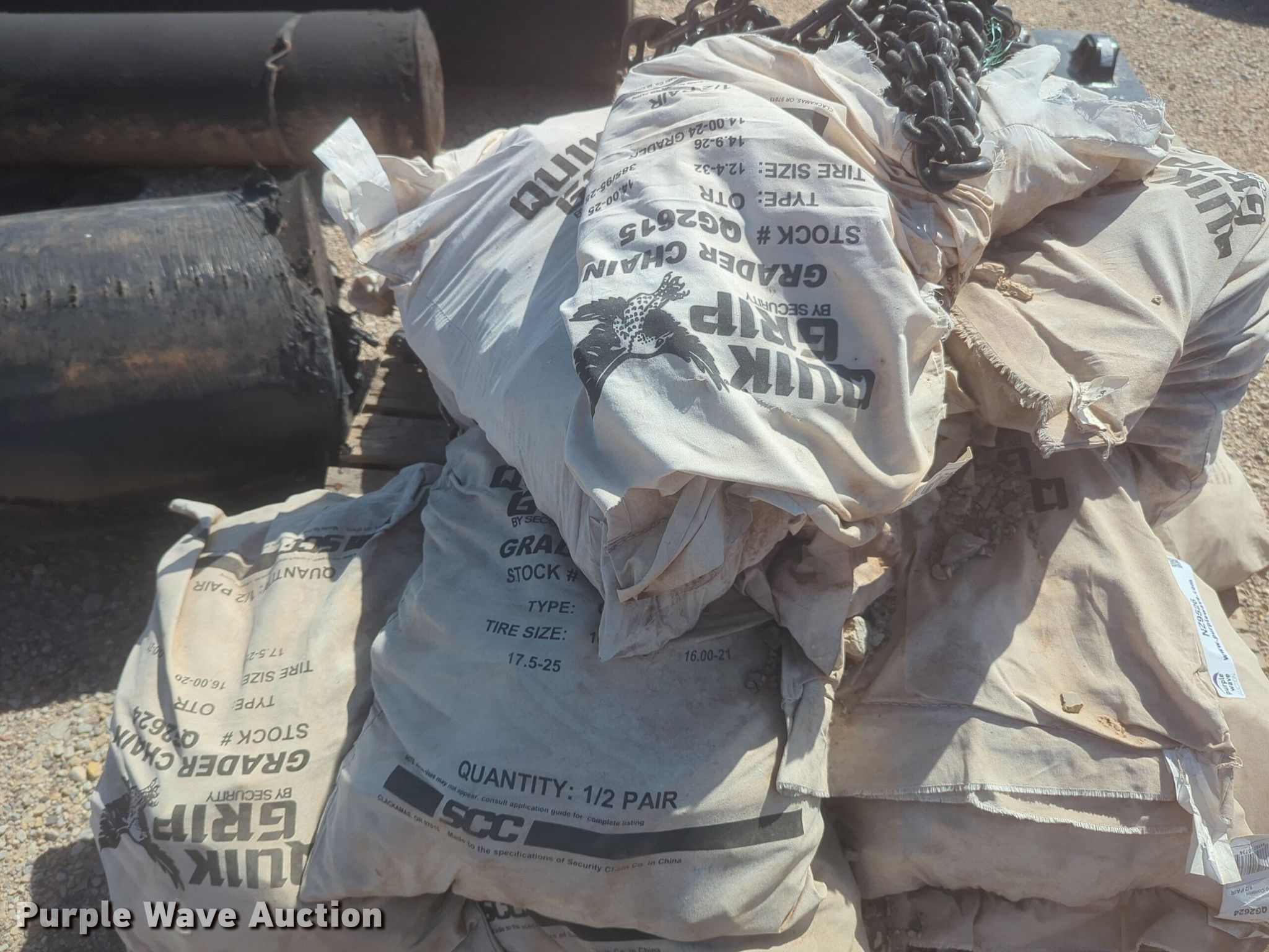 Purple Wave is selling a used Motor Grader Attach. in Oklahoma. This item is a Quick Grip grader chains with the following: Fits 17.5-25 tires, Unused