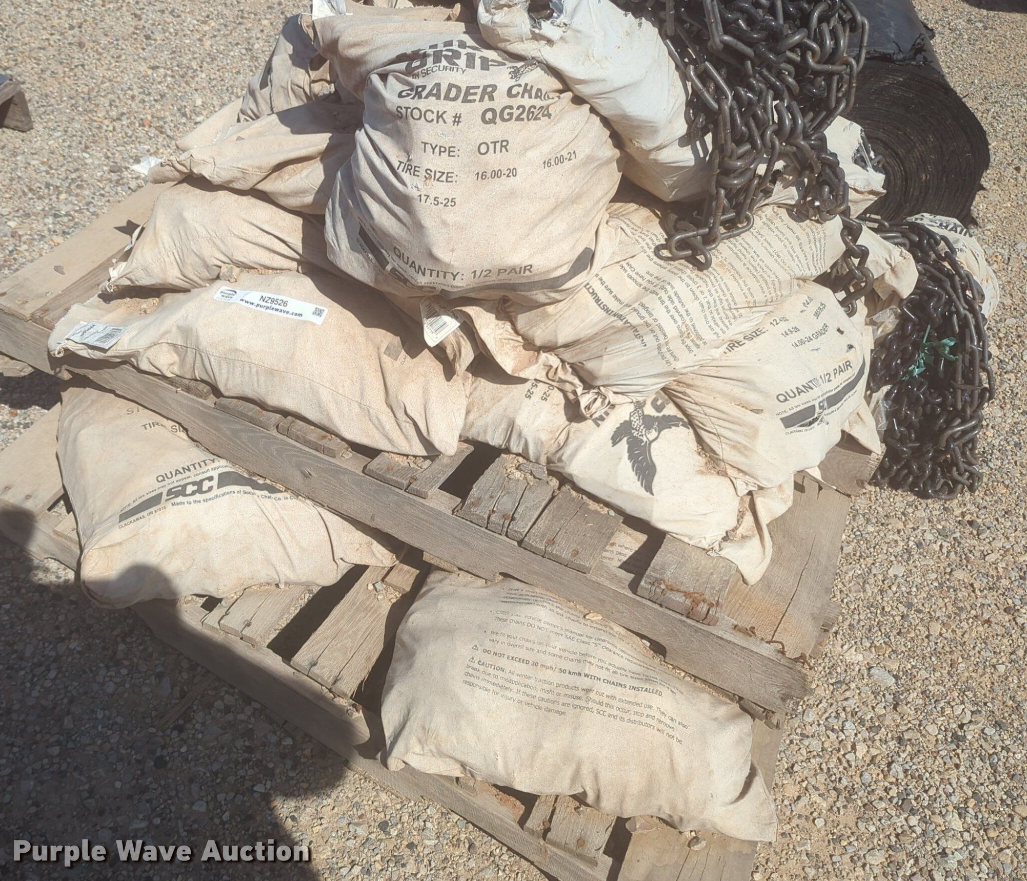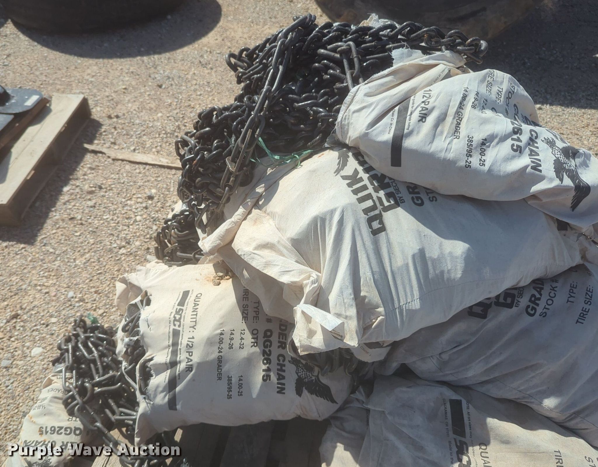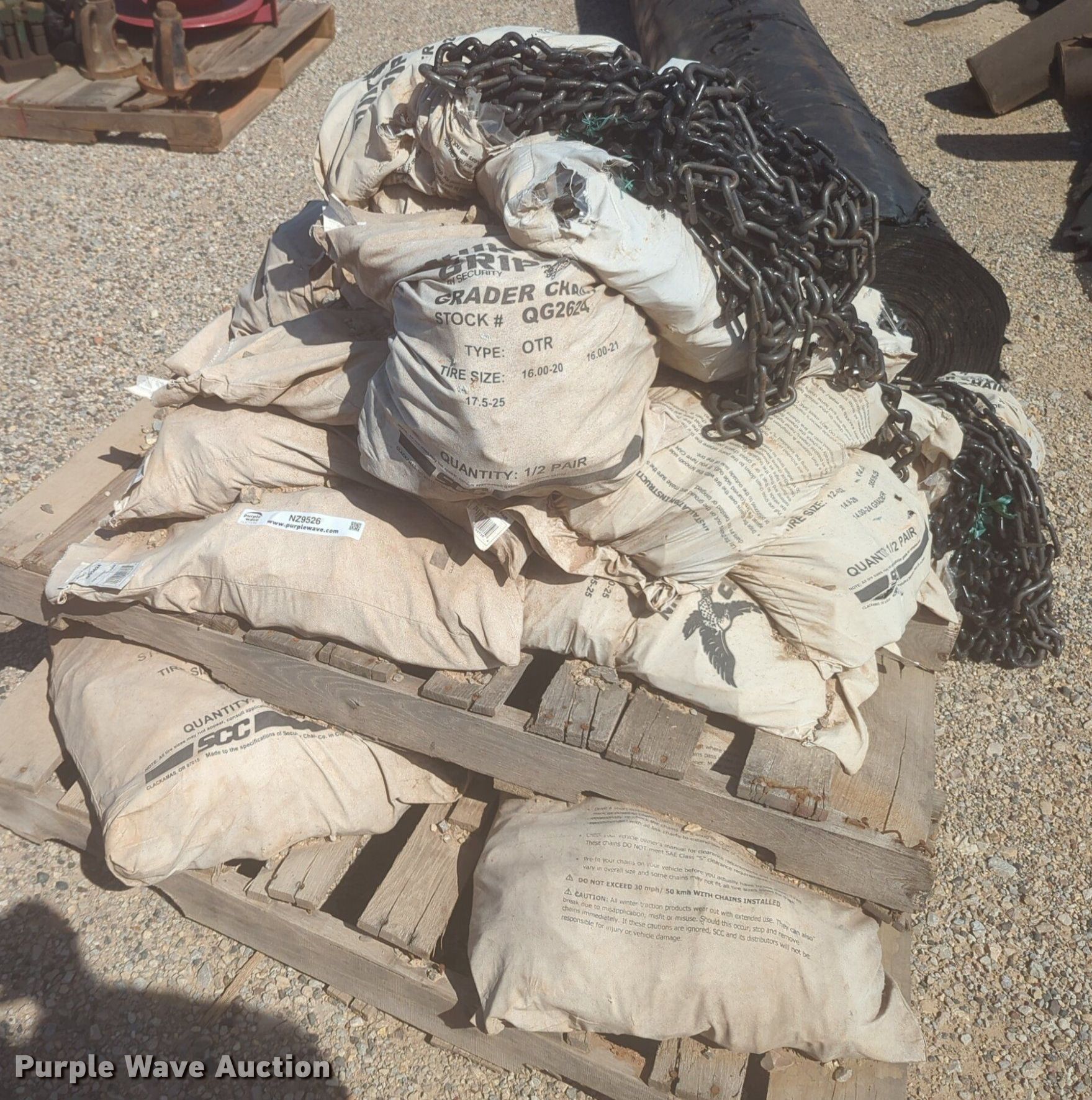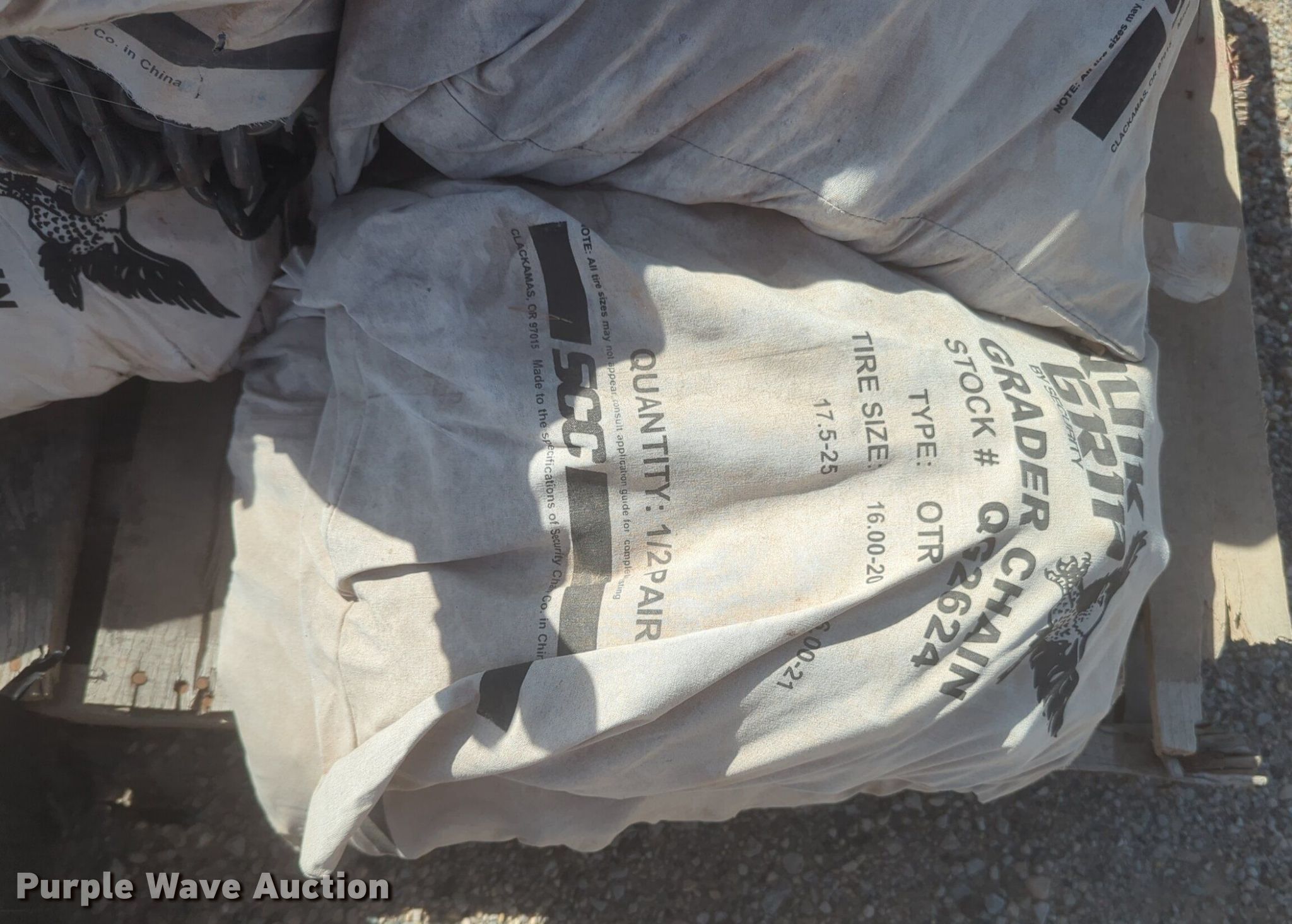 Purple Wave is selling a used Motor Grader Attach. in Oklahoma. This item is a Quick Grip grader chains with the following: Fits 17.5-25 tires, Unused